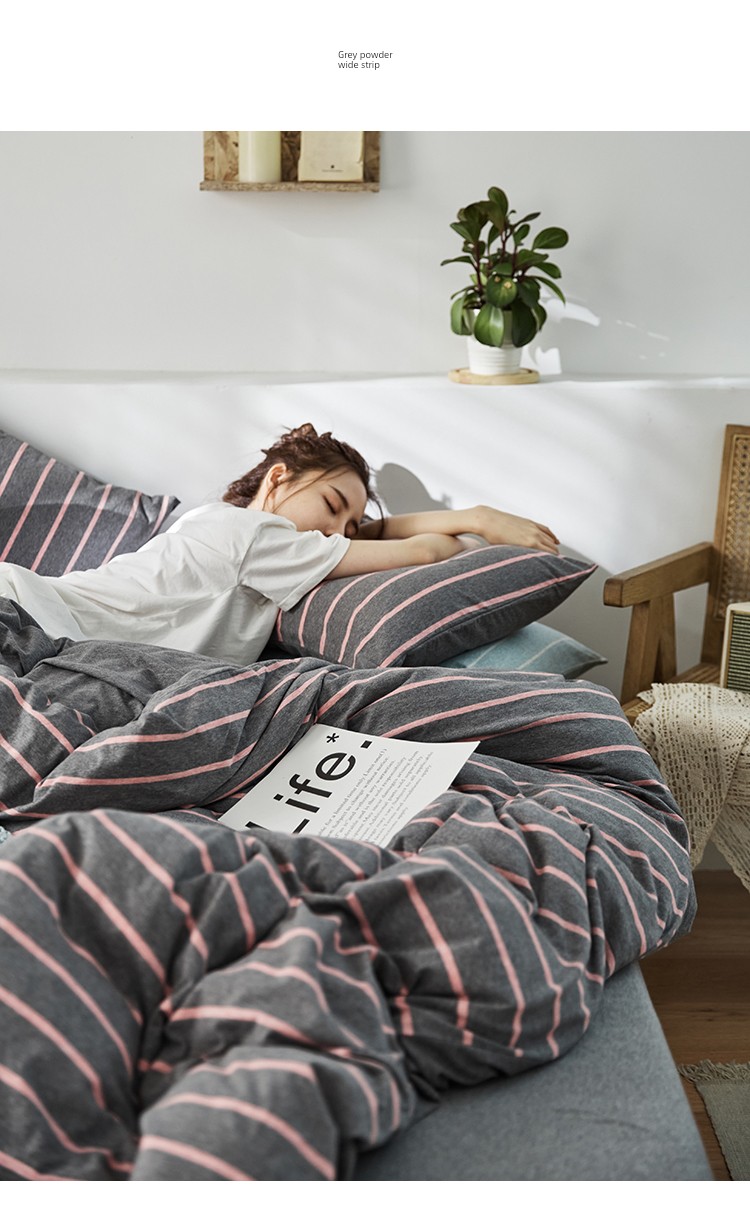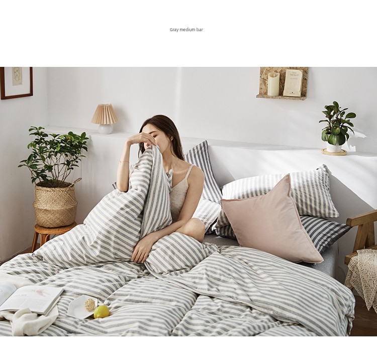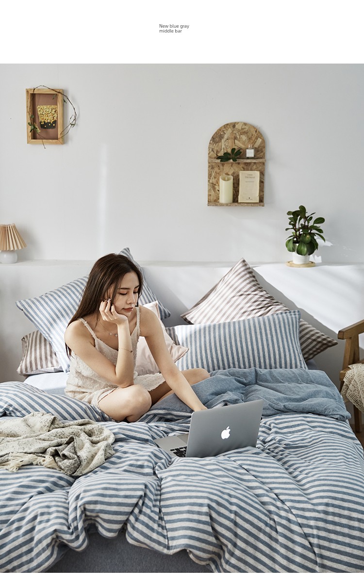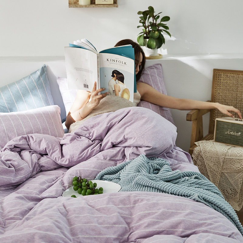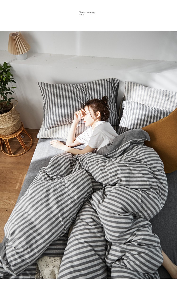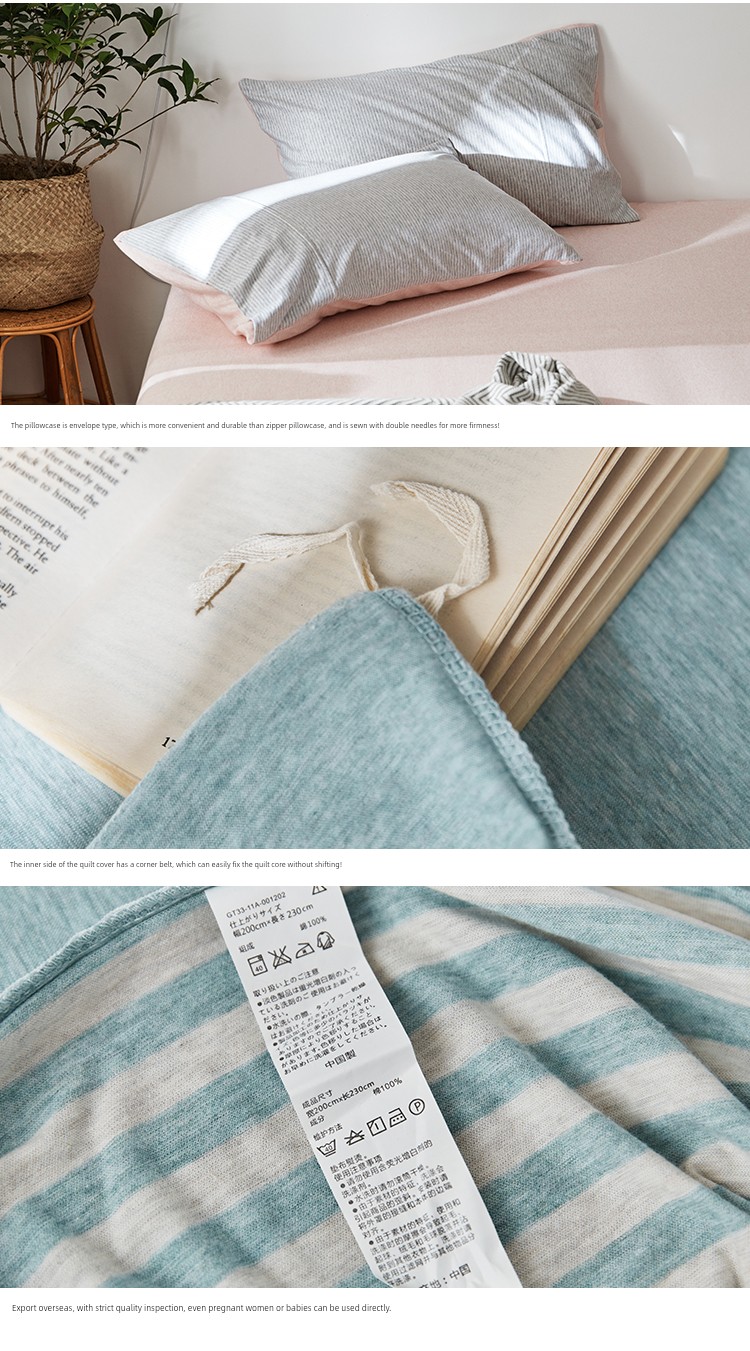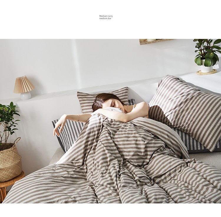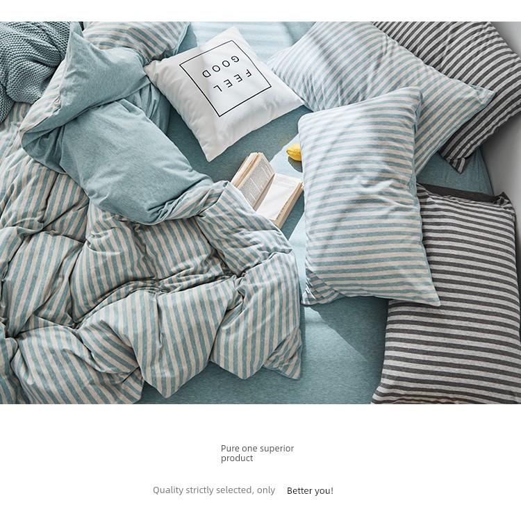 Bare Sleeping Class a Pure Cotton Knitted Tianzhu Cotton Bed Three Or Four Piece Suit Cotton Super Soft Minimalist Stripes Quilt Cover Bed Sheets