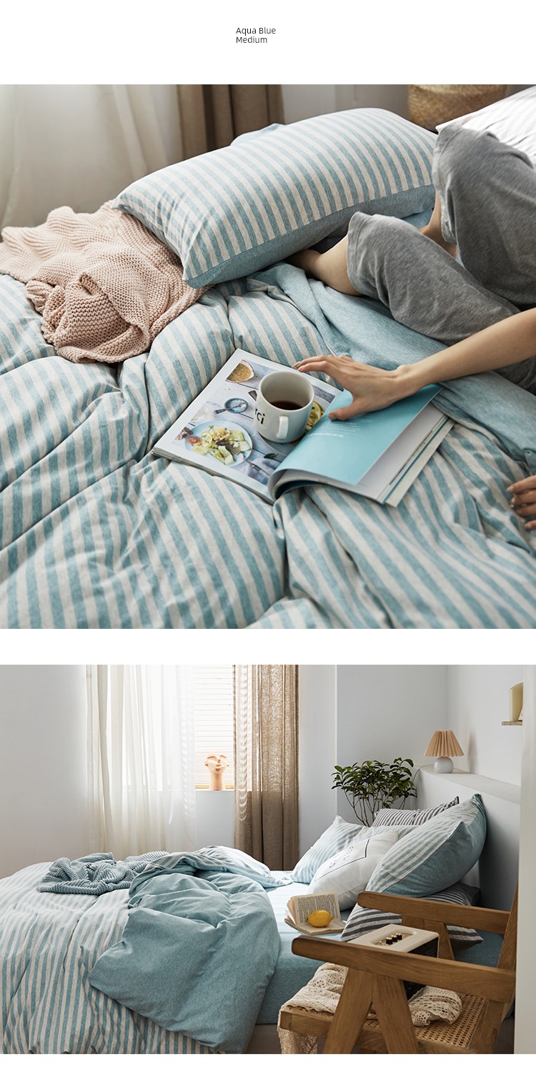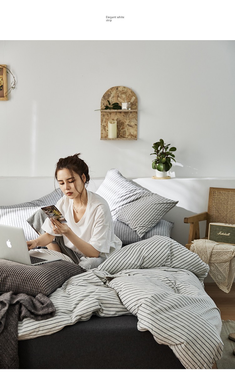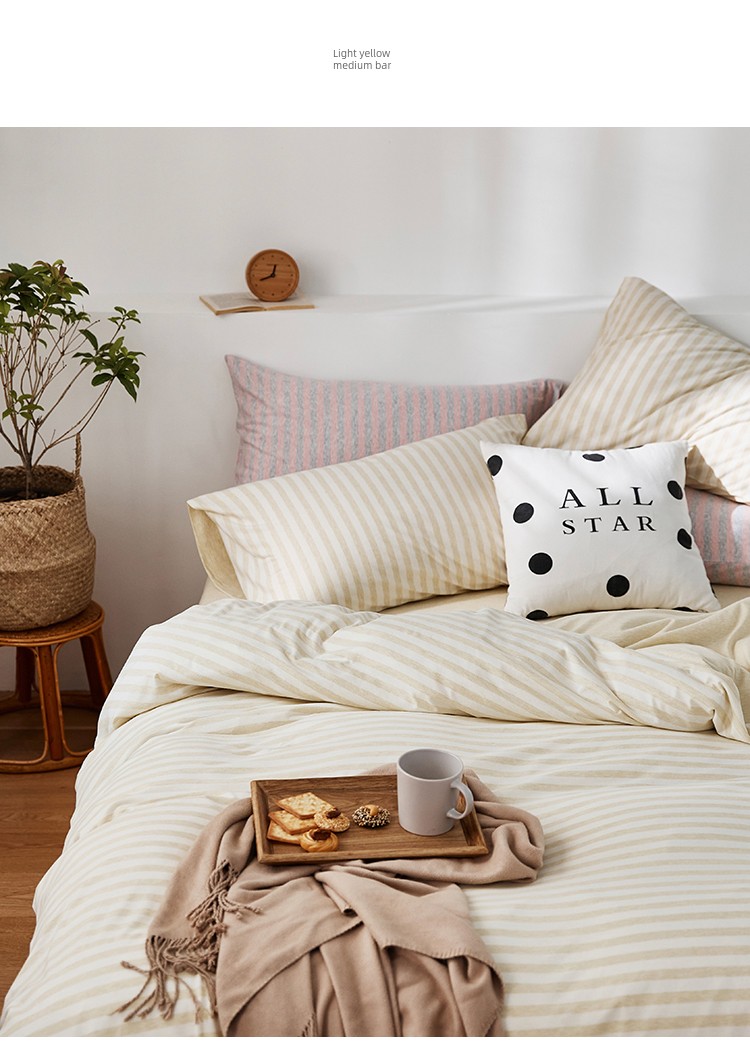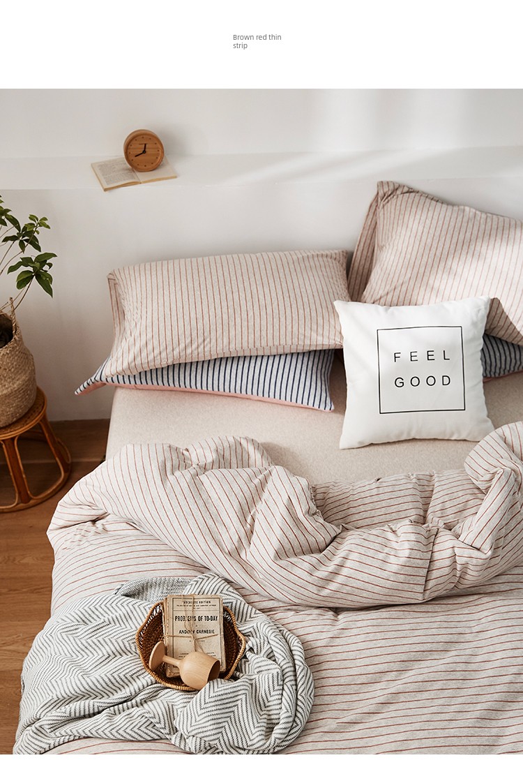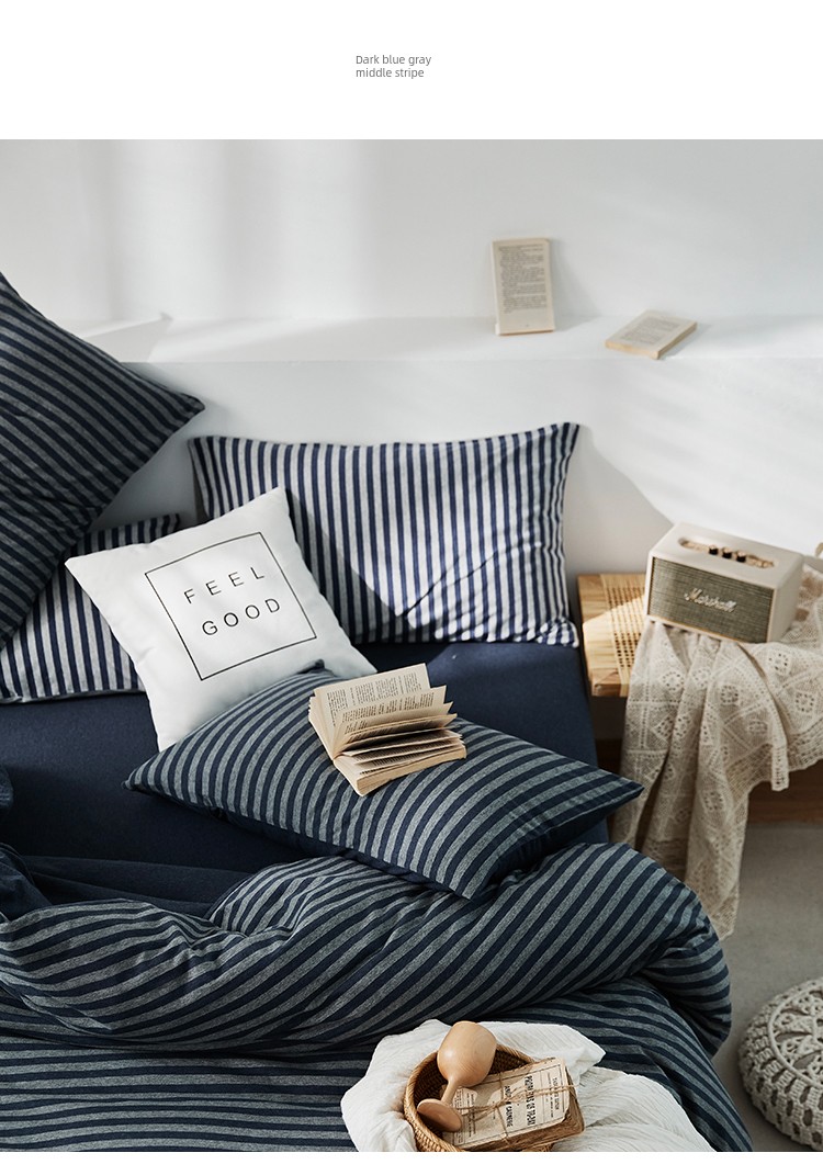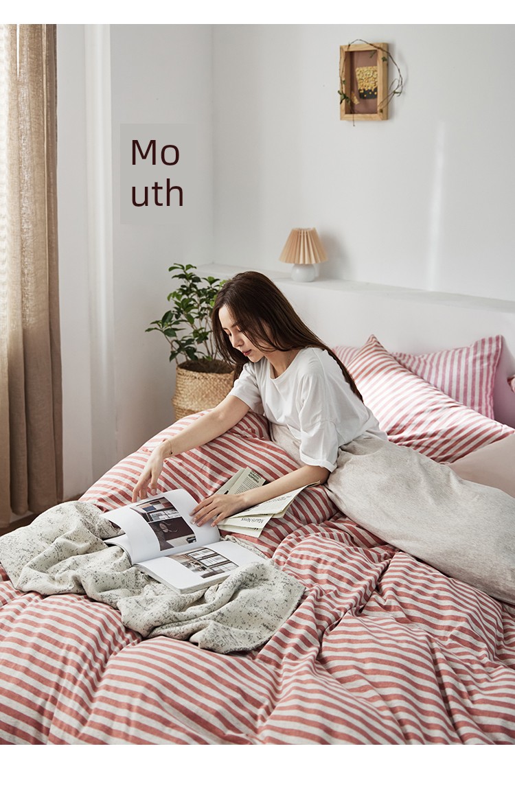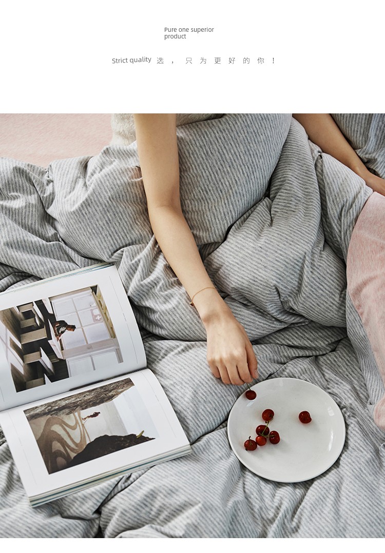 Bare Sleeping Class a Pure Cotton Knitted Tianzhu Cotton Bed Three Or Four Piece Suit Cotton Super Soft Minimalist Stripes Quilt Cover Bed Sheets