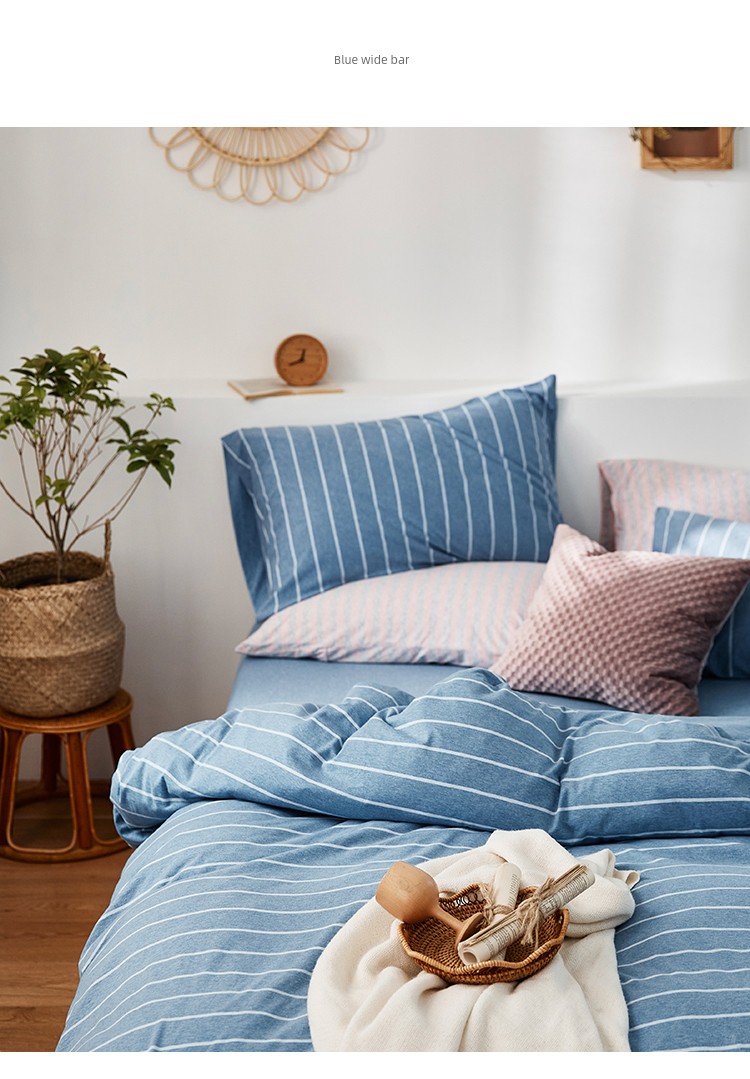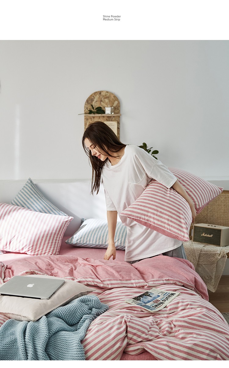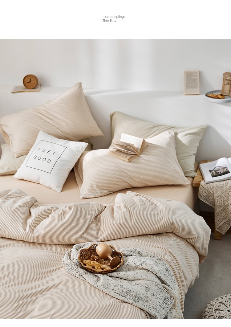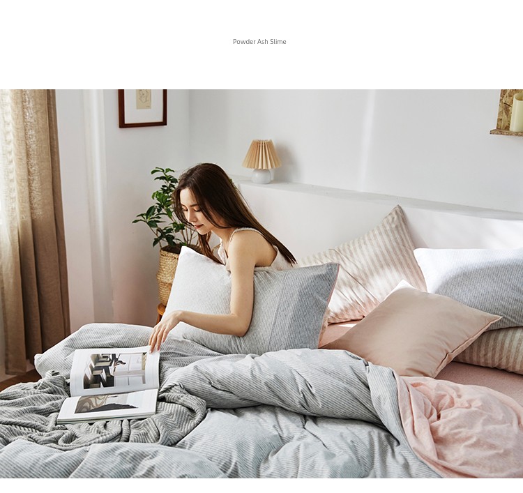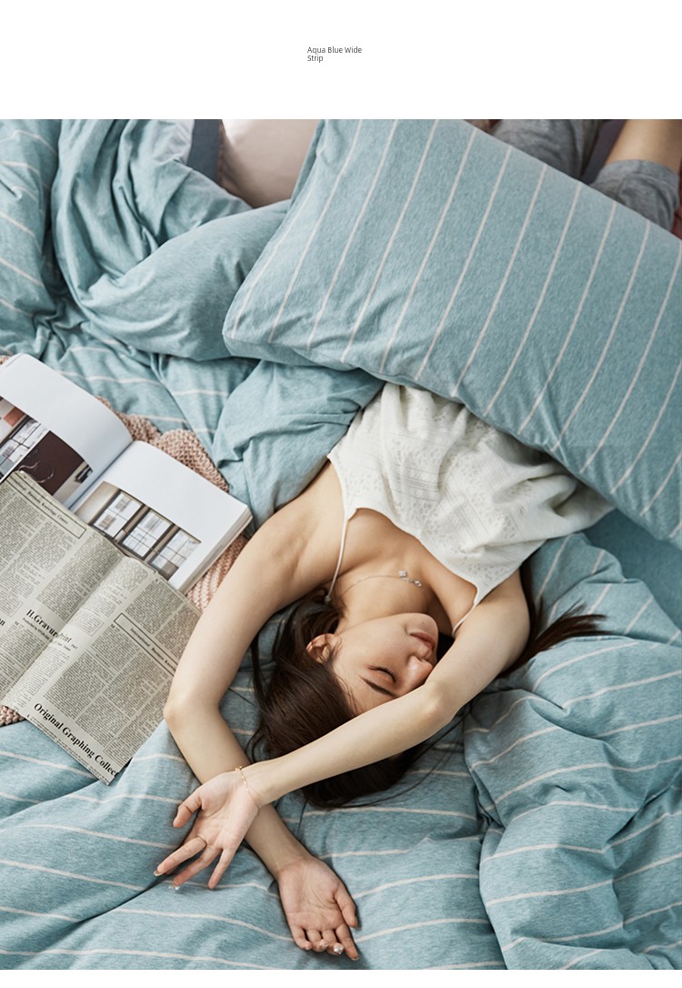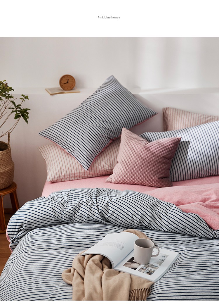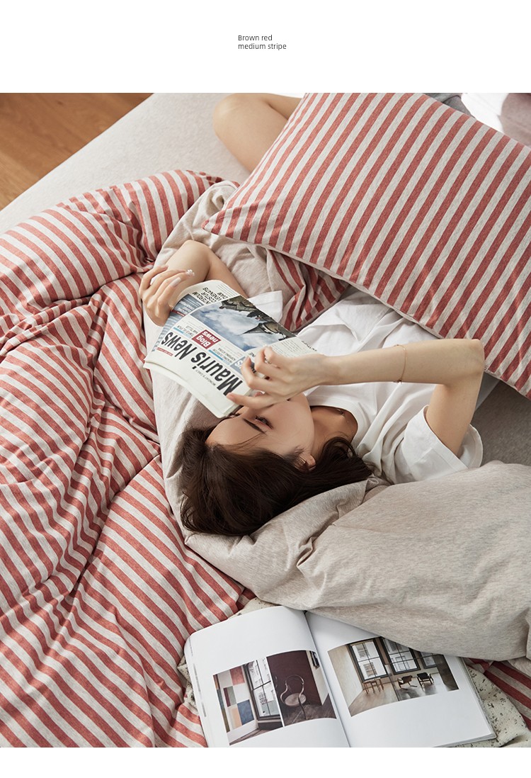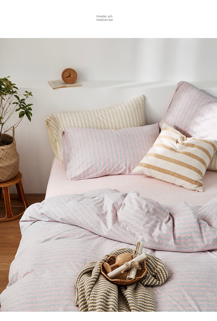 Bare Sleeping Class a Pure Cotton Knitted Tianzhu Cotton Bed Three Or Four Piece Suit Cotton Super Soft Minimalist Stripes Quilt Cover Bed Sheets