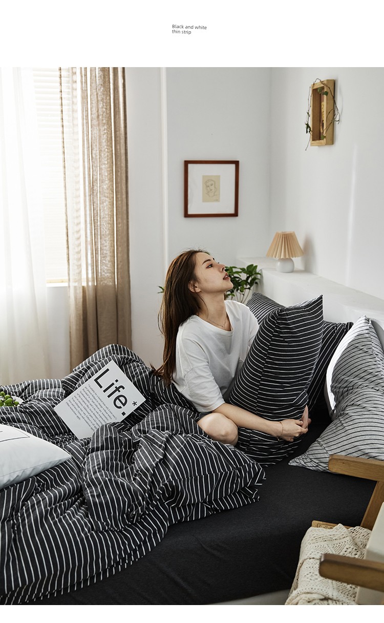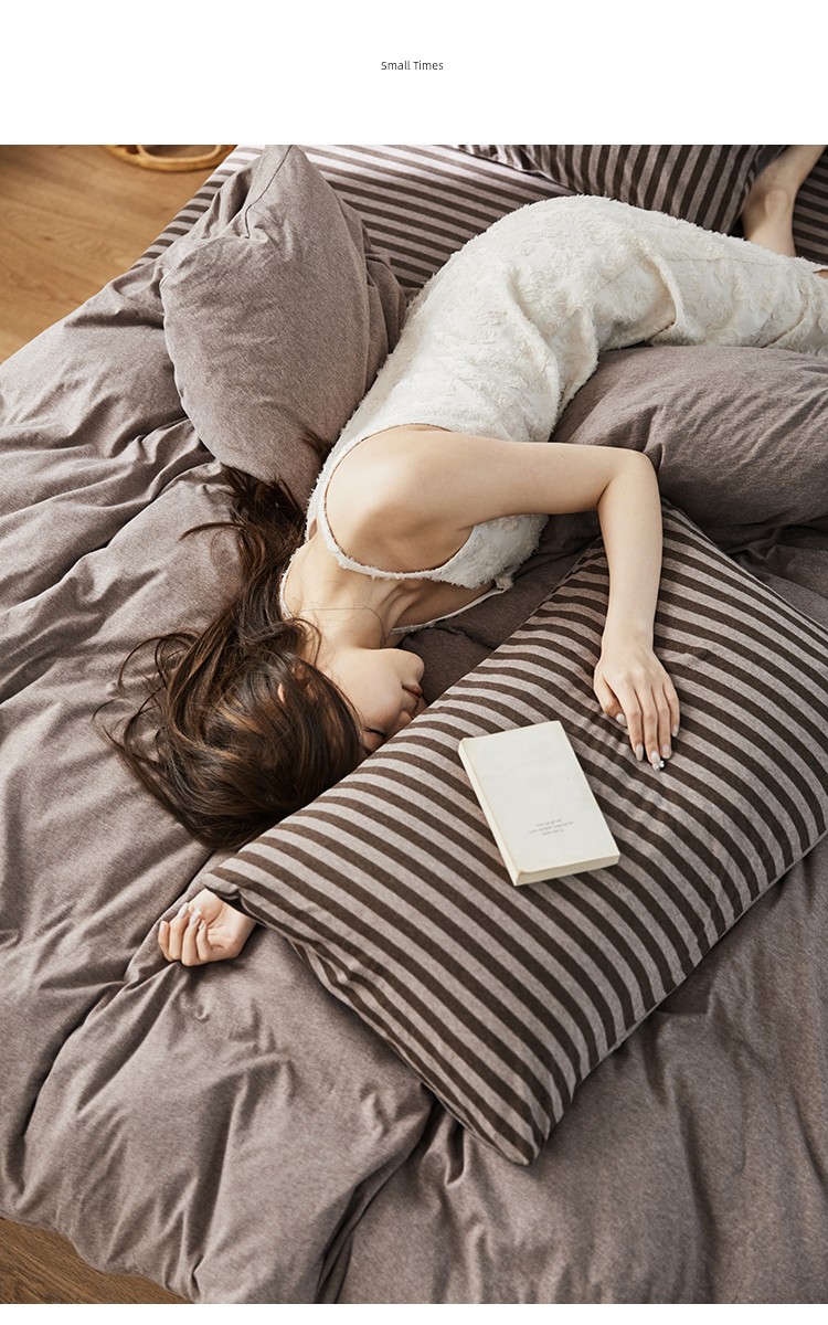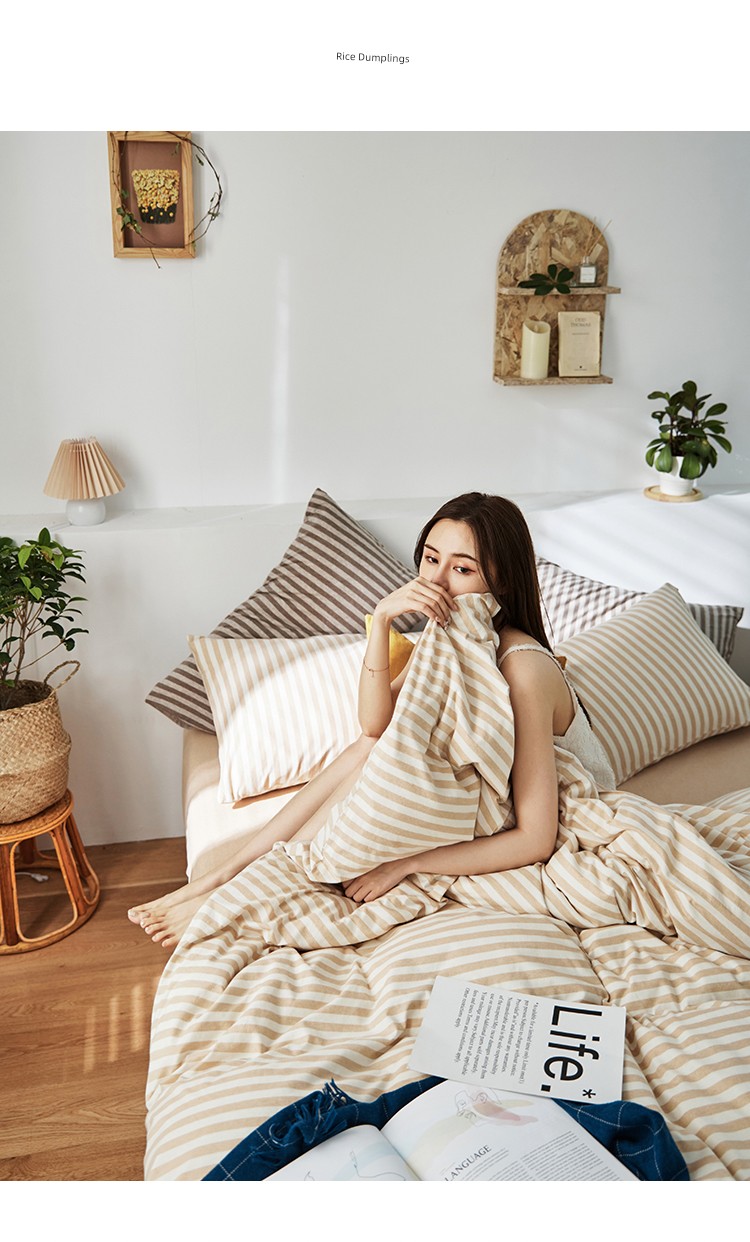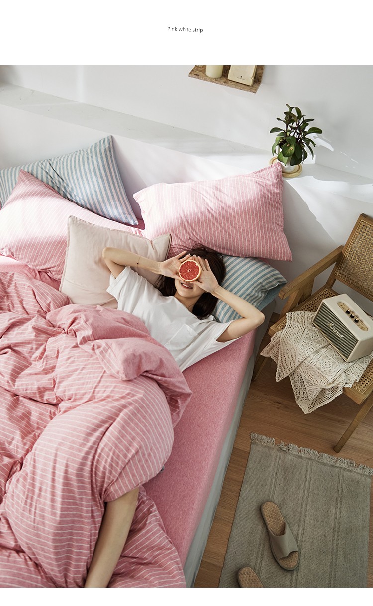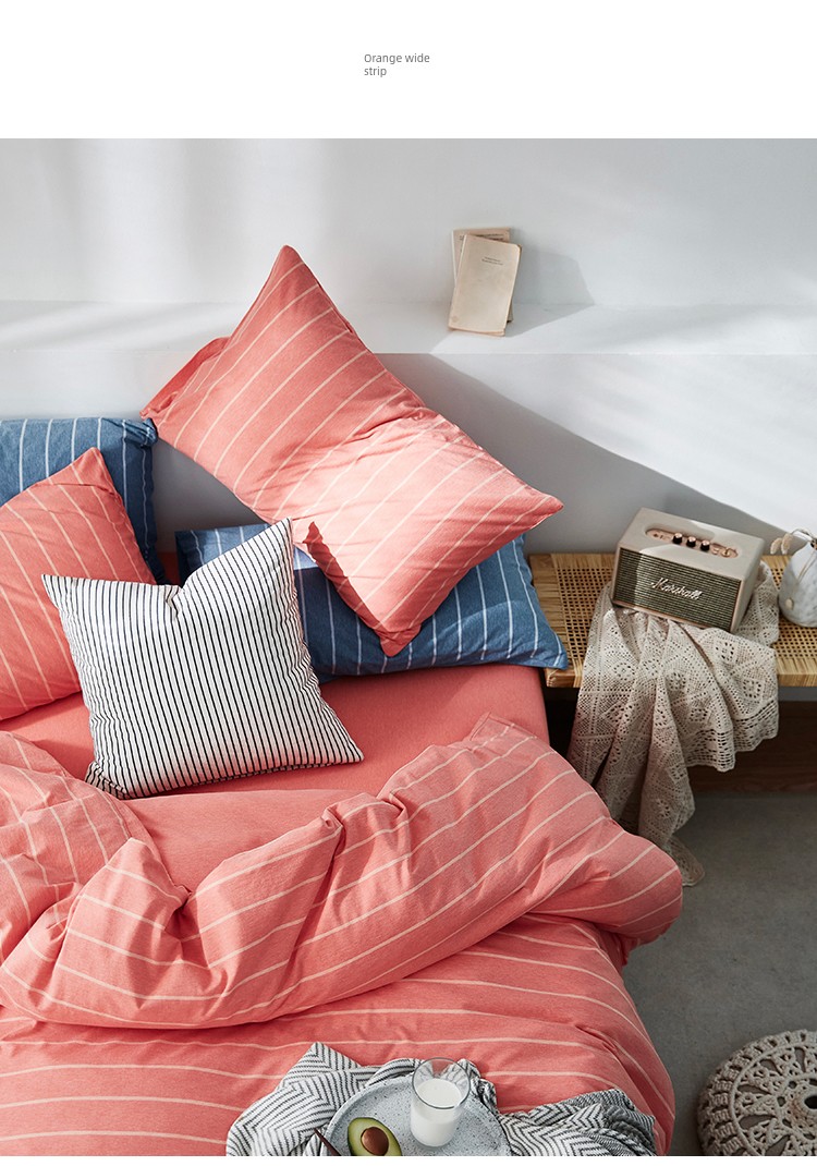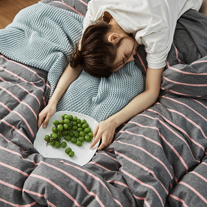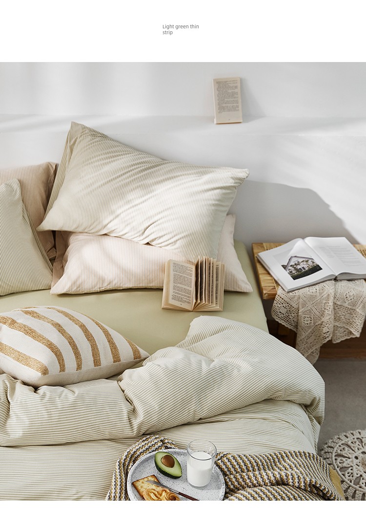 Bare Sleeping Class a Pure Cotton Knitted Tianzhu Cotton Bed Three Or Four Piece Suit Cotton Super Soft Minimalist Stripes Quilt Cover Bed Sheets