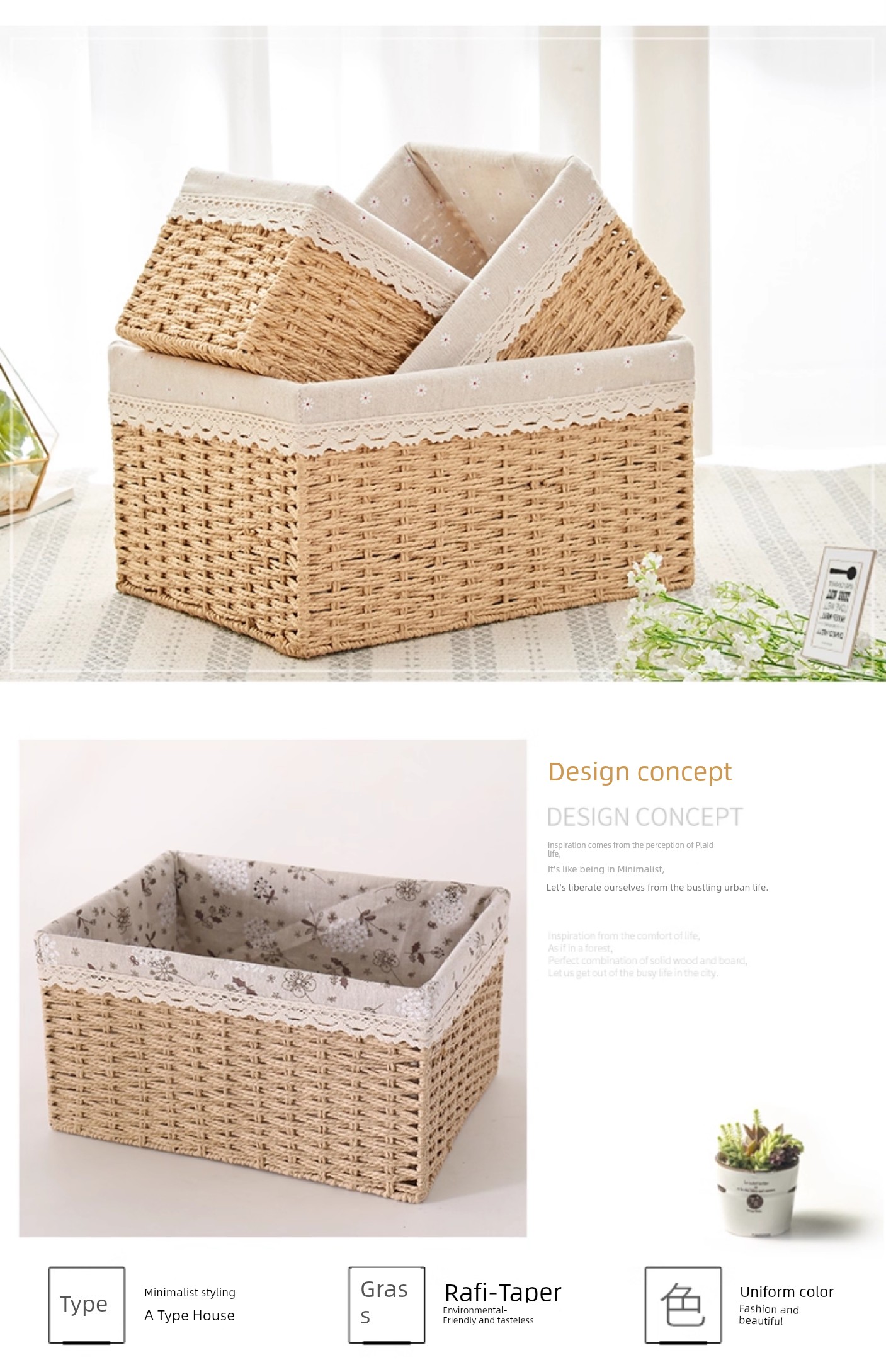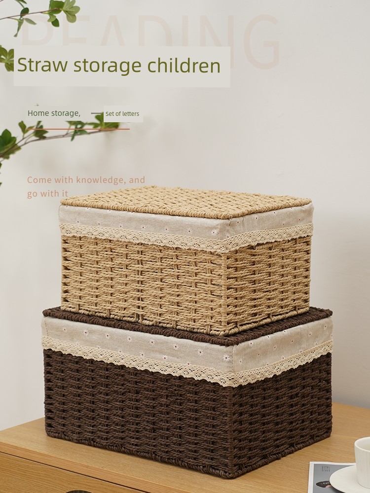 Straw Laundry Basket Toy Sundries Bedroom Storage Basket