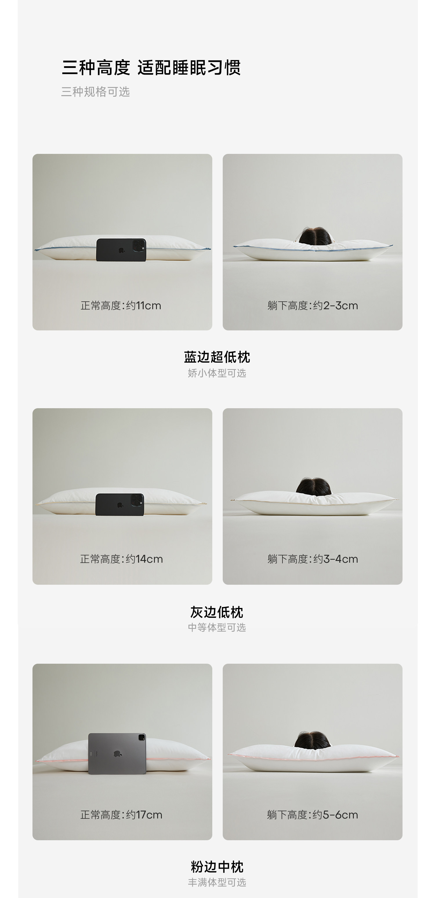 Blue Edge Ultra-Low Pillow 48*74cm (Height 11cm) Filled with 500g