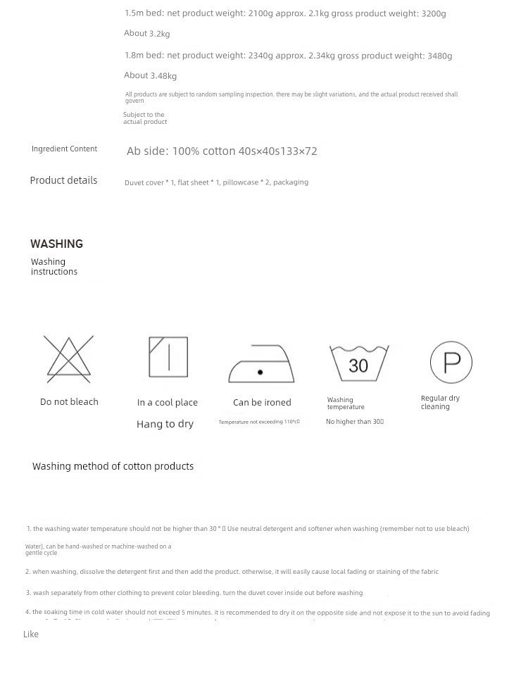 Suitable for 1.8m Bed, Matching 220*240cm Quilt Core Is Recommended