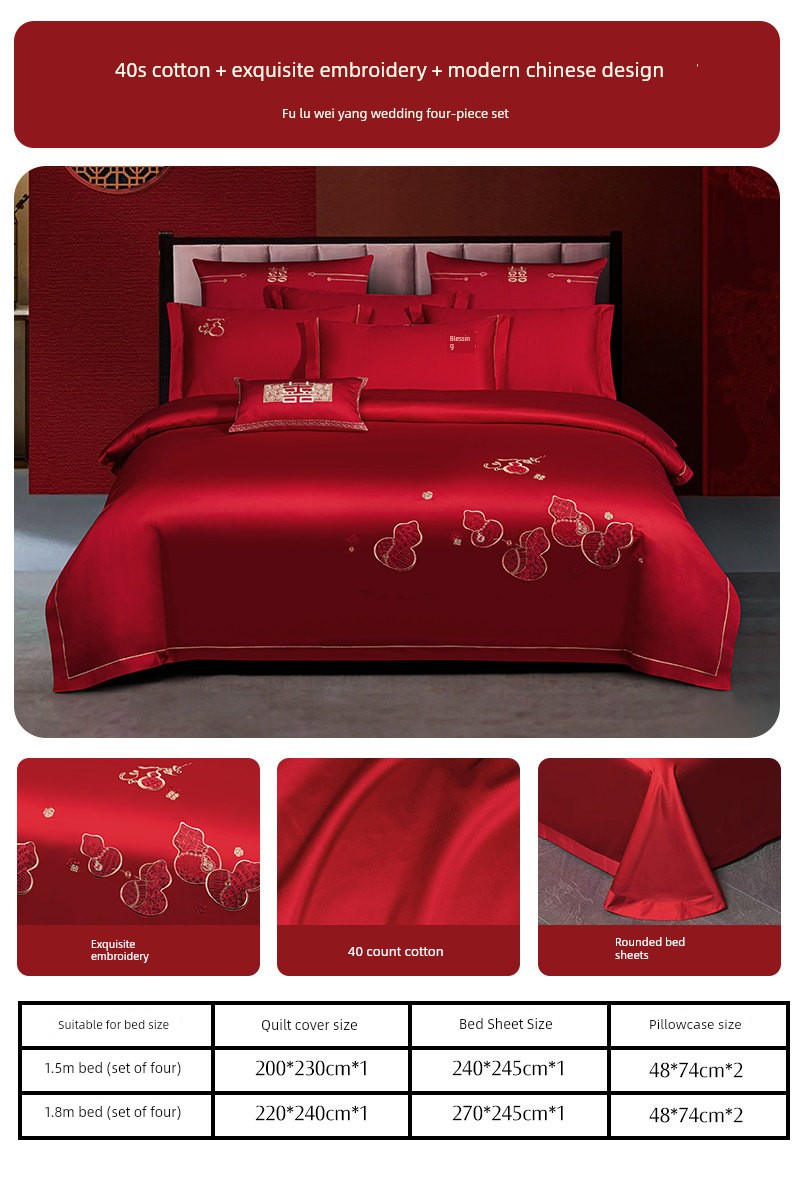 Four-Piece Set [Cotton Fabric + Exquisite Embroidery] Fulu Weiyang