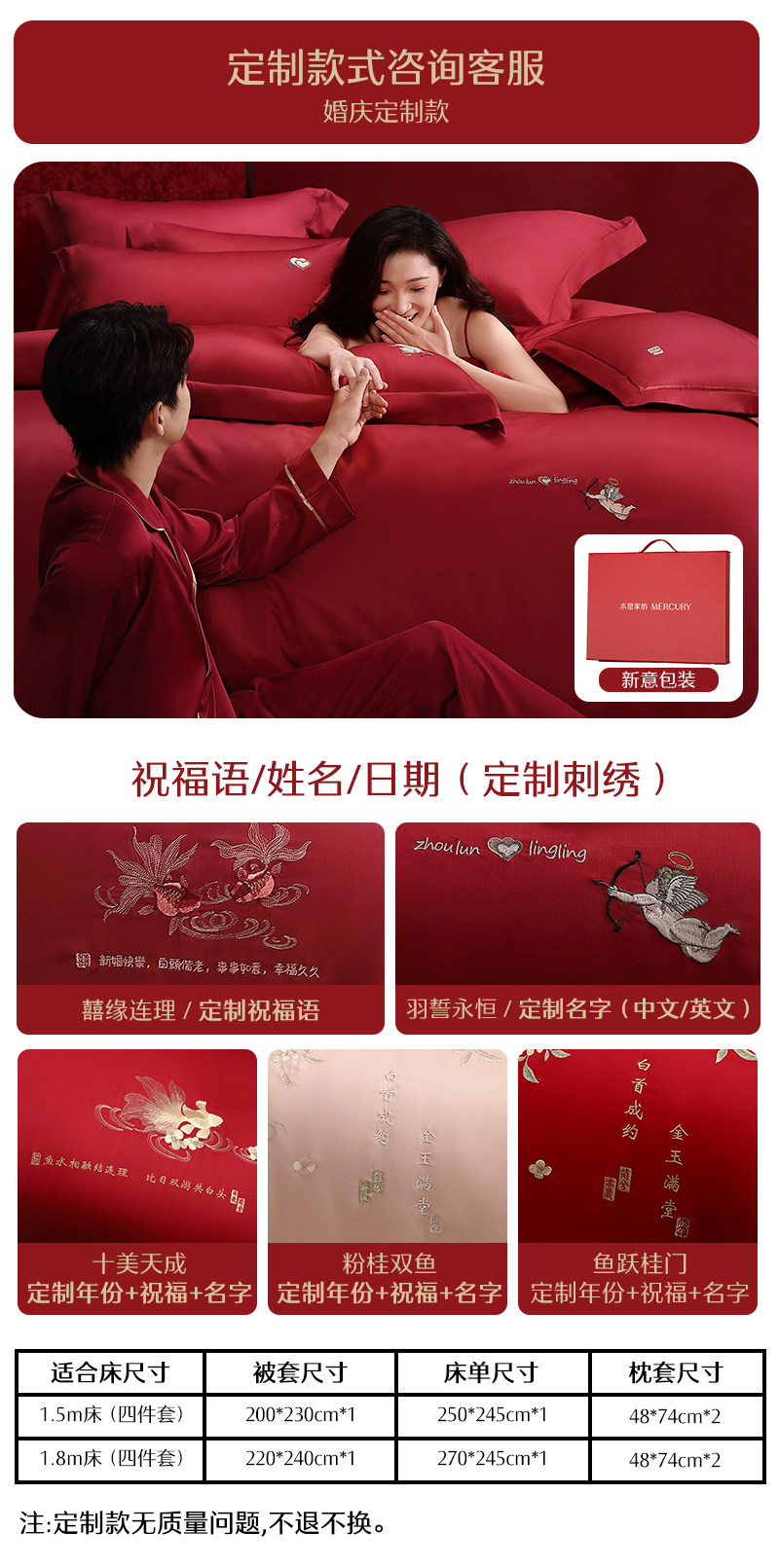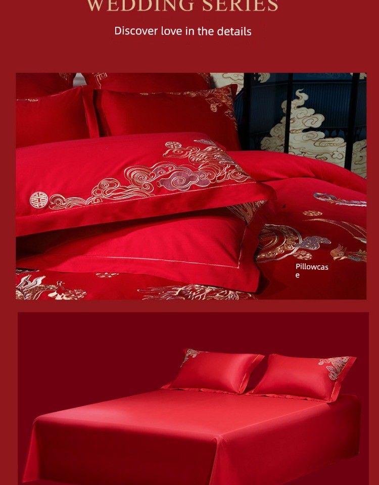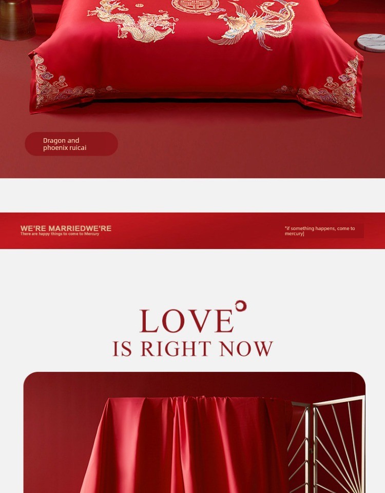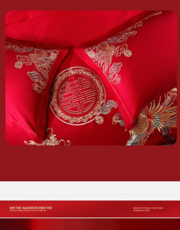 Mercury Home Textile Festive Bright Red Bed Sheets Wedding Four-Piece Set
