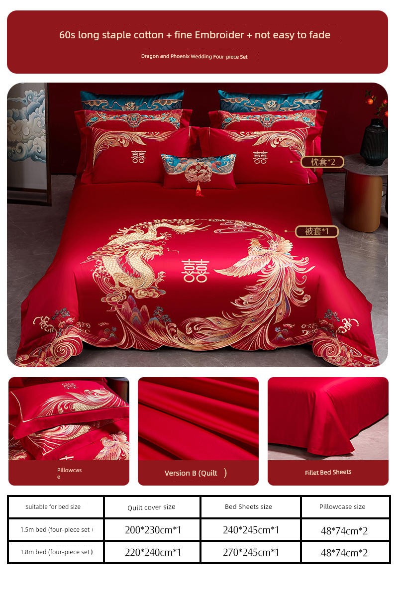 Four-Piece Set [60S Long-Staple Cotton + Exquisite Embroidery + Ab Double Version] Dragon and Phoenix
