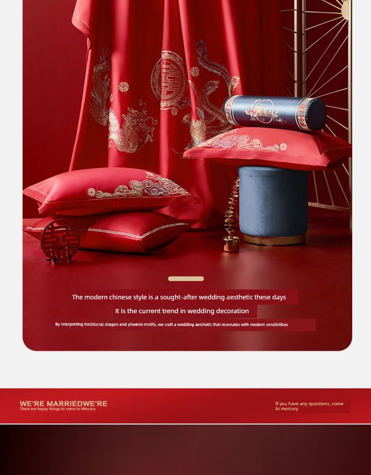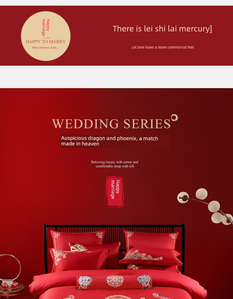 Huanlong Xifeng Set 2 [Four-Piece Wedding Set + Silk Quilt + Pillow Core]