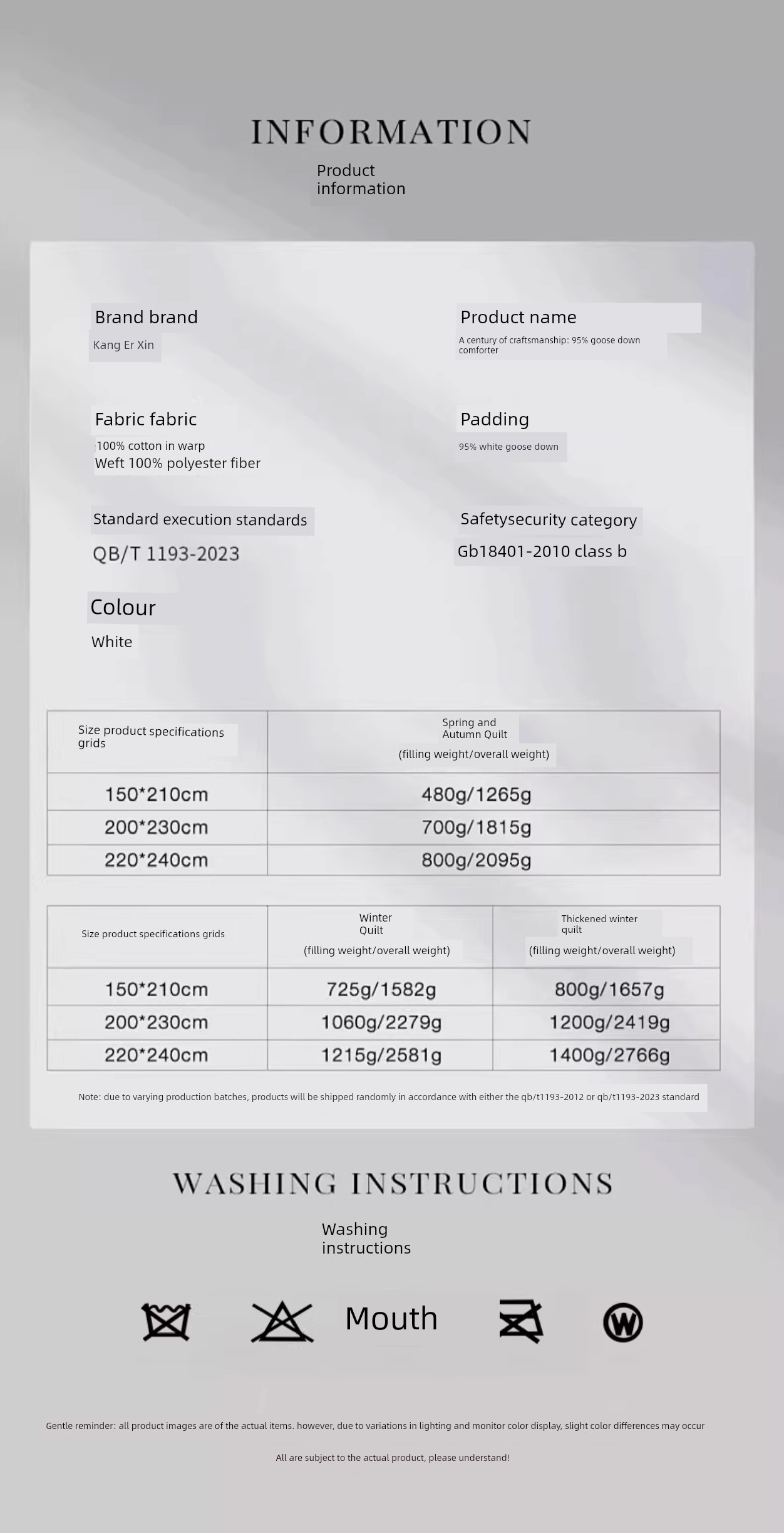 [Spring and Autumn Quilt] 95% White Goose down 220*240cm - 800g down Filling