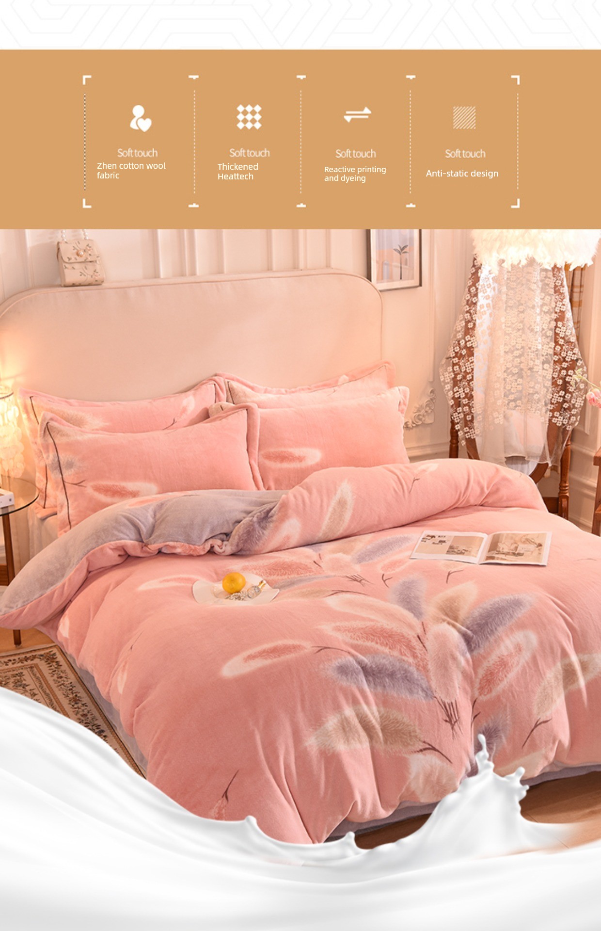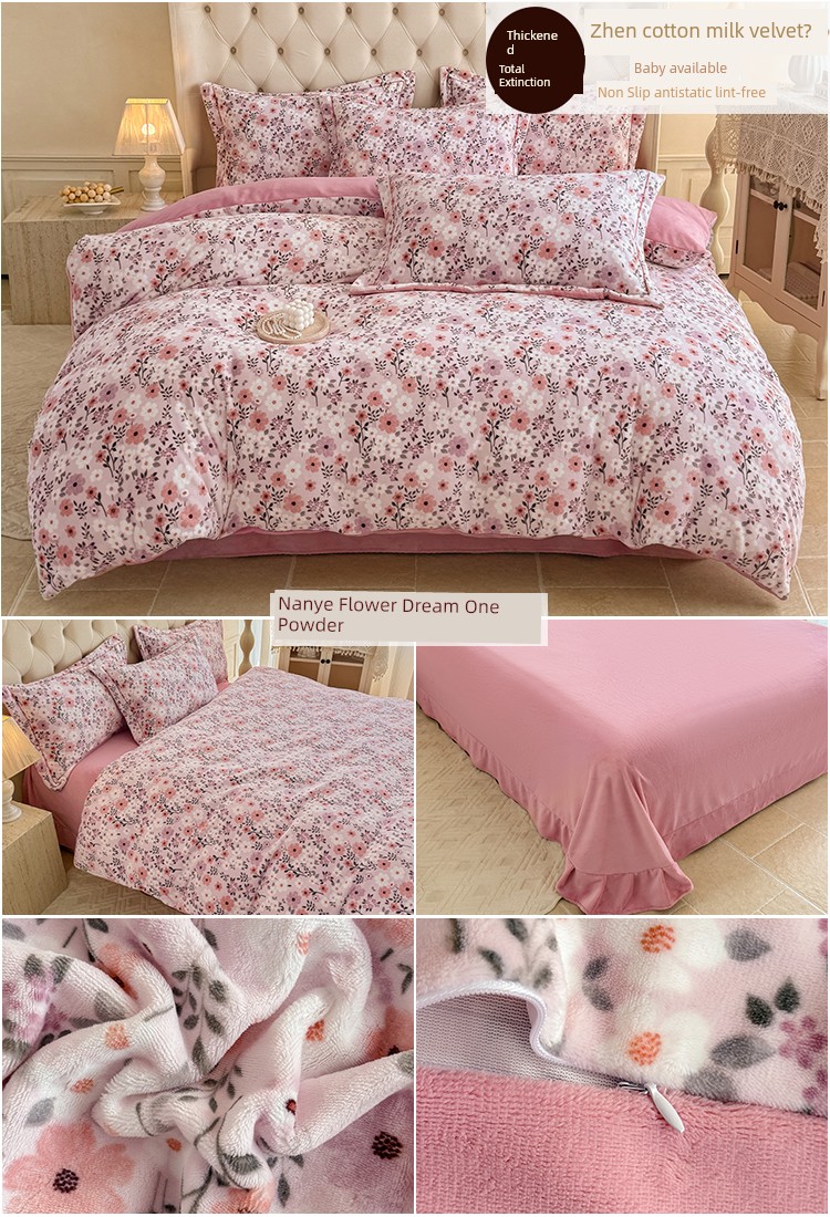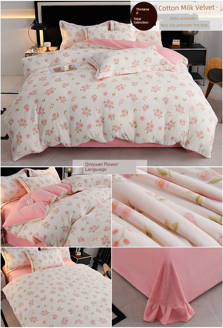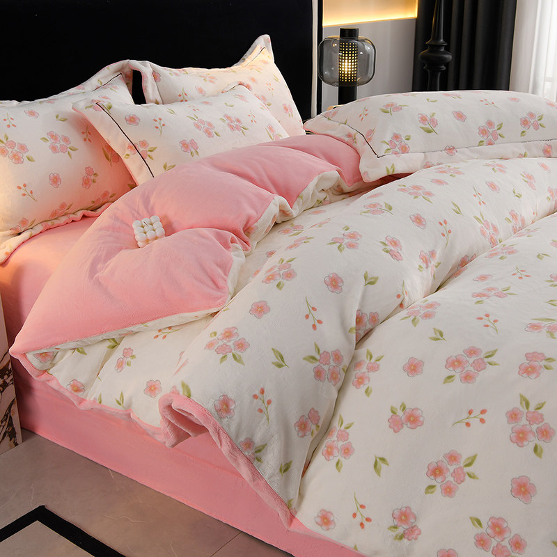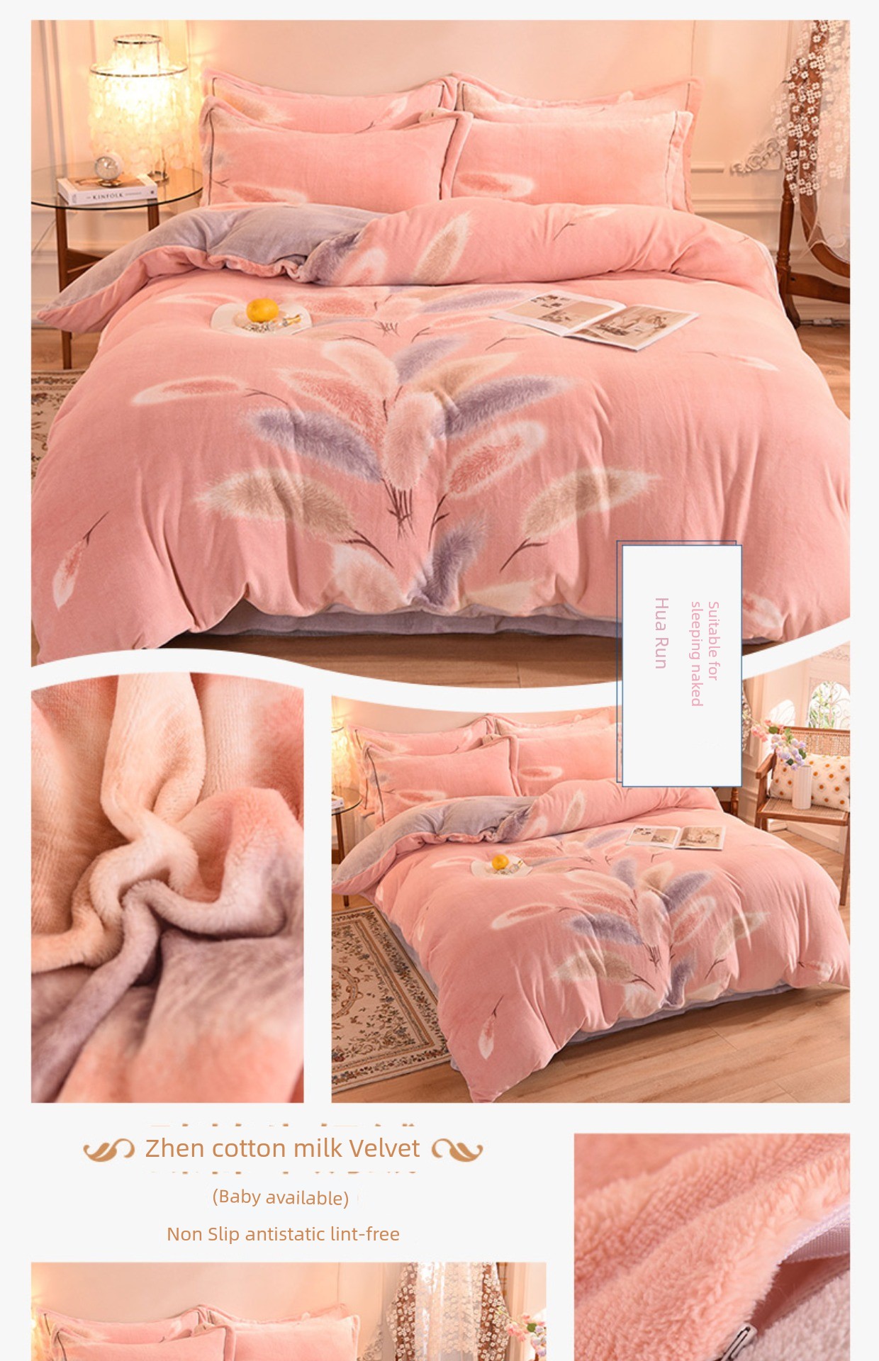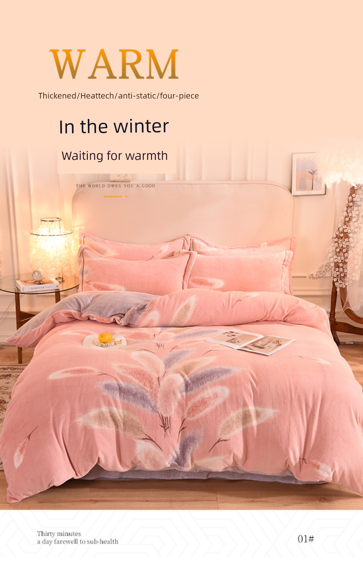 Thickened Double-Sided Milk Fiber Bed Four-Piece Set Fleece-lined 2025 New Arrival Classy Coral Fleece Bed Sheet Flannel Bedding