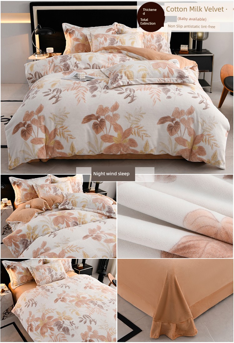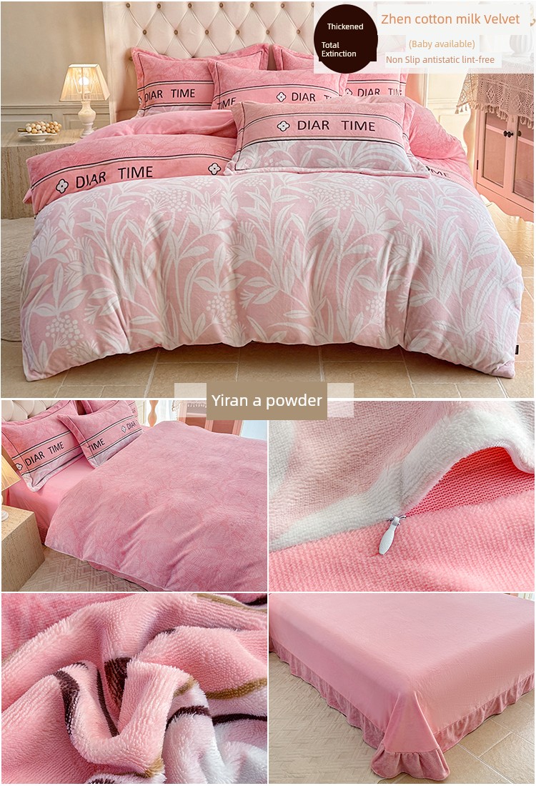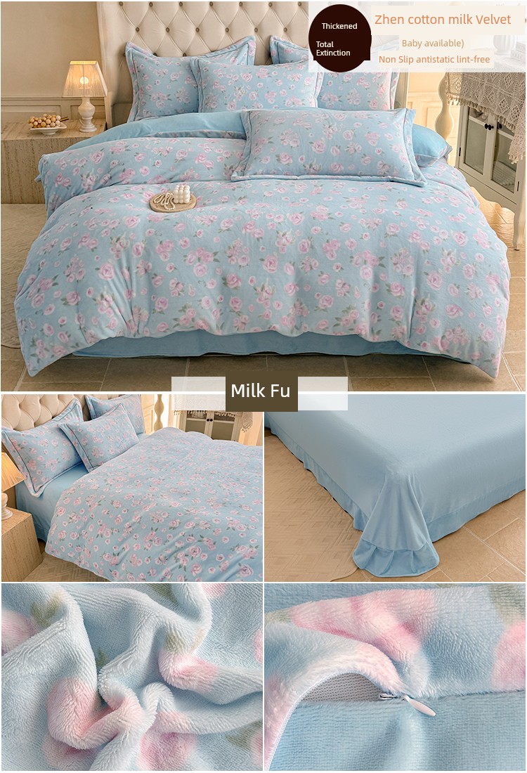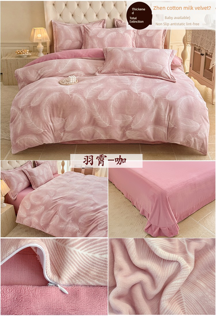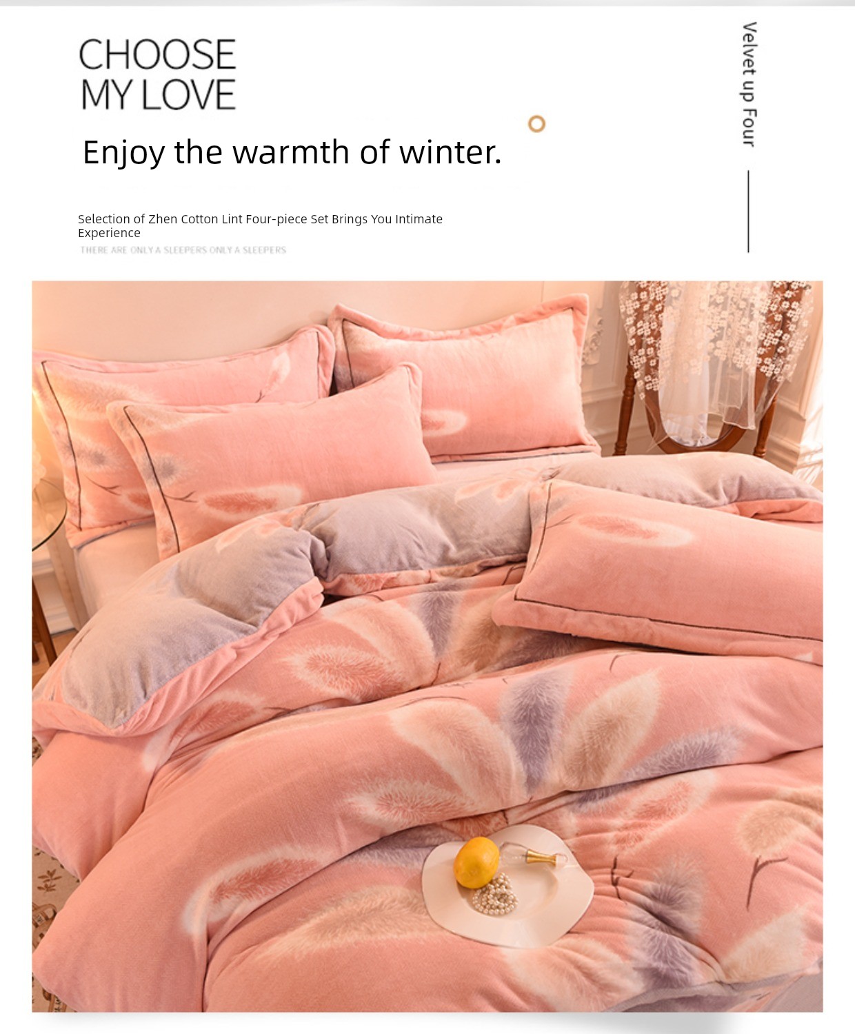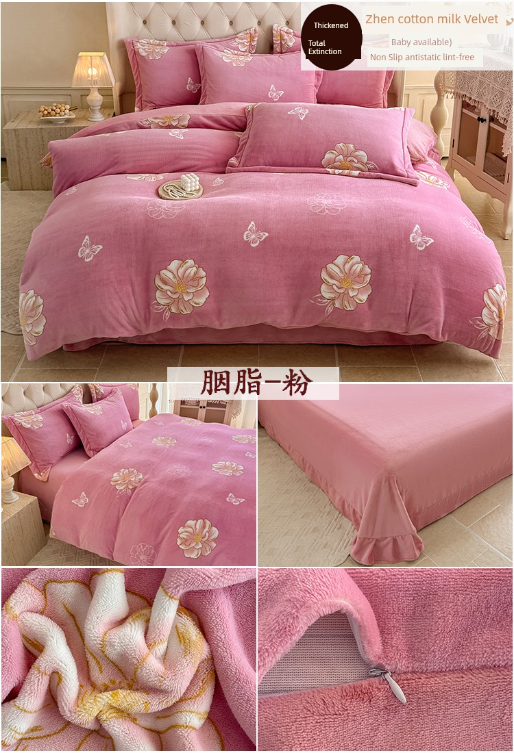 Thickened Double-Sided Milk Fiber Bed Four-Piece Set Fleece-lined 2025 New Arrival Classy Coral Fleece Bed Sheet Flannel Bedding