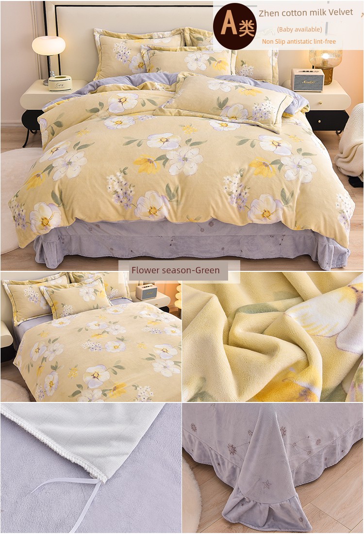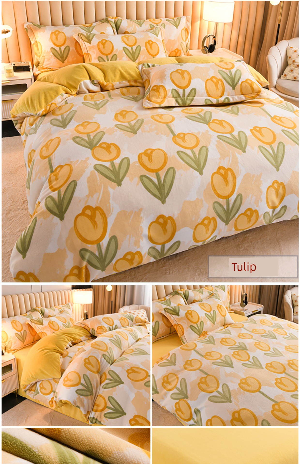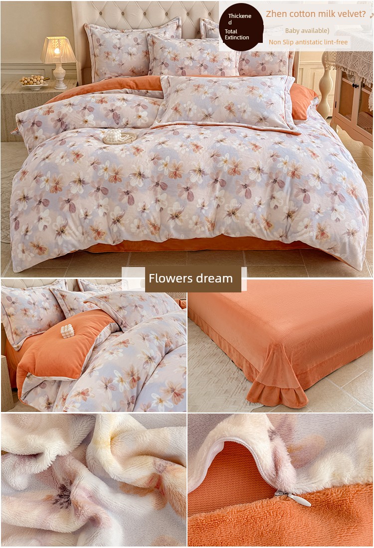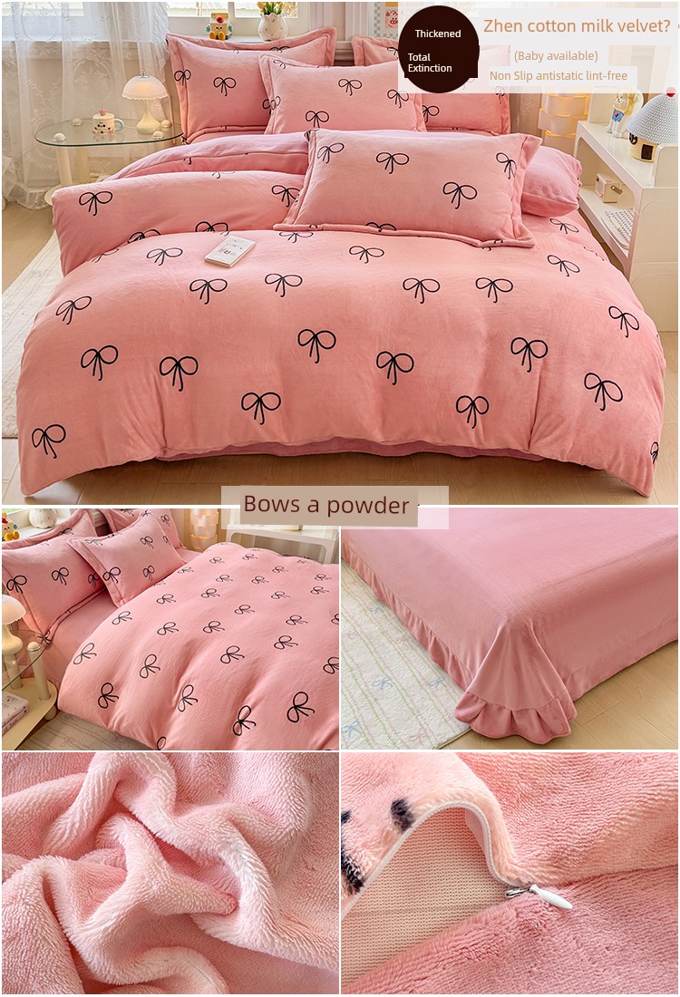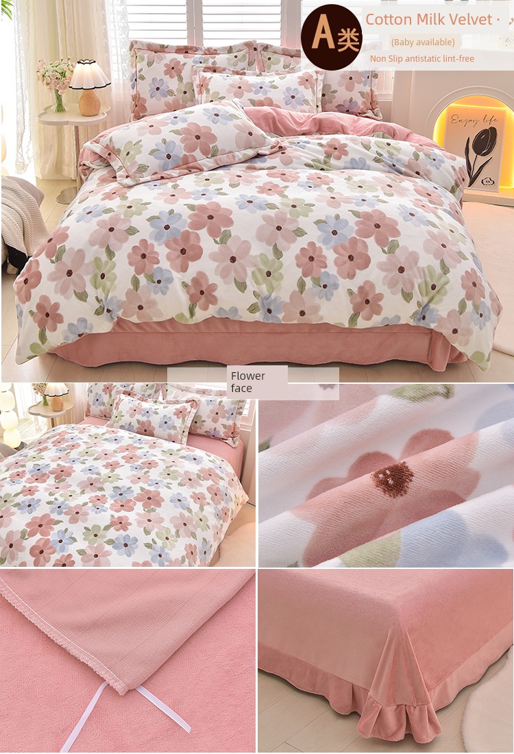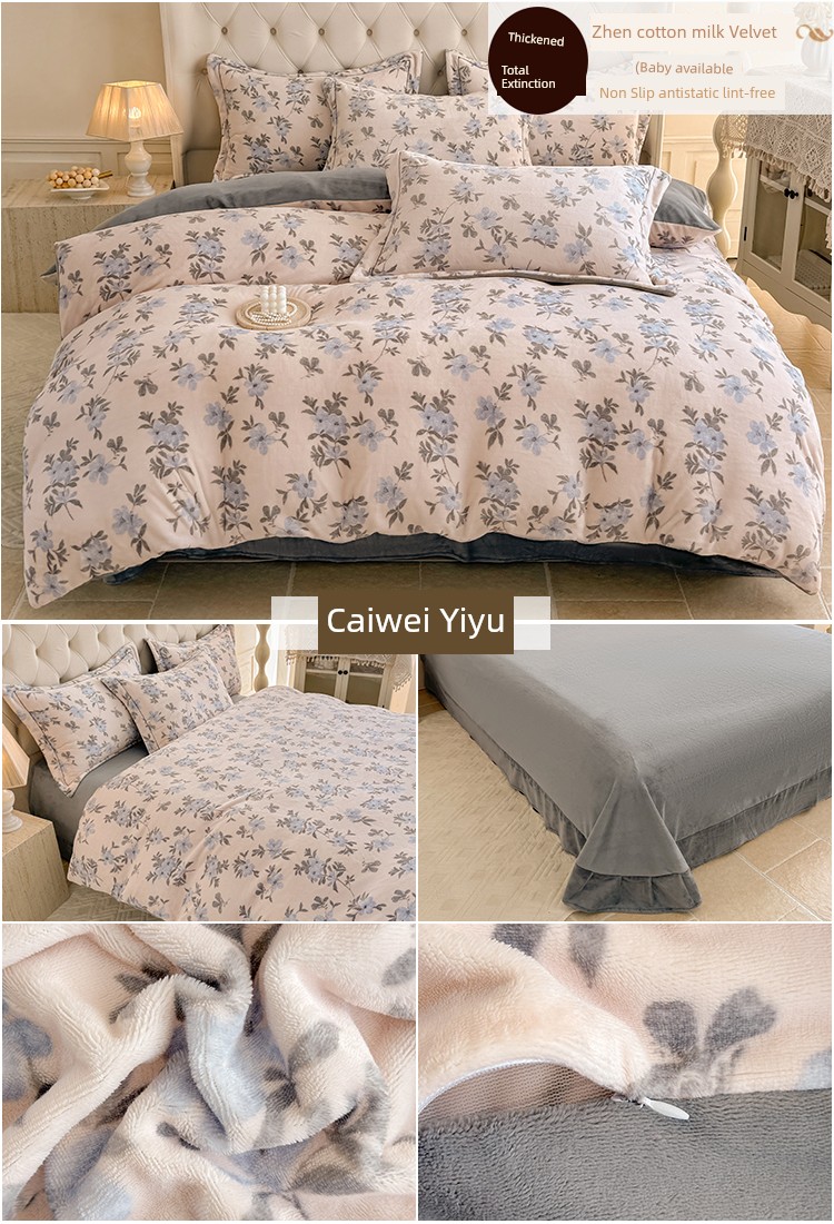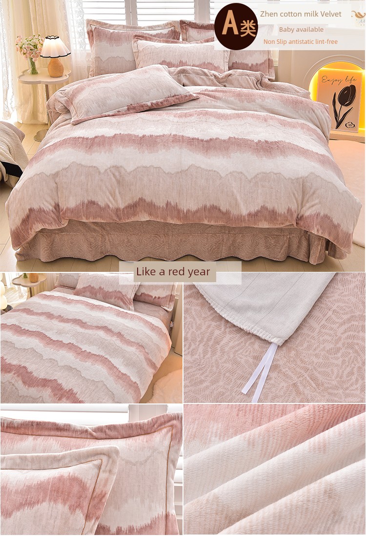 Thickened Double-Sided Milk Fiber Bed Four-Piece Set Fleece-lined 2025 New Arrival Classy Coral Fleece Bed Sheet Flannel Bedding
