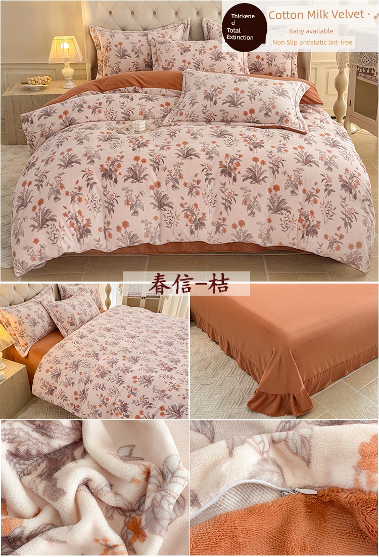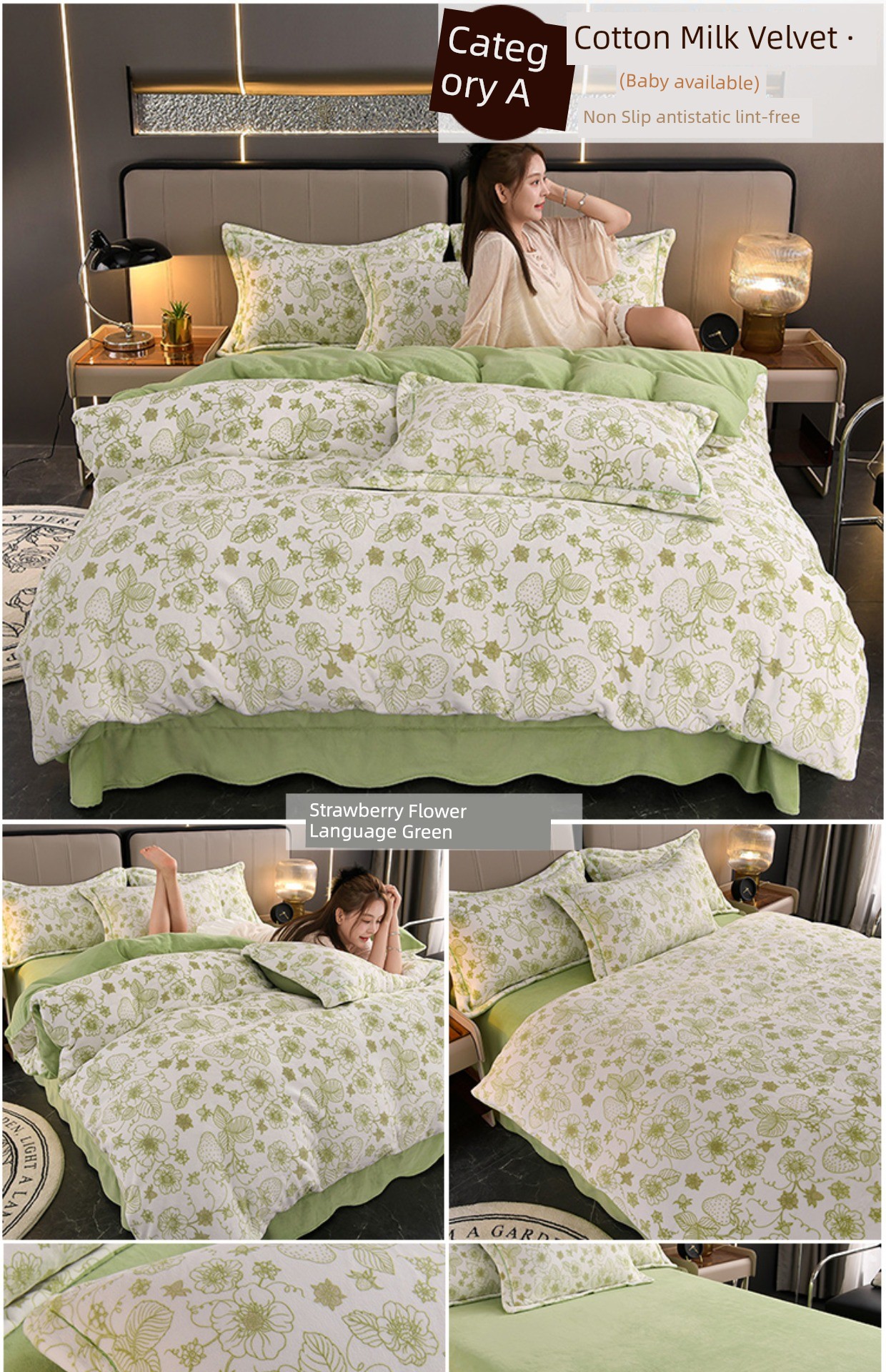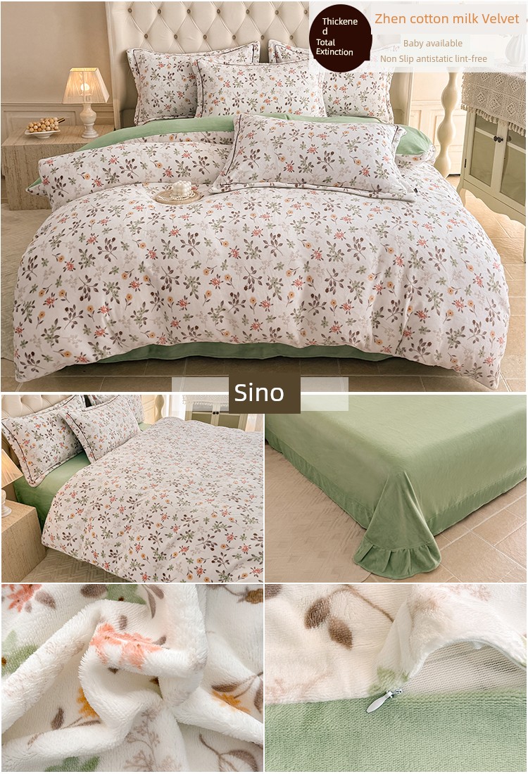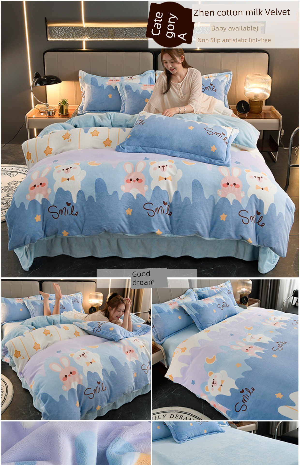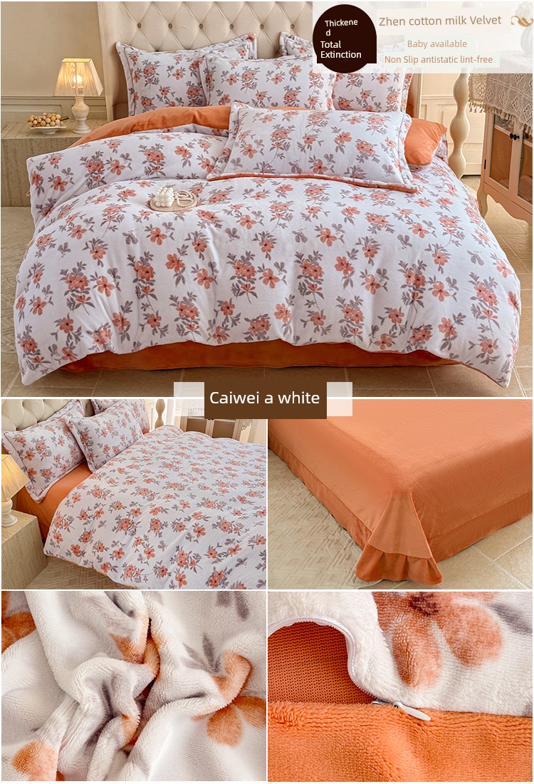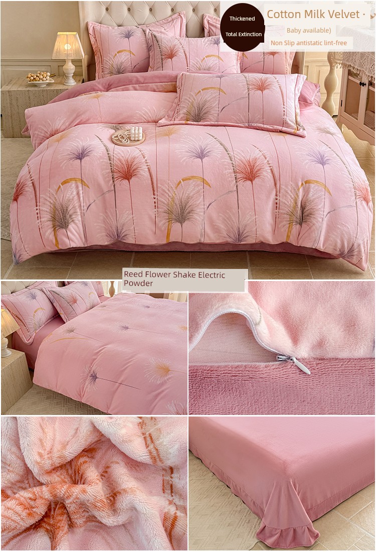 Thickened Double-Sided Milk Fiber Bed Four-Piece Set Fleece-lined 2025 New Arrival Classy Coral Fleece Bed Sheet Flannel Bedding