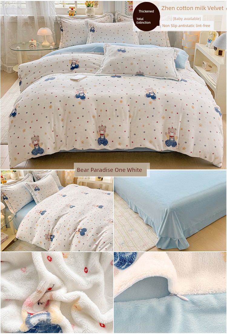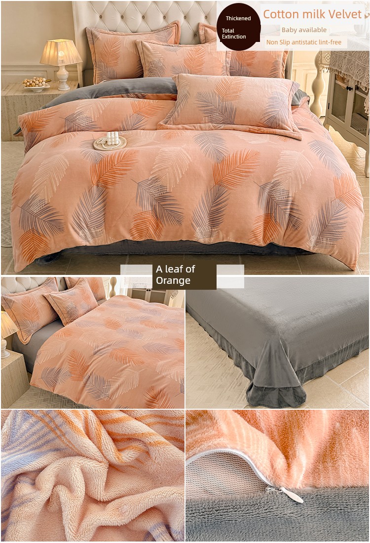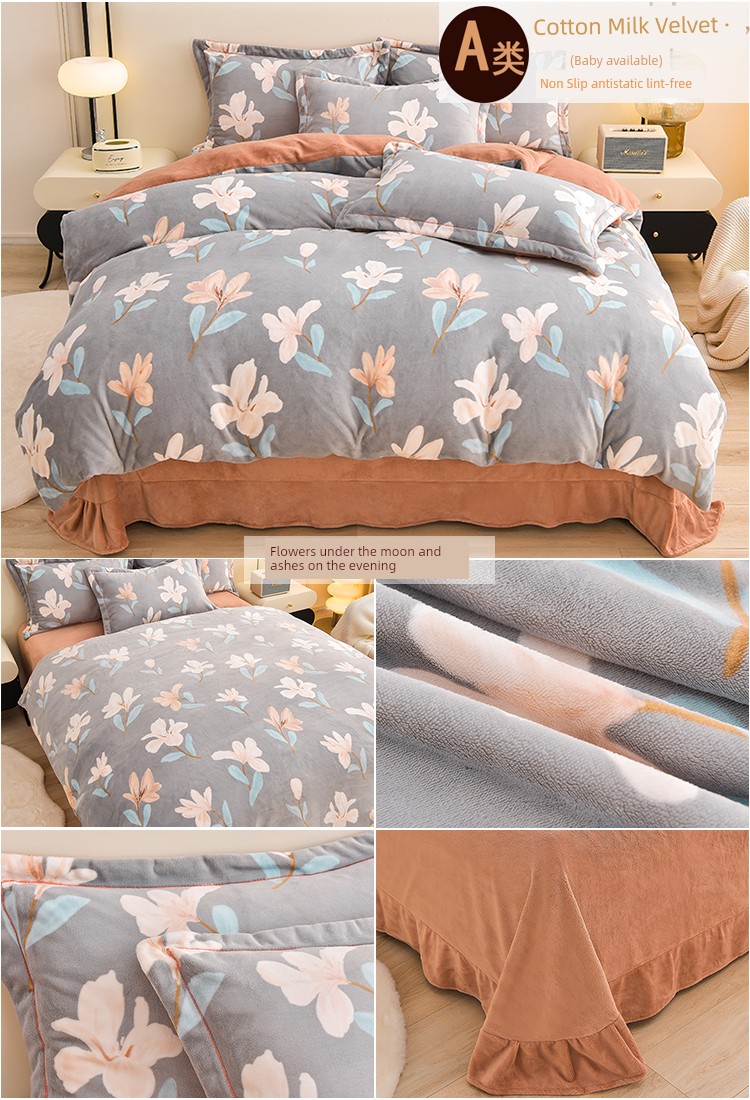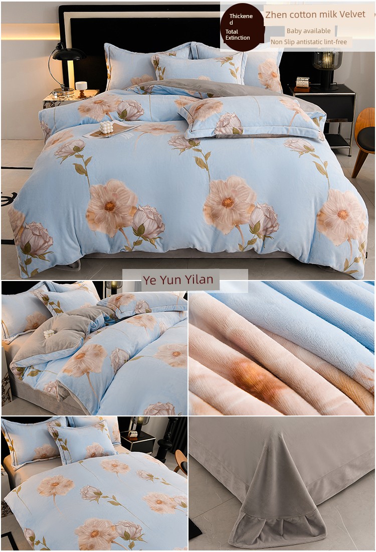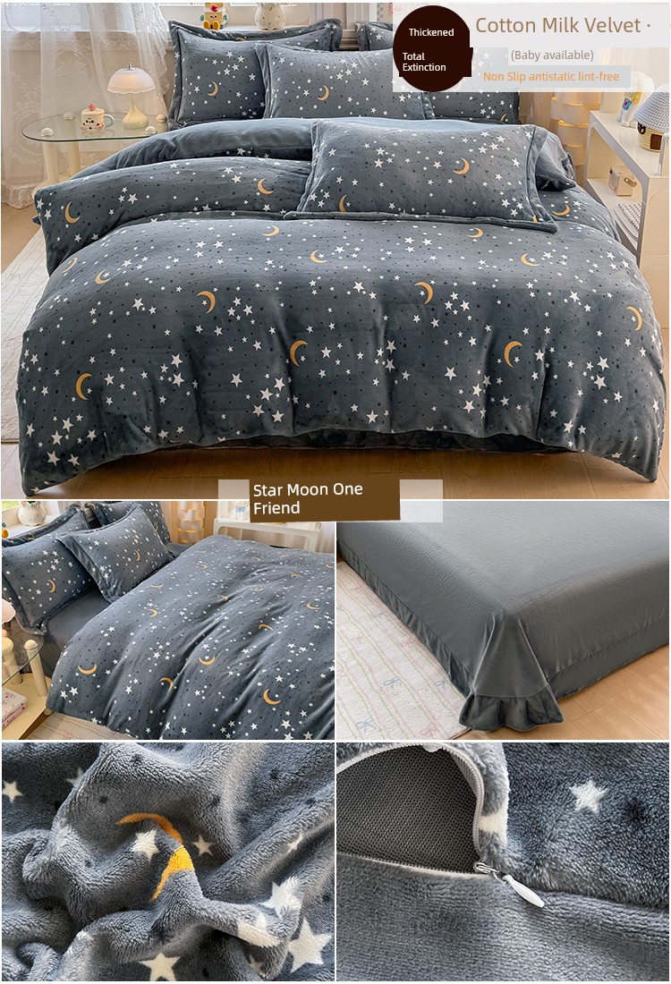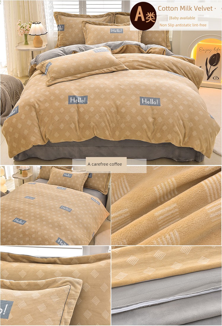 Thickened Double-Sided Milk Fiber Bed Four-Piece Set Fleece-lined 2025 New Arrival Classy Coral Fleece Bed Sheet Flannel Bedding