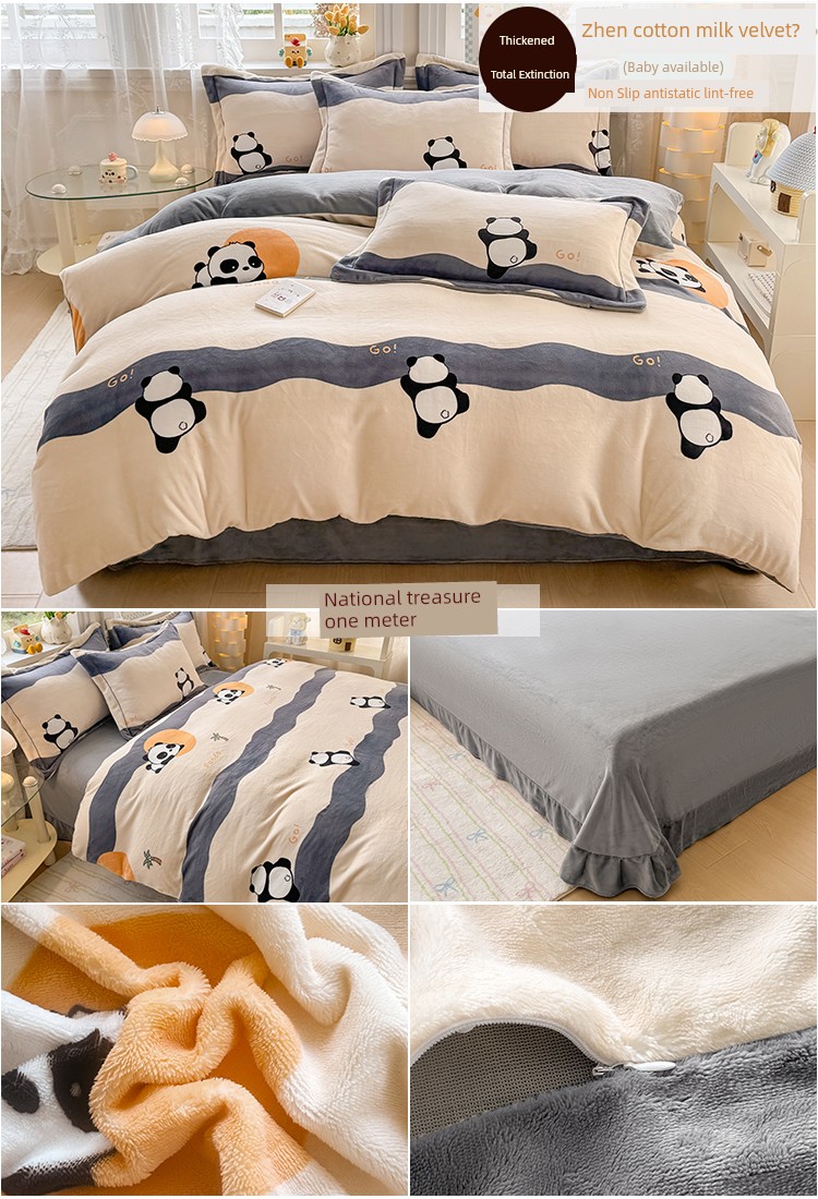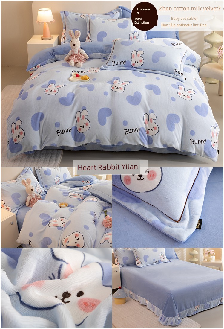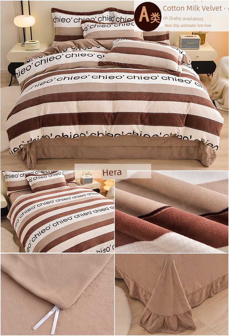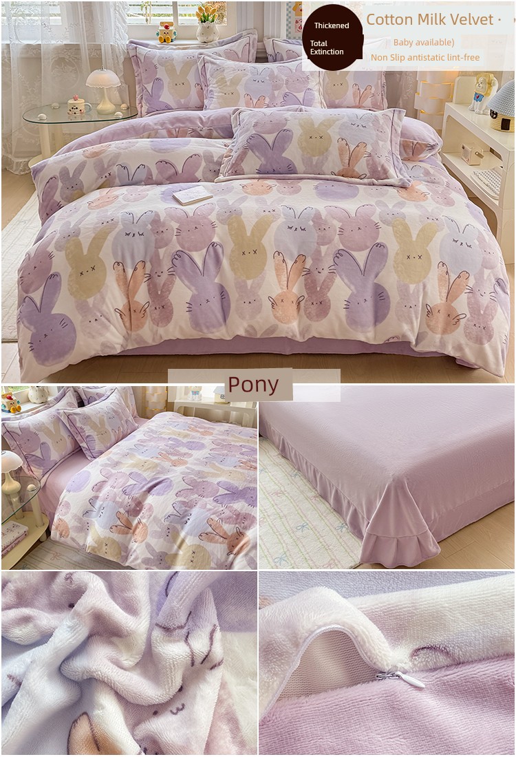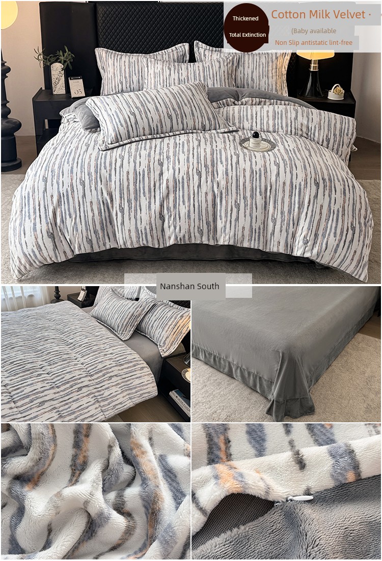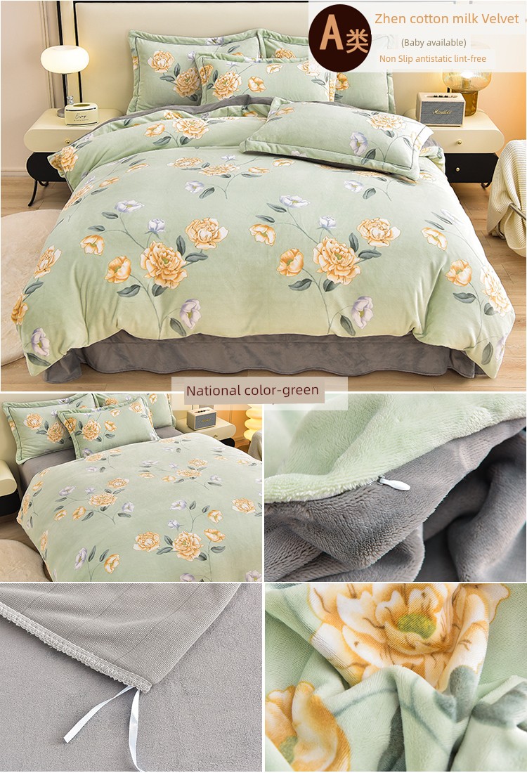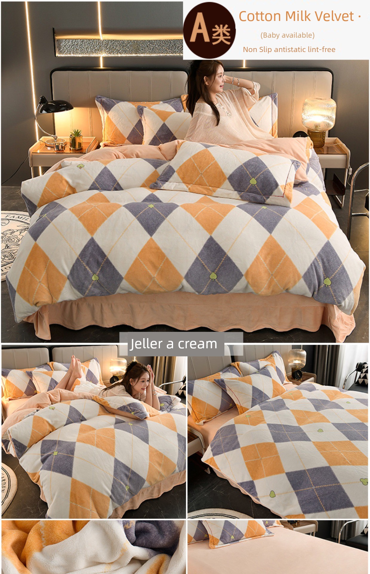 Thickened Double-Sided Milk Fiber Bed Four-Piece Set Fleece-lined 2025 New Arrival Classy Coral Fleece Bed Sheet Flannel Bedding