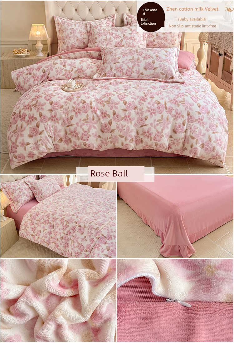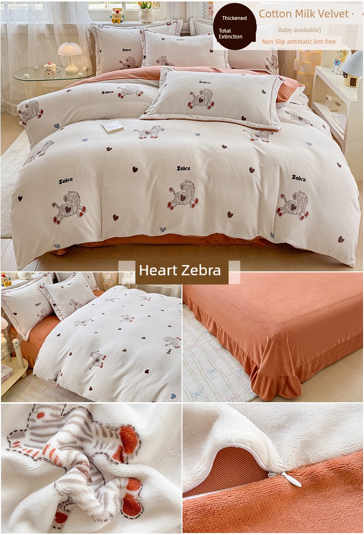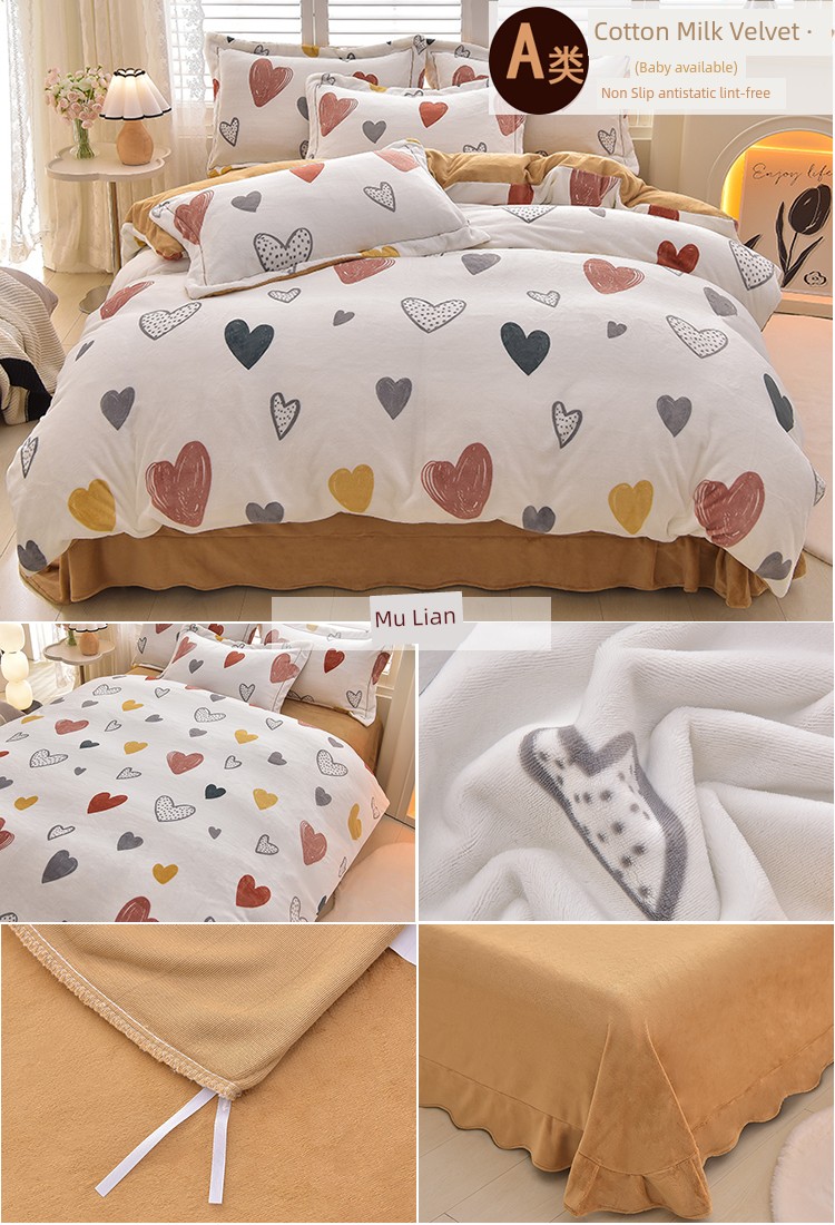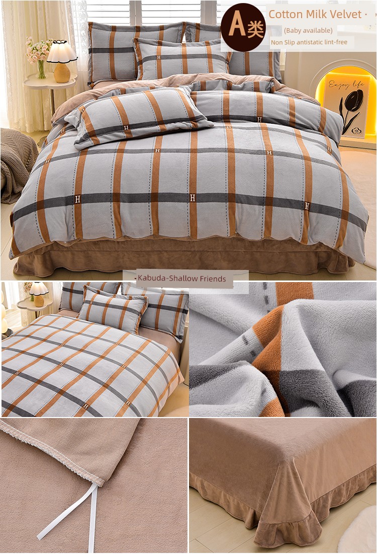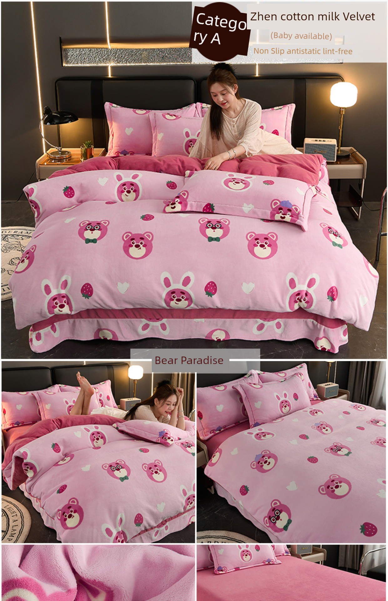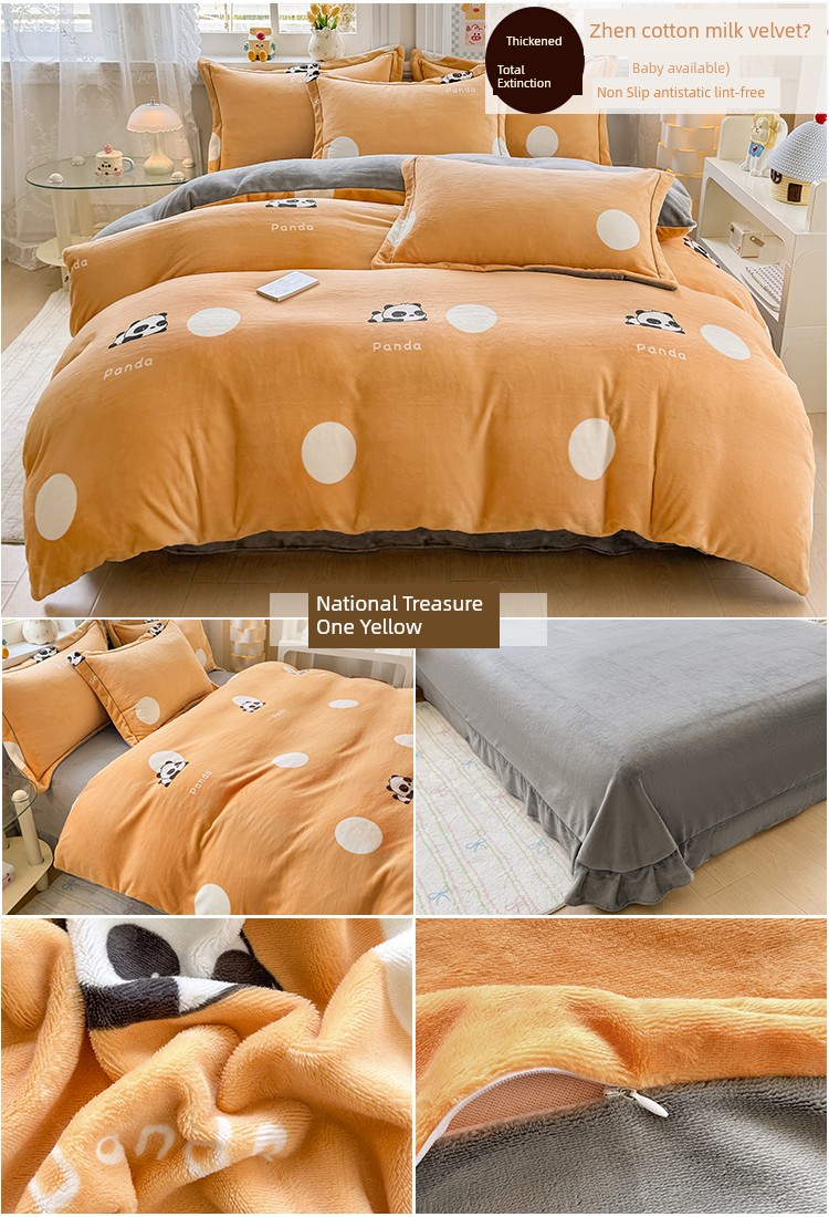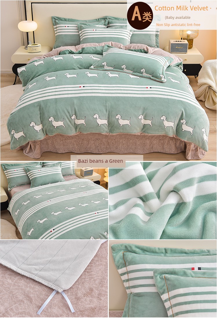 Thickened Double-Sided Milk Fiber Bed Four-Piece Set Fleece-lined 2025 New Arrival Classy Coral Fleece Bed Sheet Flannel Bedding