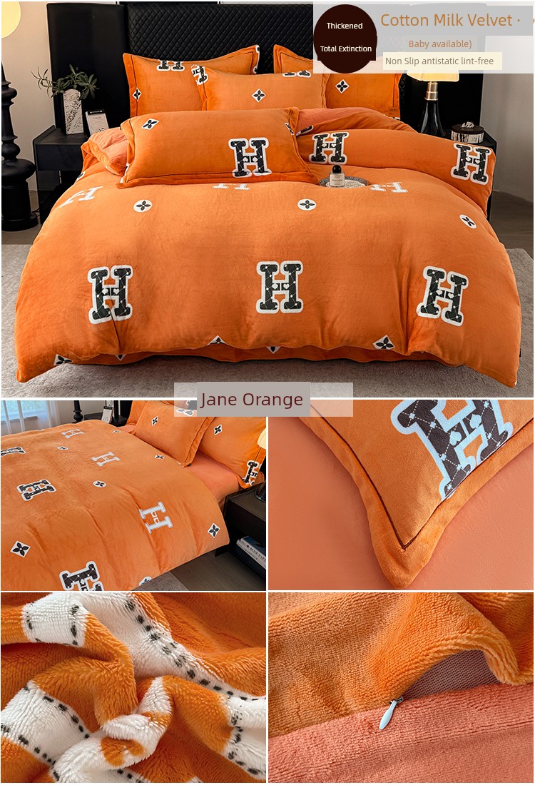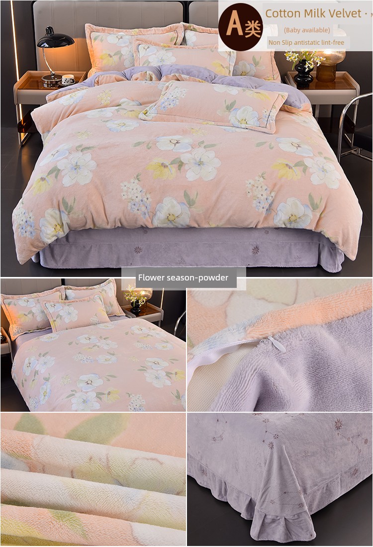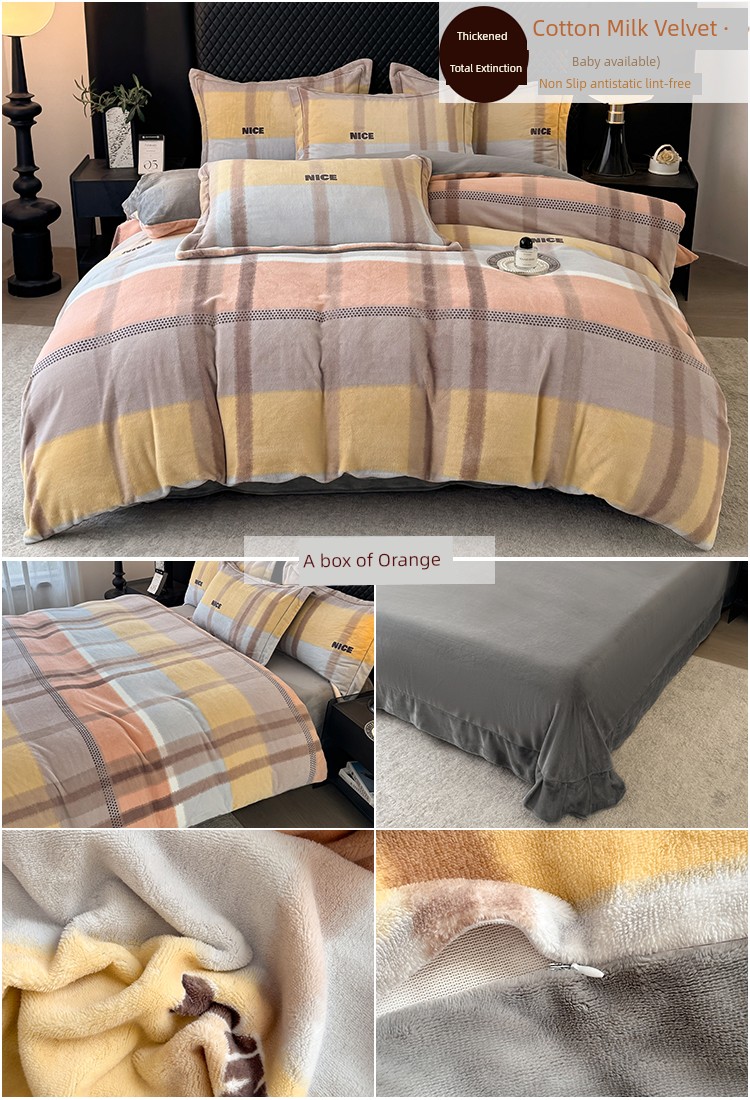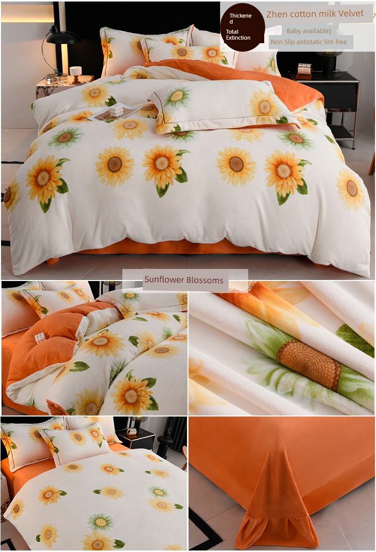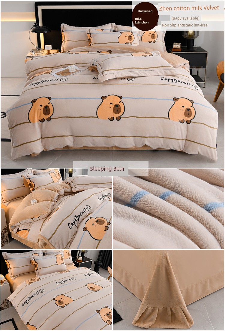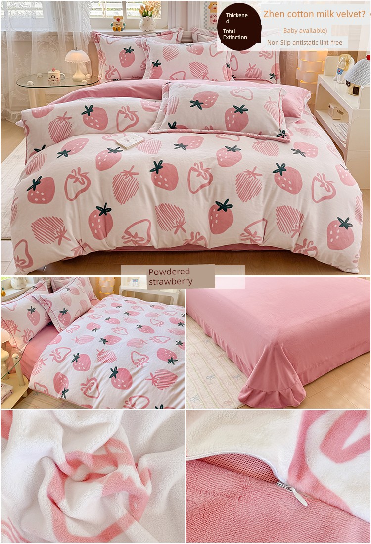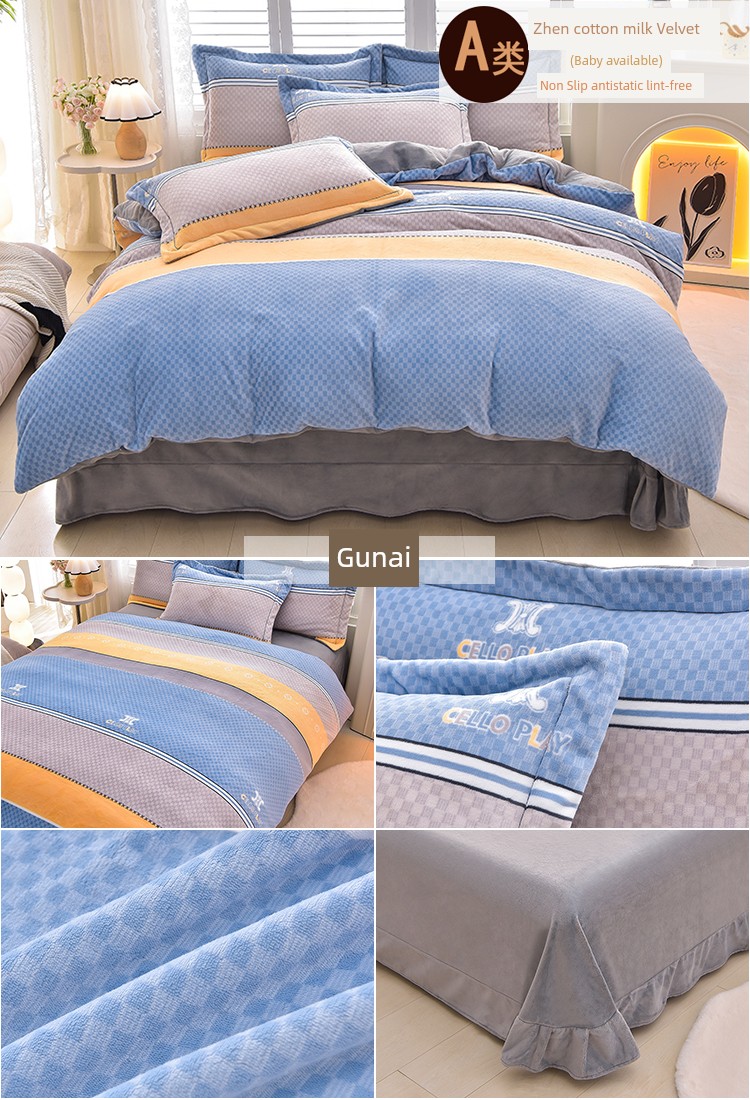 Thickened Double-Sided Milk Fiber Bed Four-Piece Set Fleece-lined 2025 New Arrival Classy Coral Fleece Bed Sheet Flannel Bedding