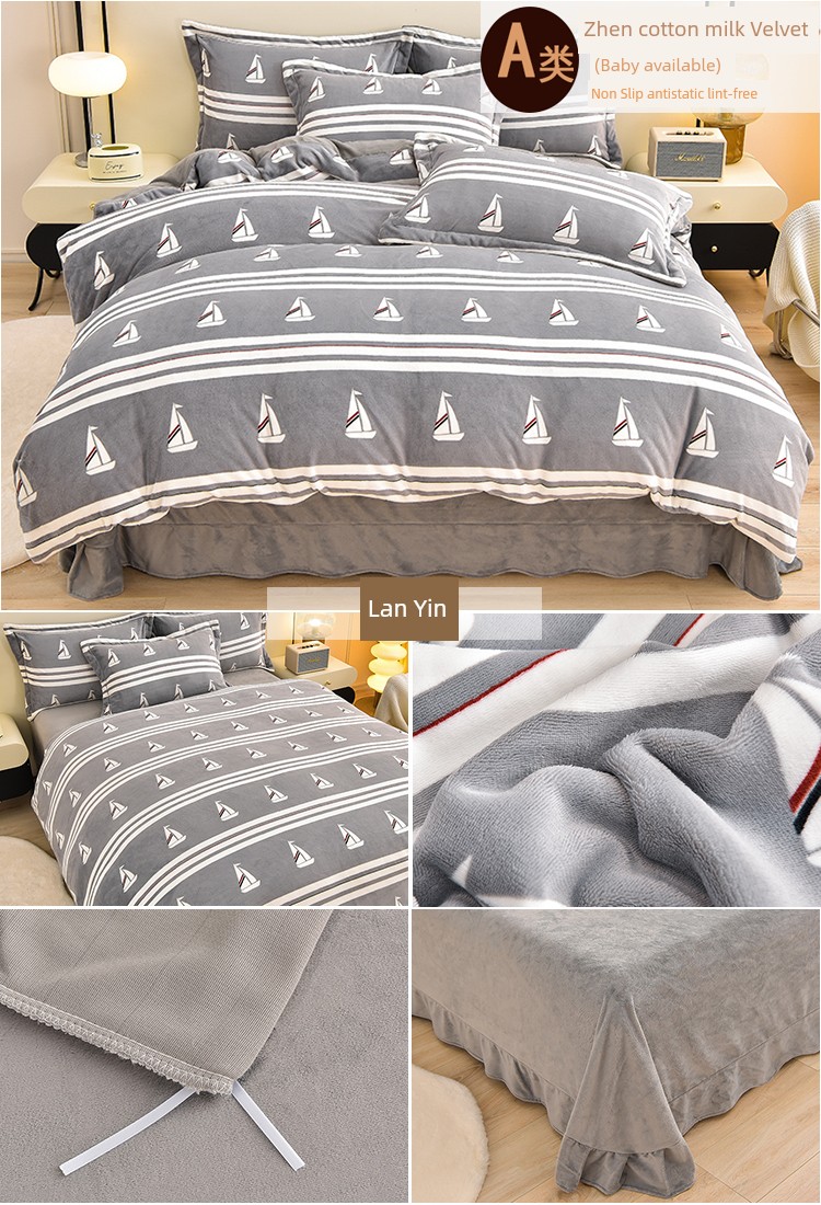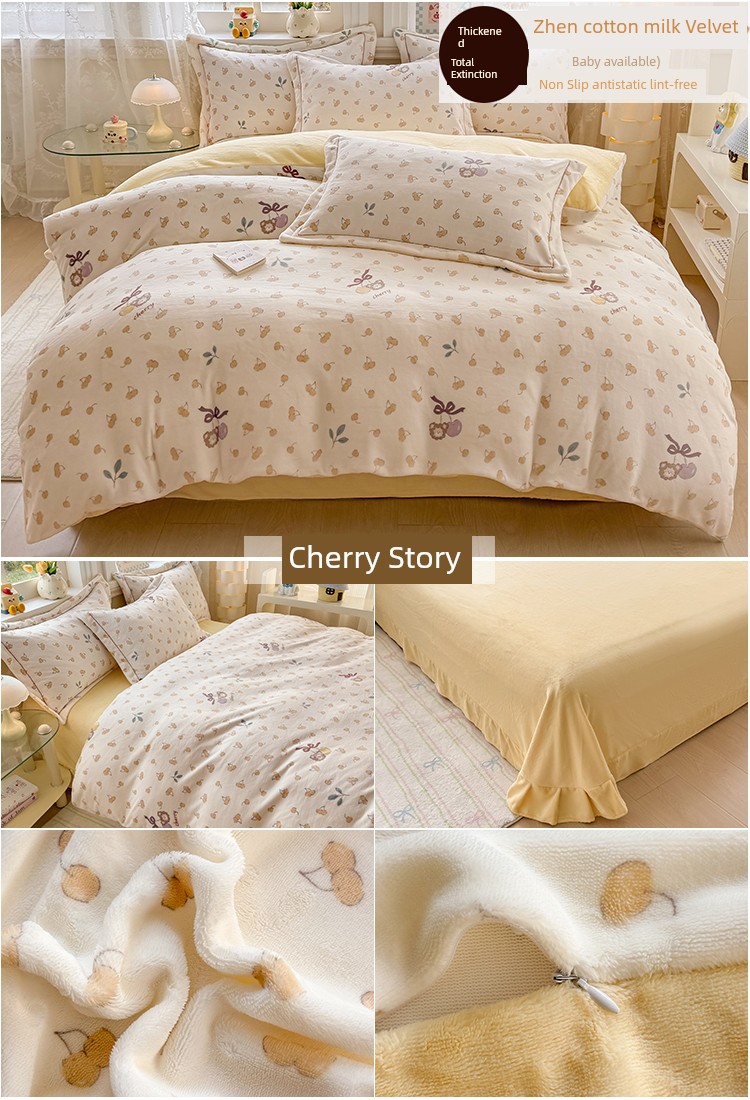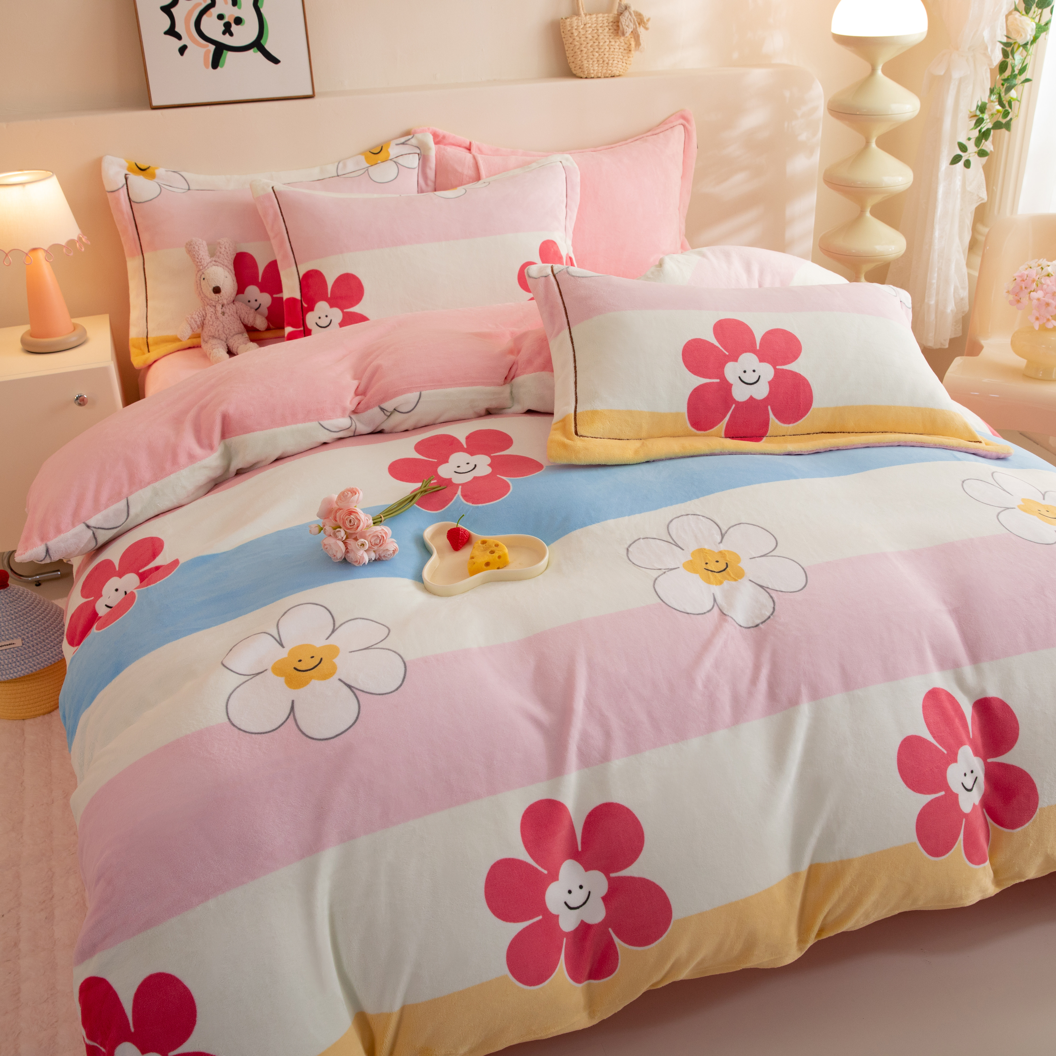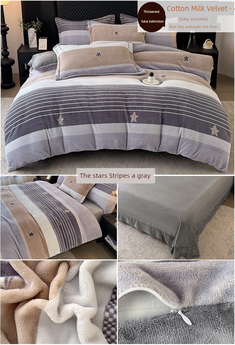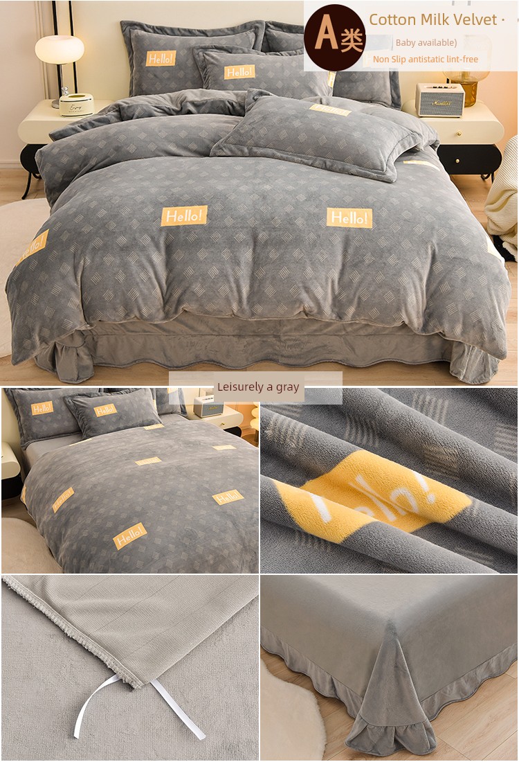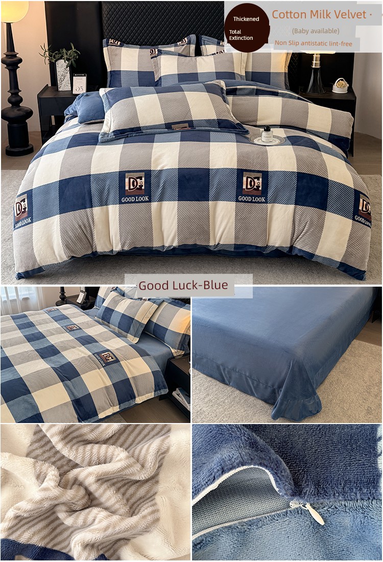 Thickened Double-Sided Milk Fiber Bed Four-Piece Set Fleece-lined 2025 New Arrival Classy Coral Fleece Bed Sheet Flannel Bedding