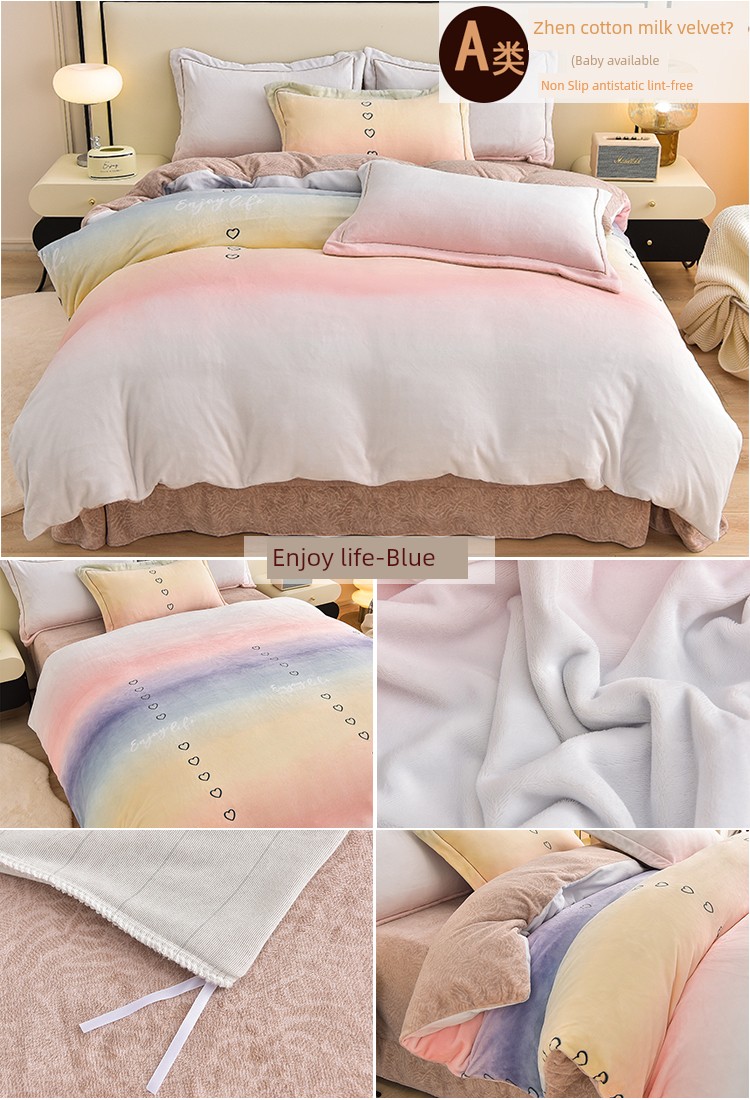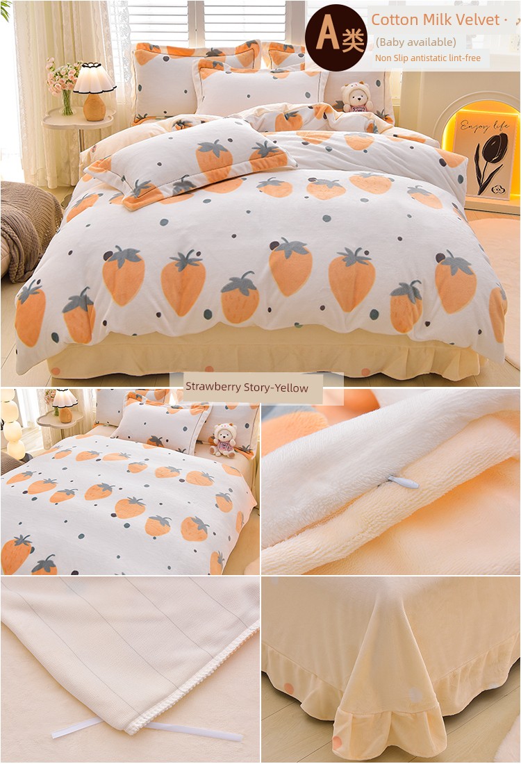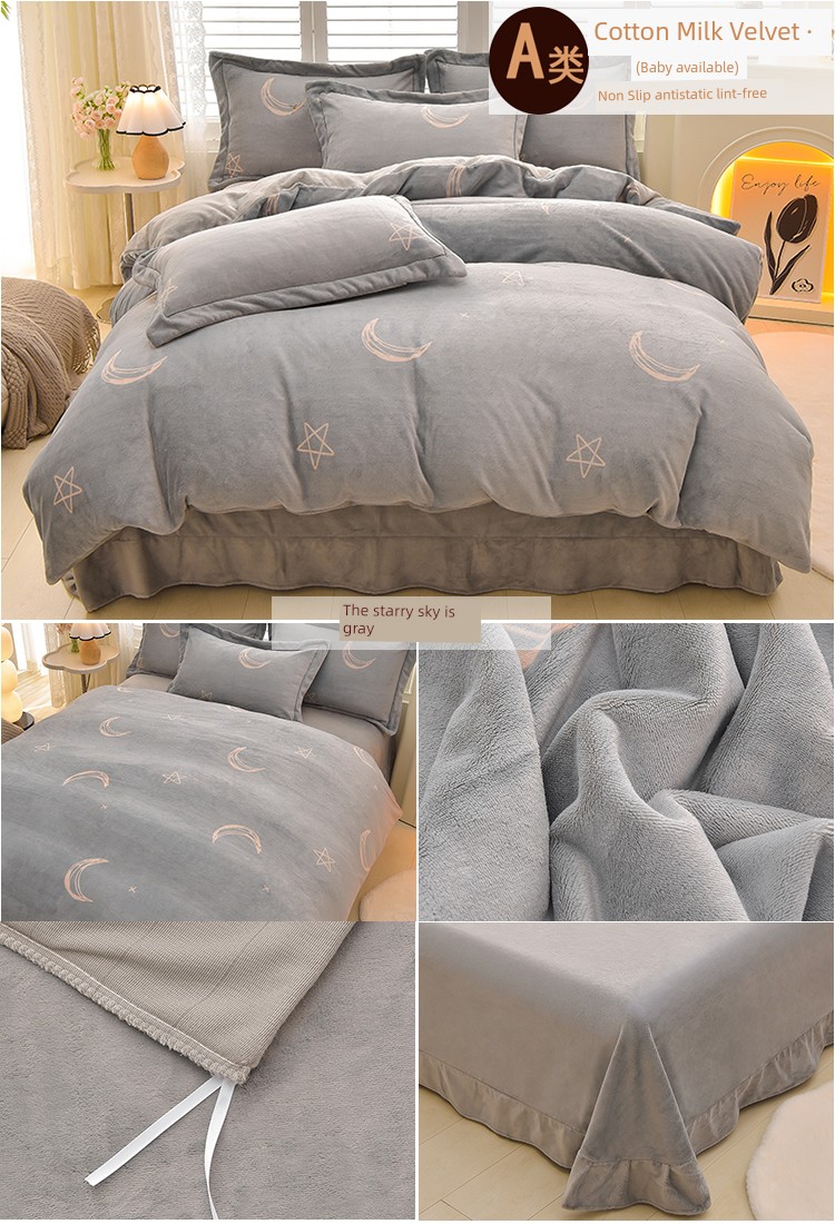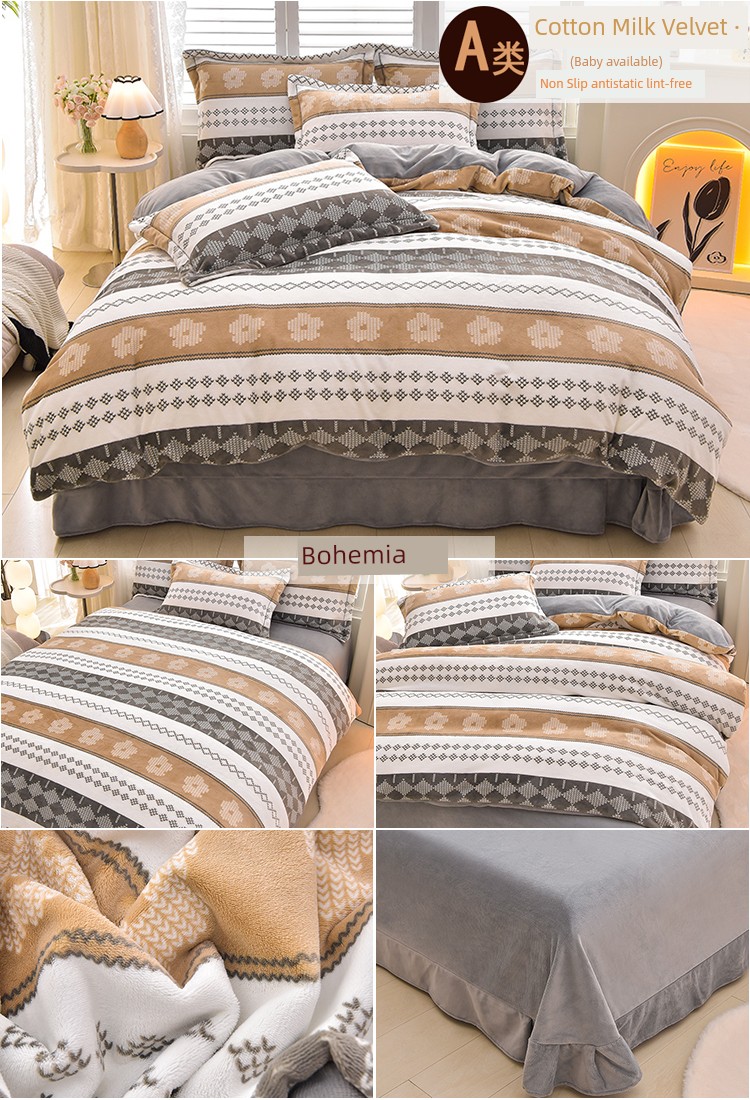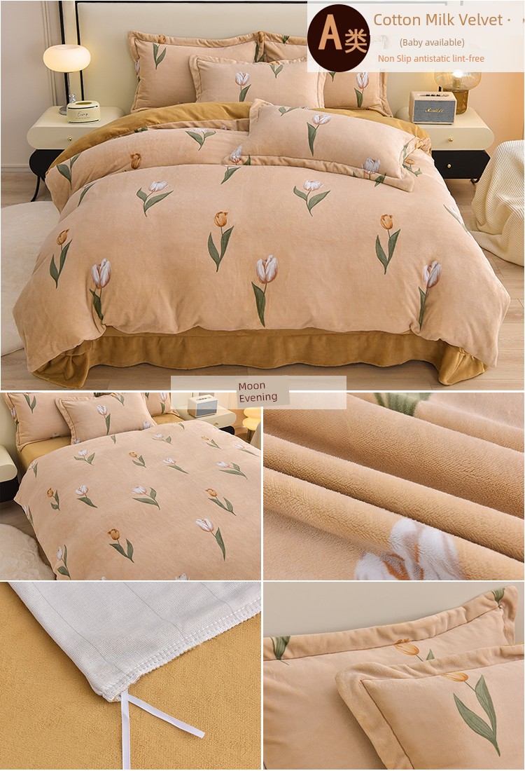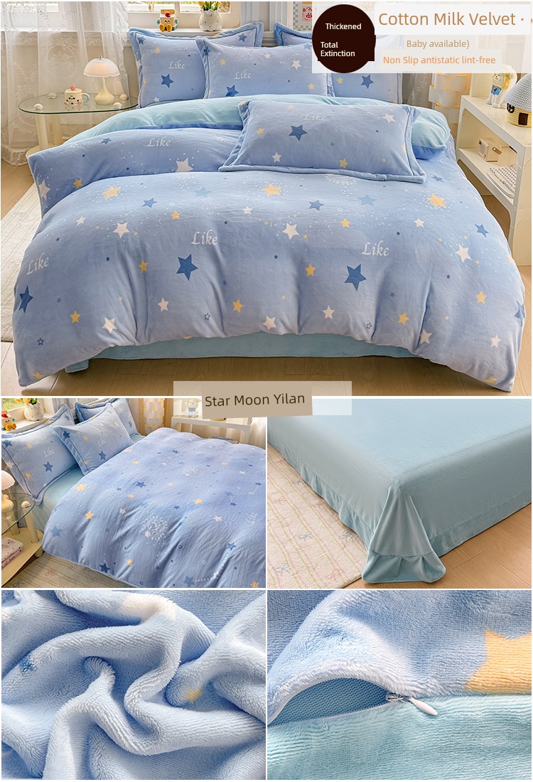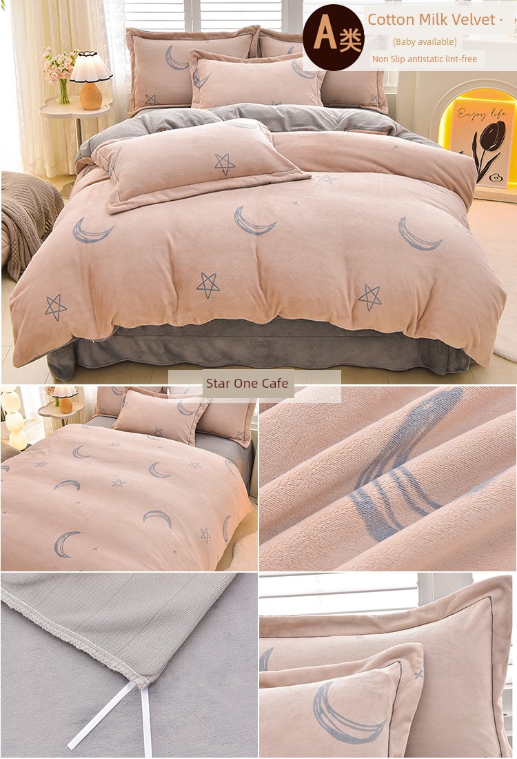 Thickened Double-Sided Milk Fiber Bed Four-Piece Set Fleece-lined 2025 New Arrival Classy Coral Fleece Bed Sheet Flannel Bedding
