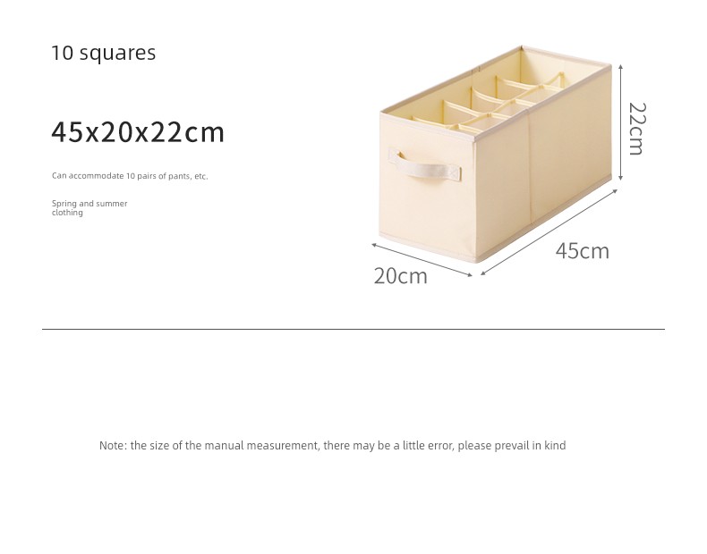 10格:可容纳10条裤子等春夏衣物(适配深度45cm以上衣柜)