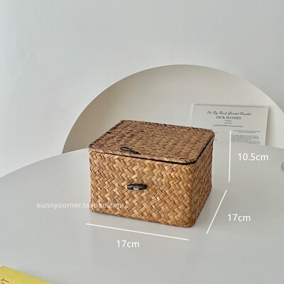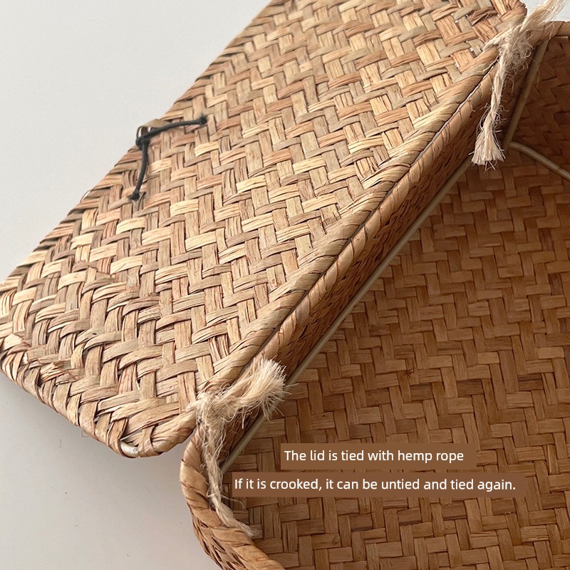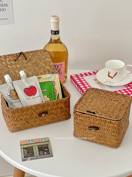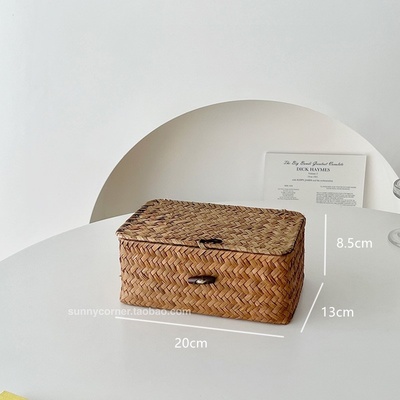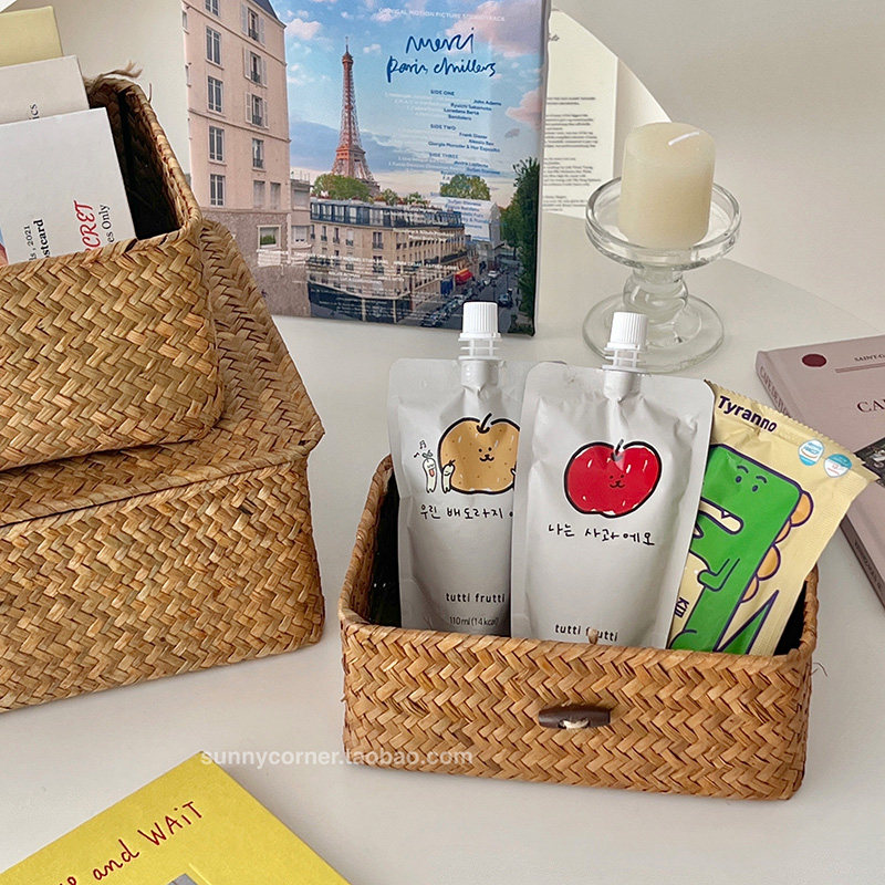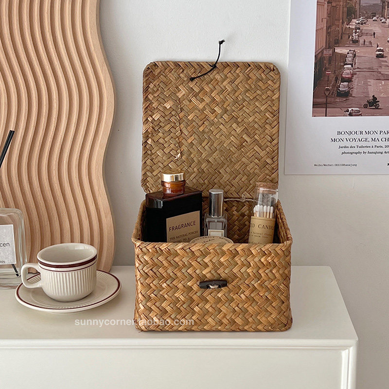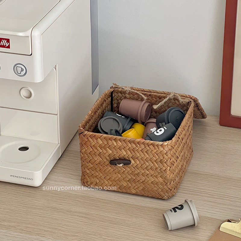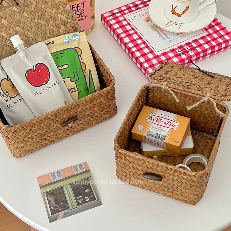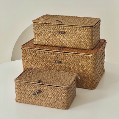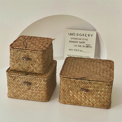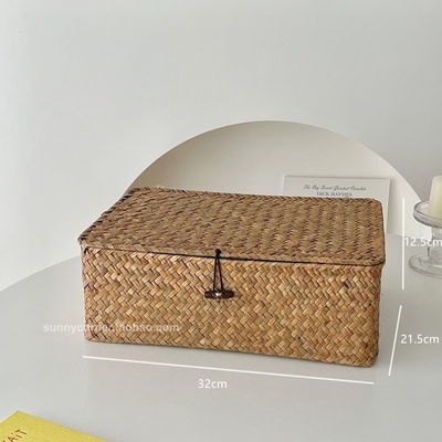 INS Style Japanese Style Handmade Straw Desktop Storage Box