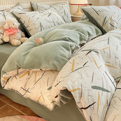 冬季A全棉纯棉B牛奶珊瑚绒被套单件冬天单人加绒被罩法兰绒面被单