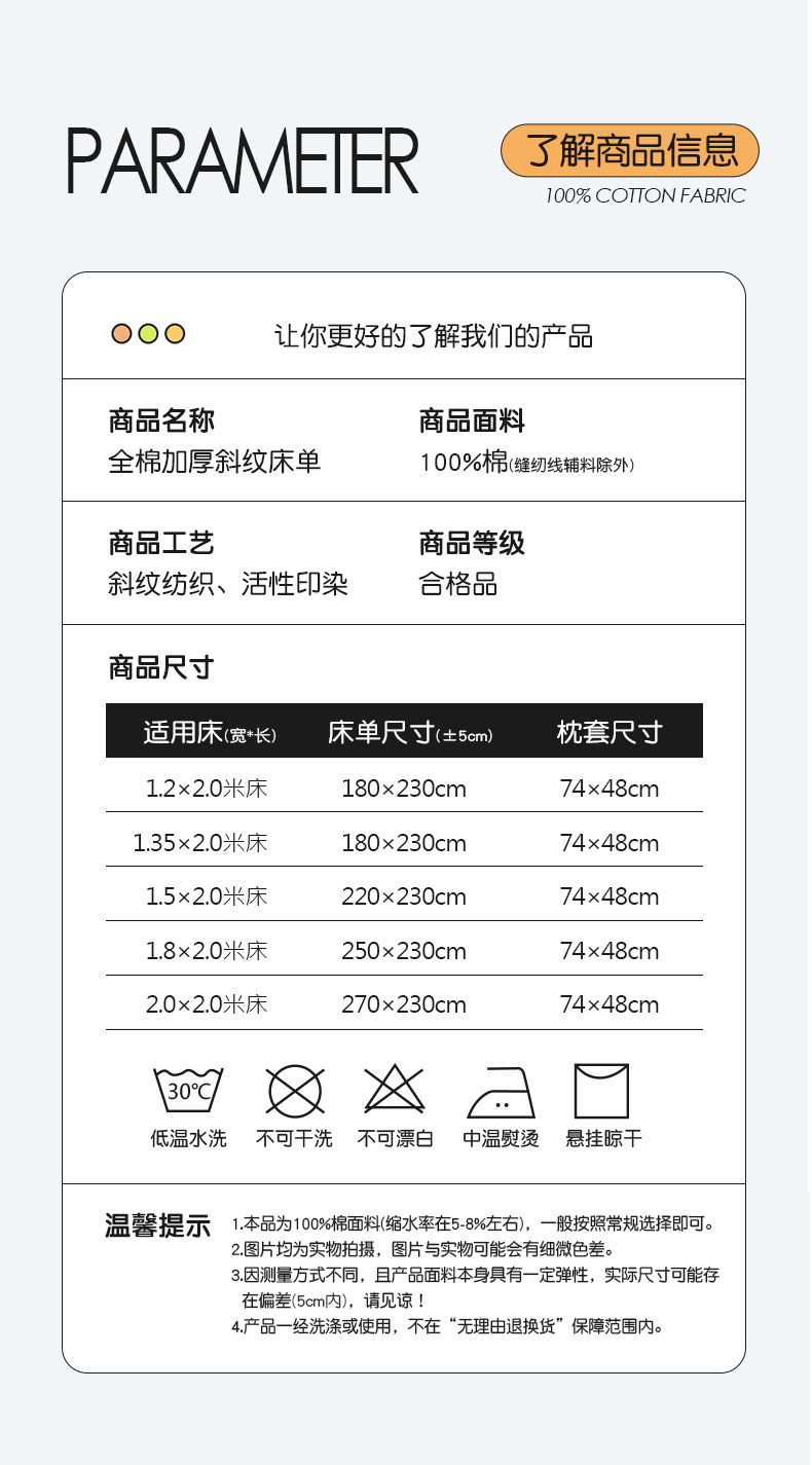 1.2/1.3床用180*230送一对同款枕套