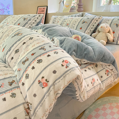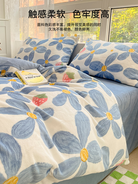 BTR蓝墨花朵 【双面加绒 亲肤裸睡】
