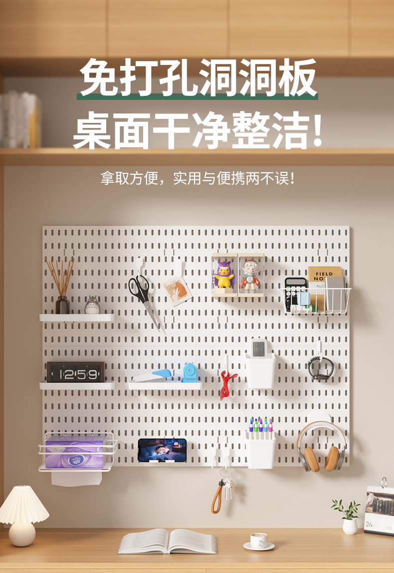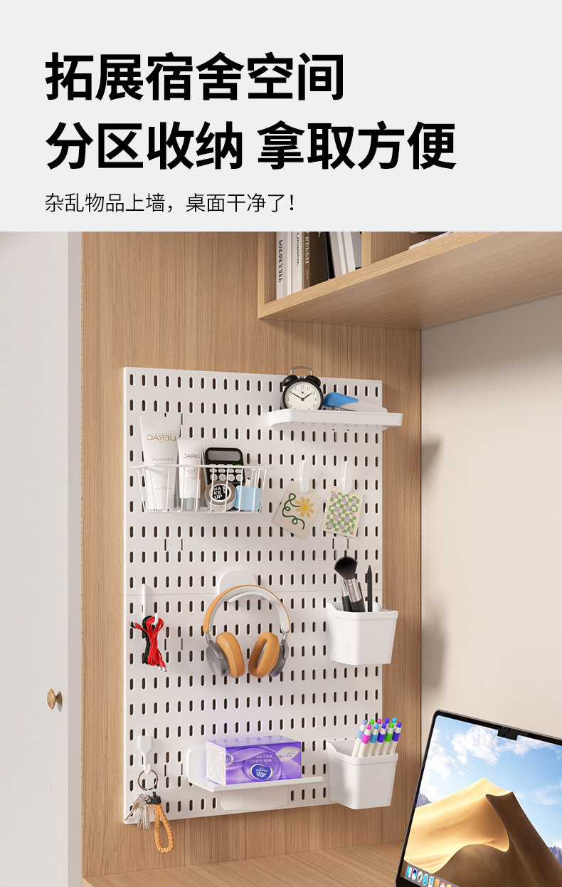 免打孔洞洞板置物架大学生书桌整理架墙上电竞书桌面文具收纳厨房