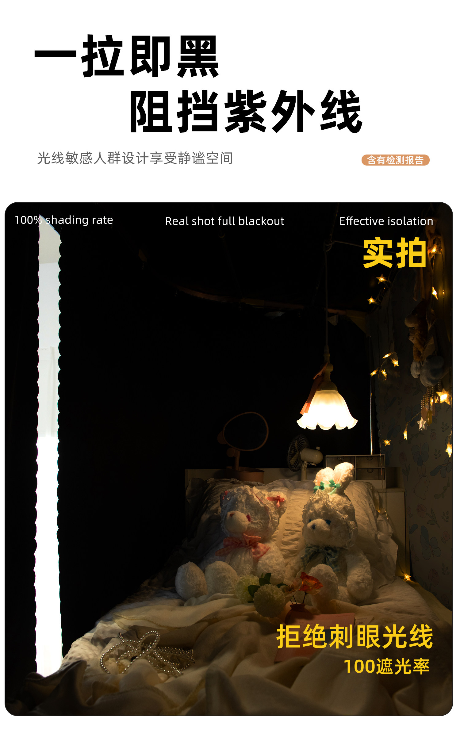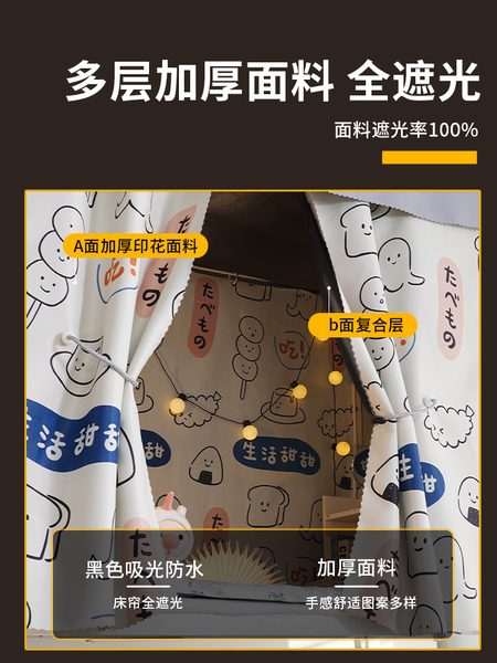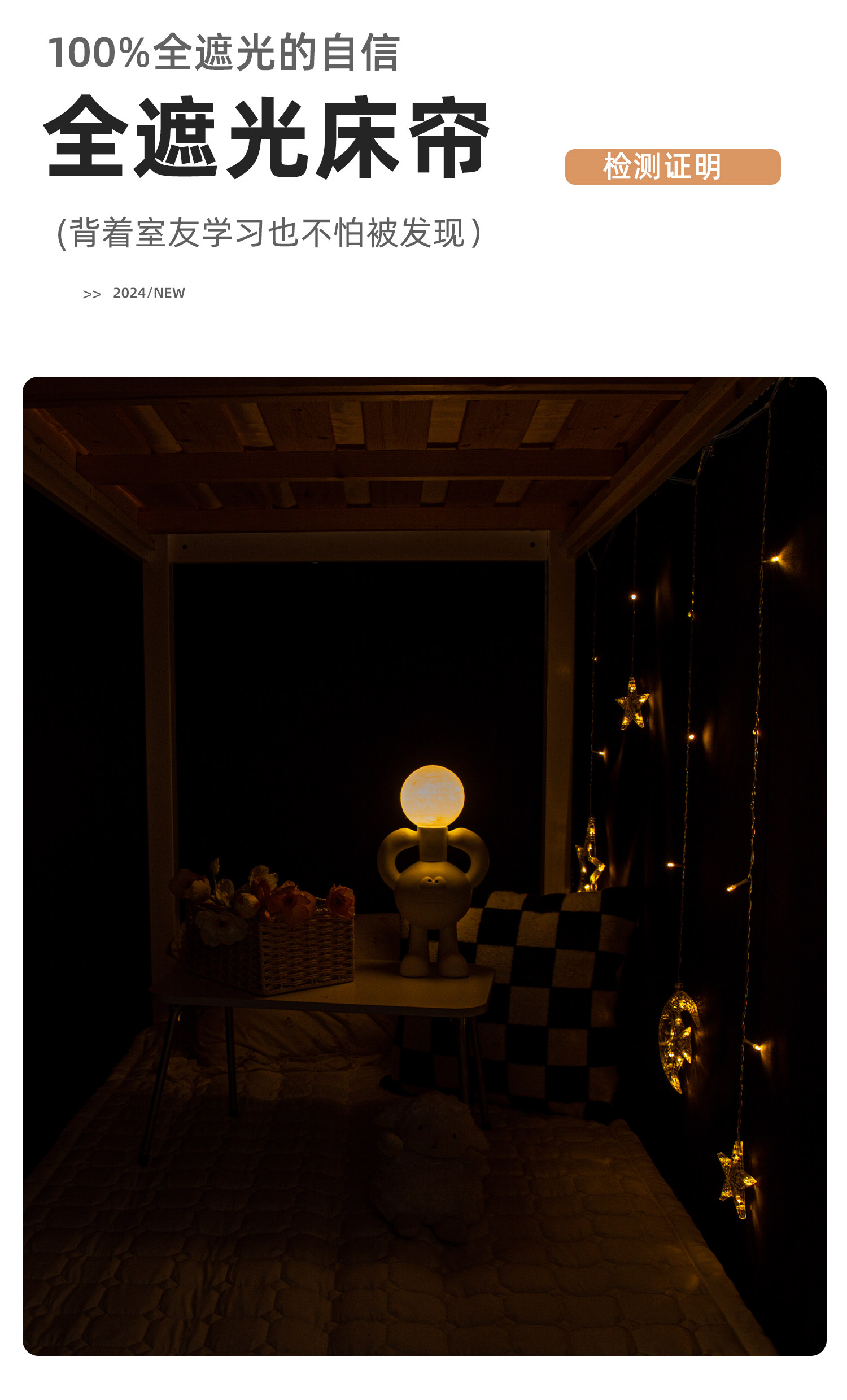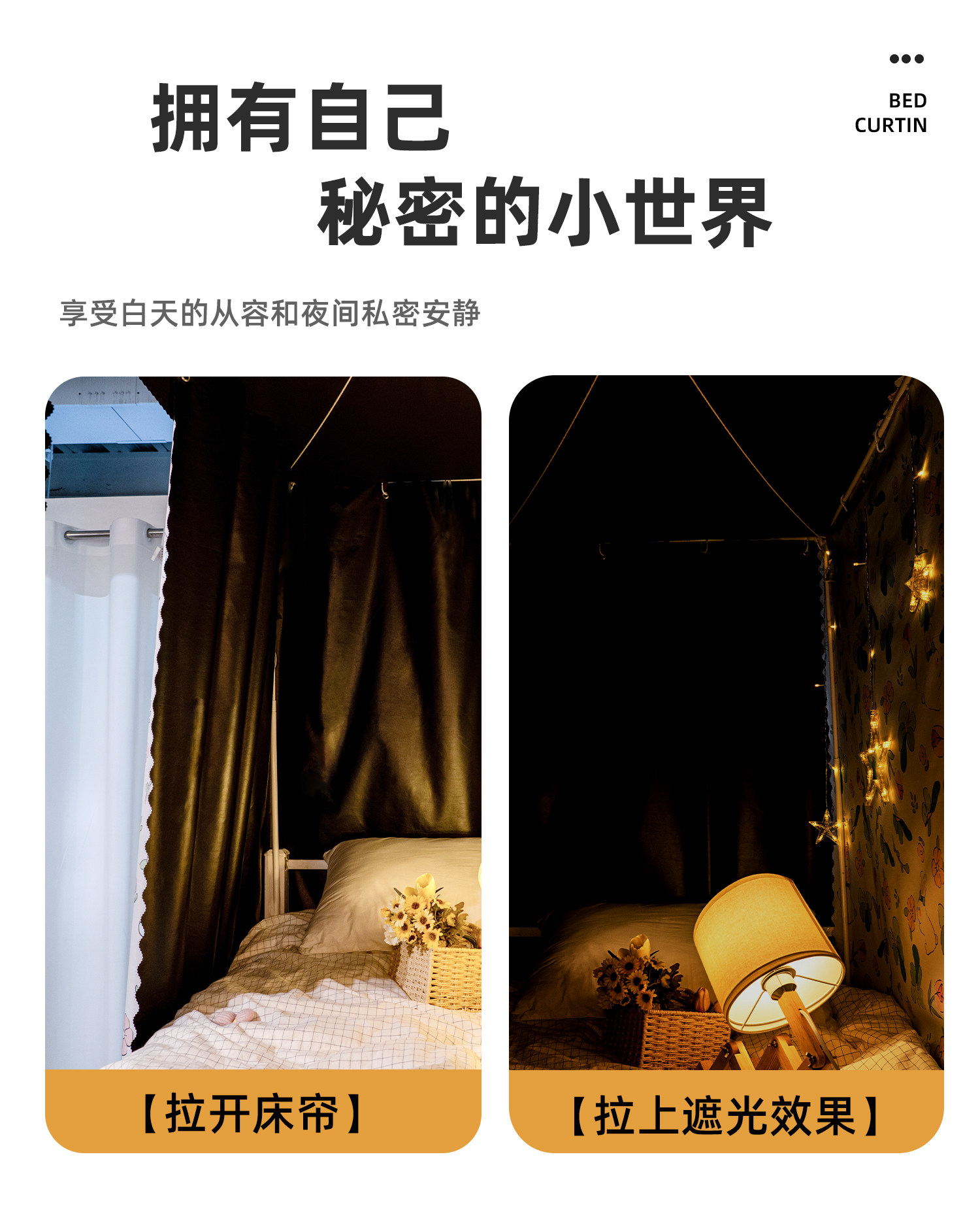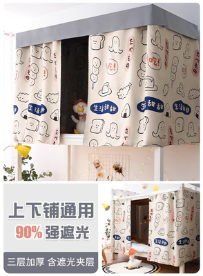 强遮光加厚床帘宿舍上铺寝室大学生上下铺女帘子围帘窗帘下桌遮挡