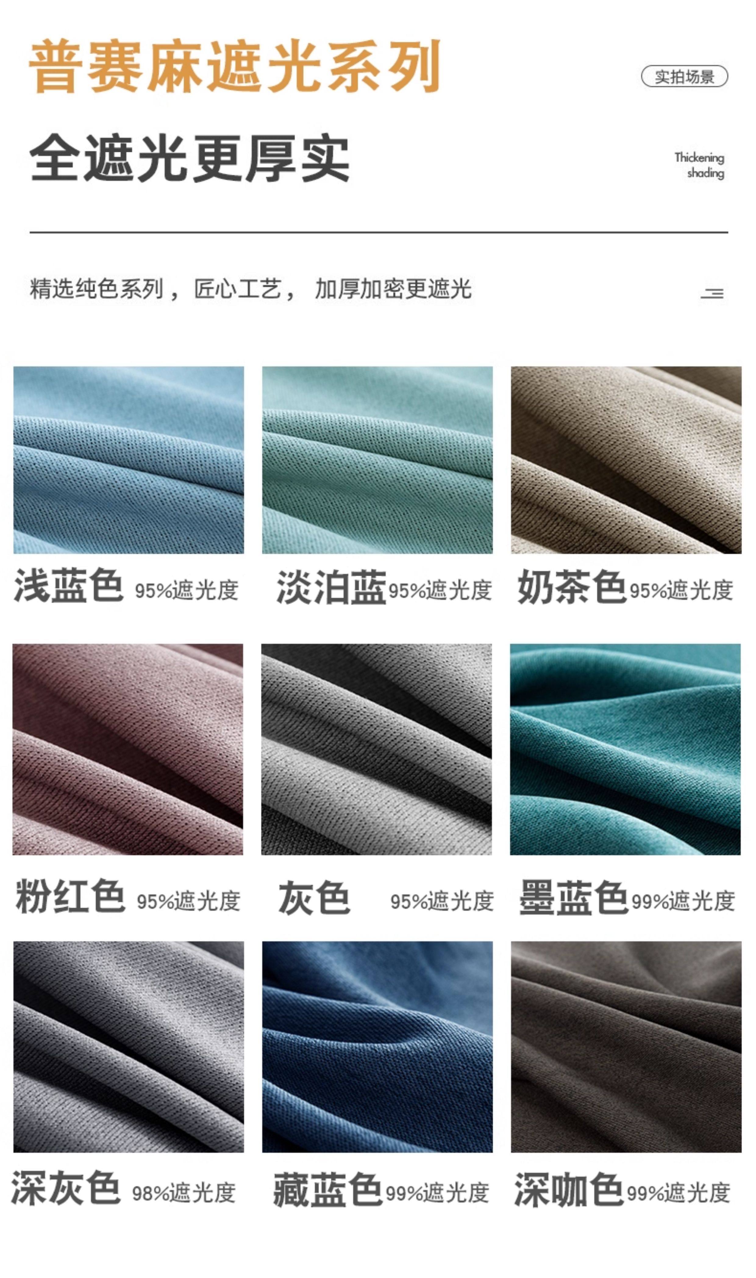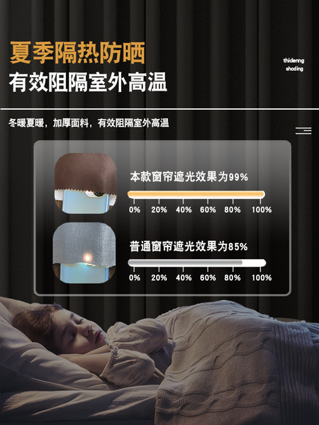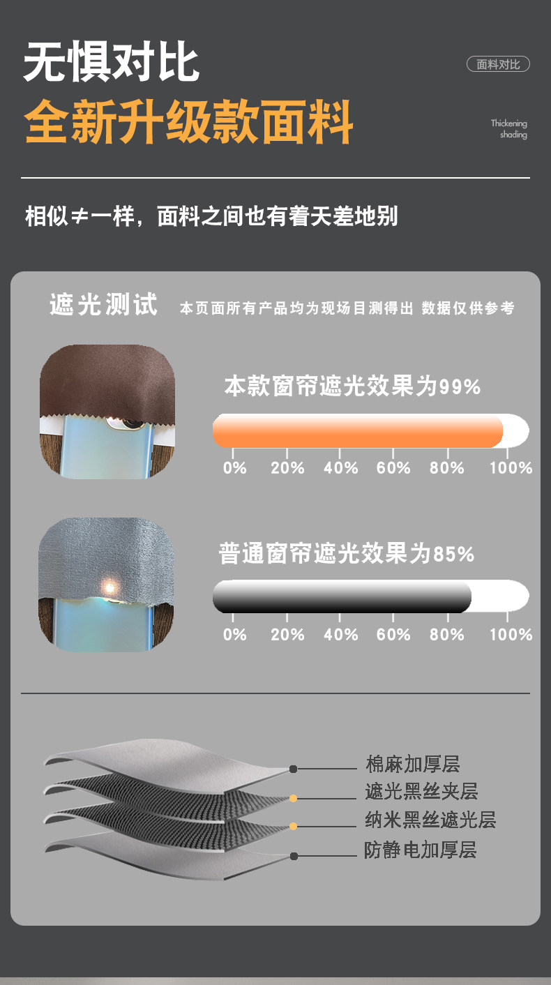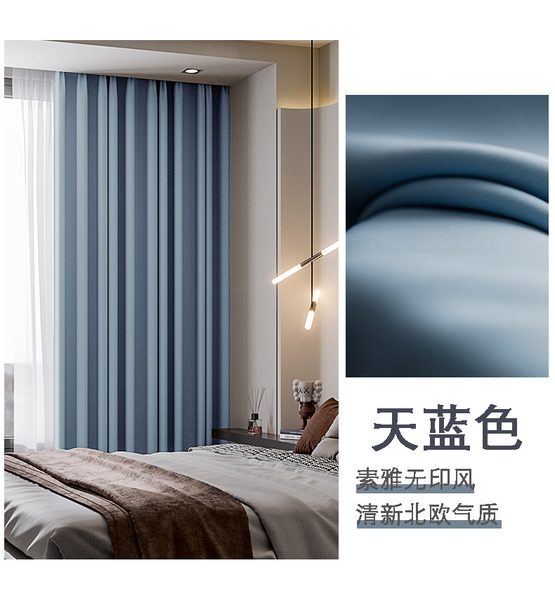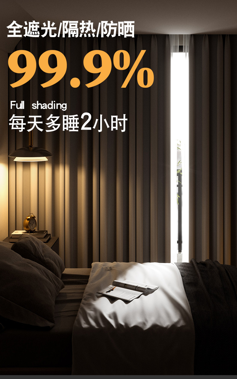 2026新款99全遮光布料卧室客厅阳台隔音隔热防晒挂钩式遮阳窗帘25