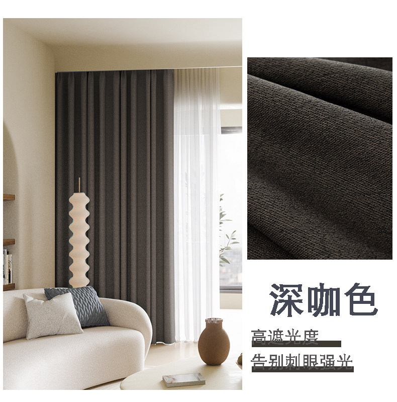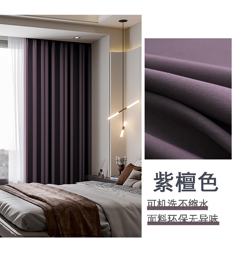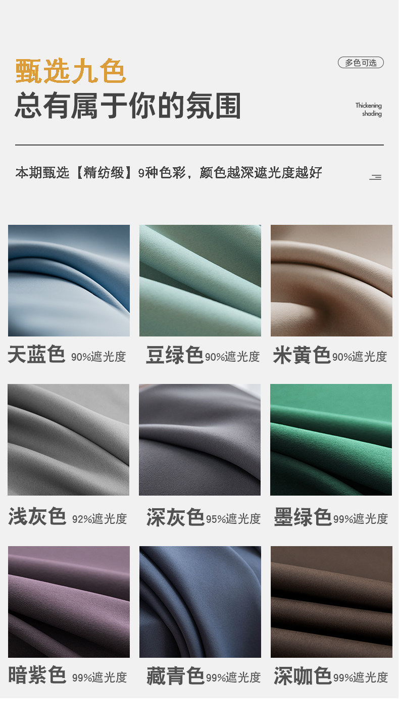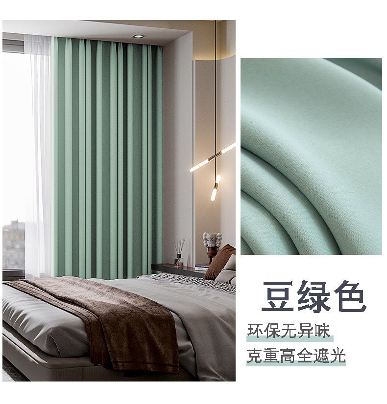 2026新款99全遮光布料卧室客厅阳台隔音隔热防晒挂钩式遮阳窗帘25