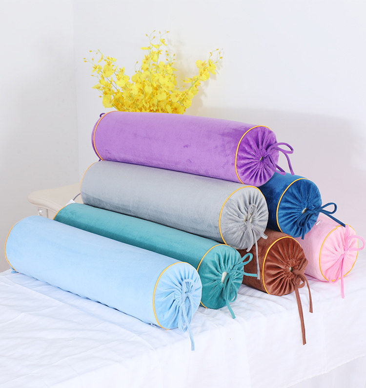 蕾丝脚枕-棉芯款【豆沙】加厚加长60CM-可拆洗