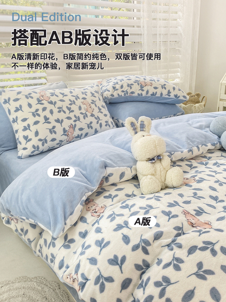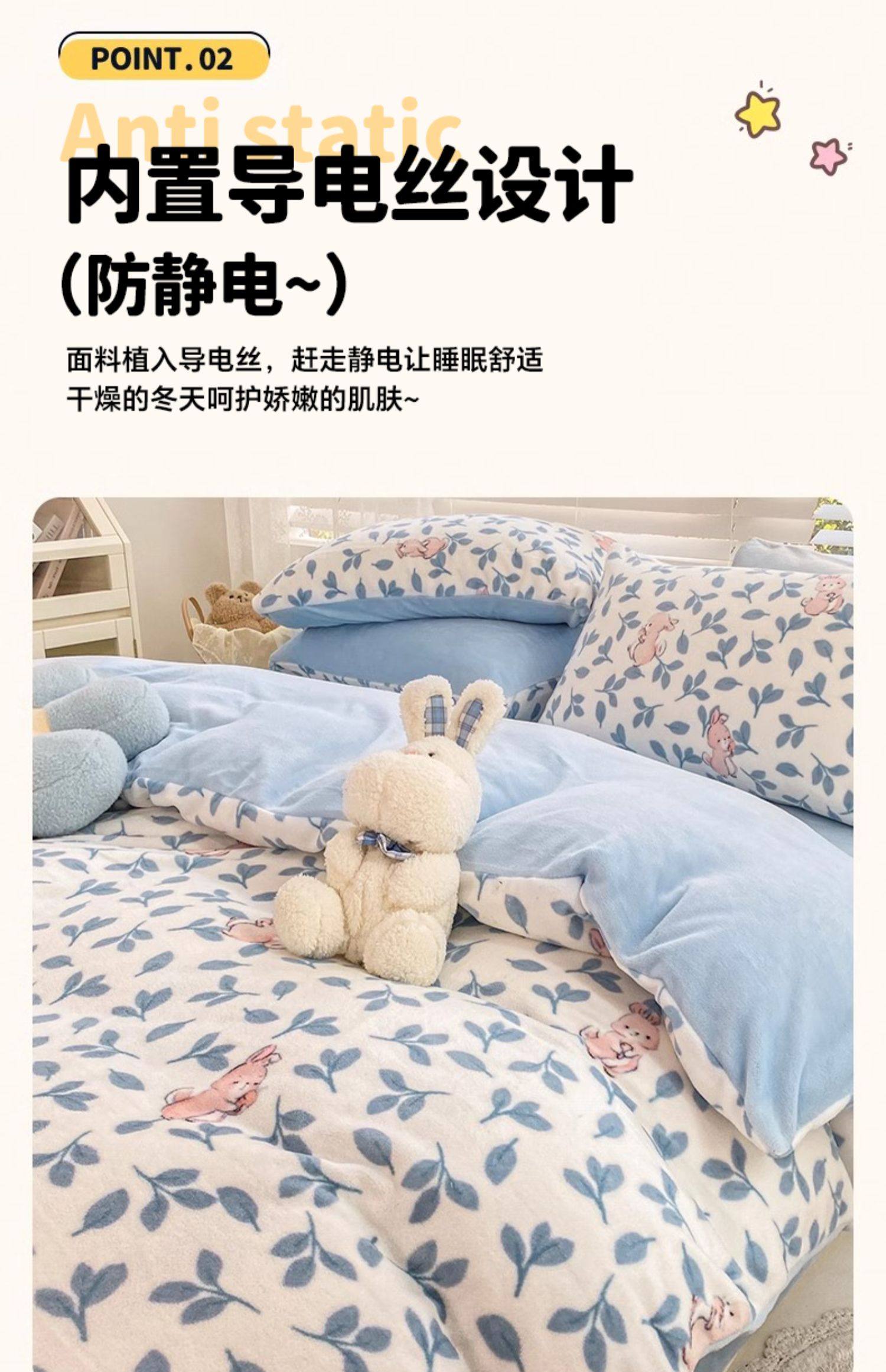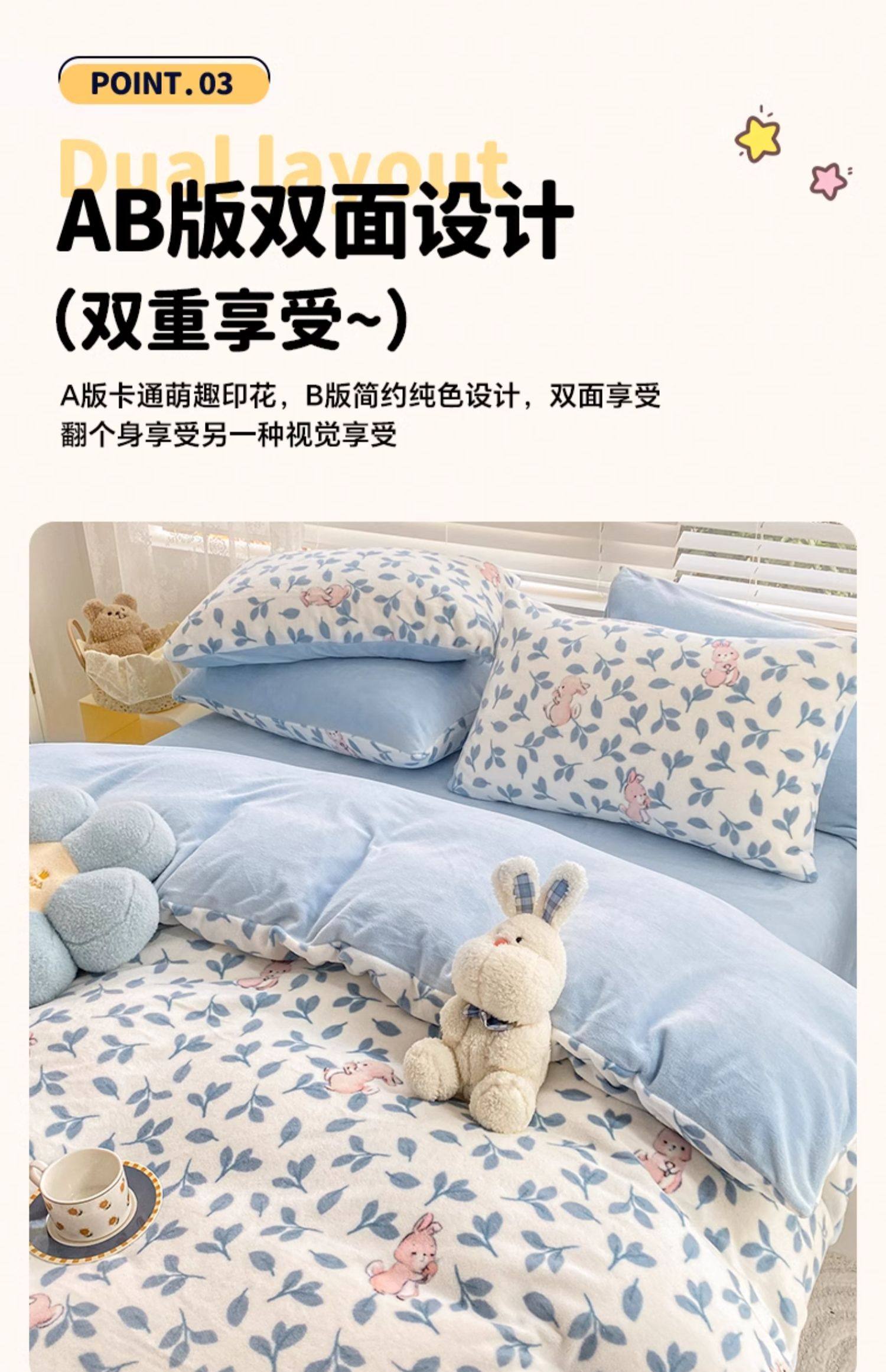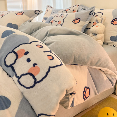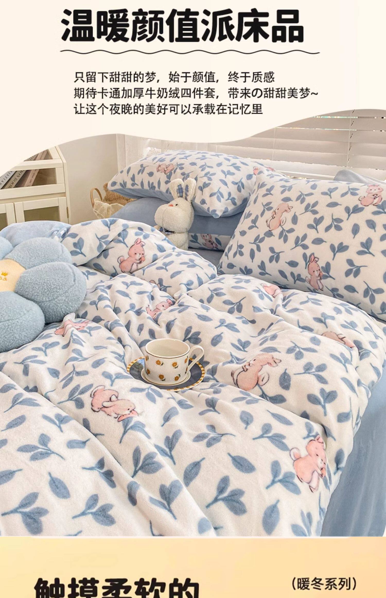 冬季加厚牛奶绒四件套珊瑚绒被套双面加绒毛床单床上三件套法兰绒