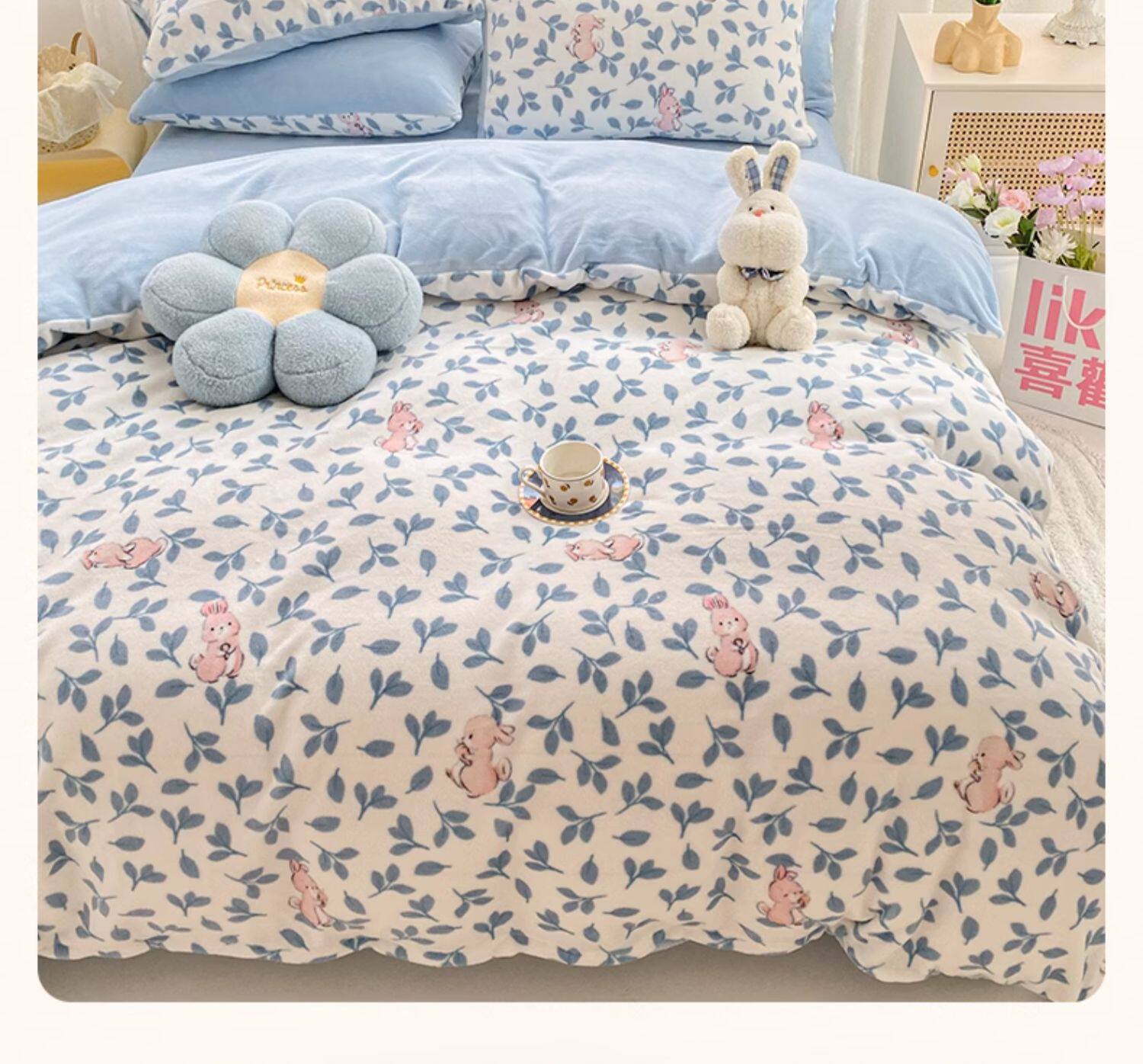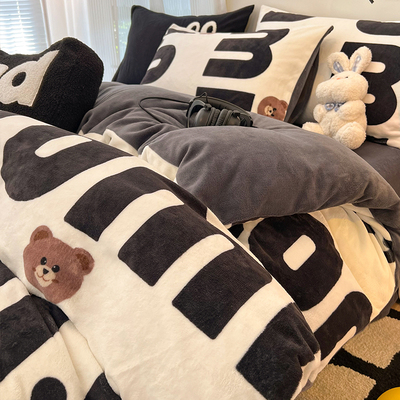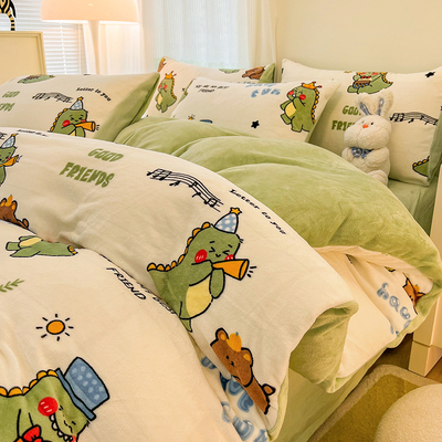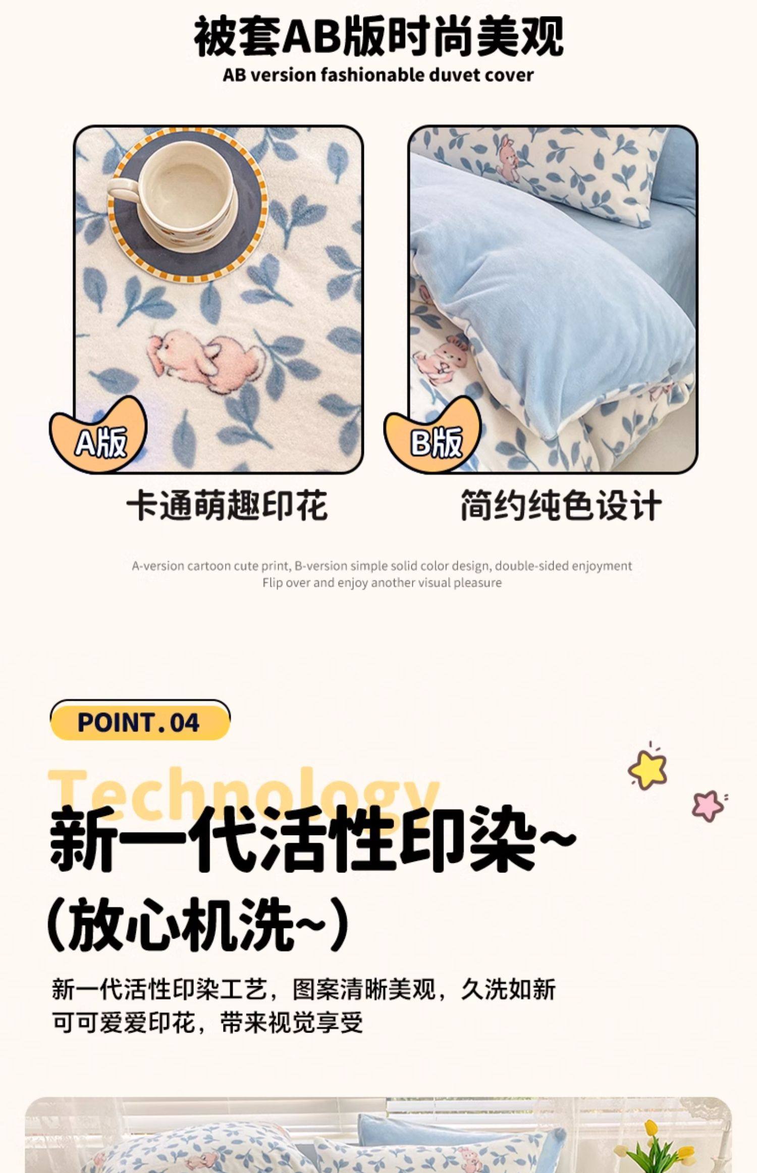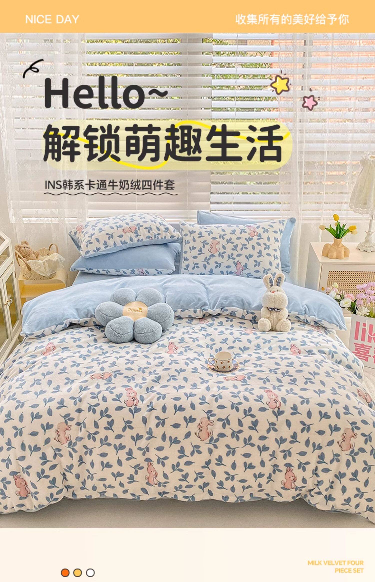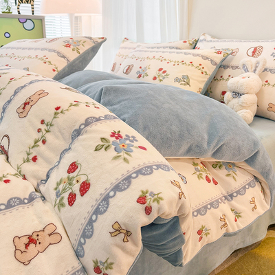 冬季加厚牛奶绒四件套珊瑚绒被套双面加绒毛床单床上三件套法兰绒
