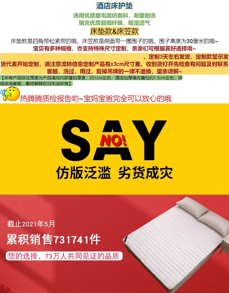 已质检五星级酒店床垫款-白【A类母婴级可机洗床褥垫】