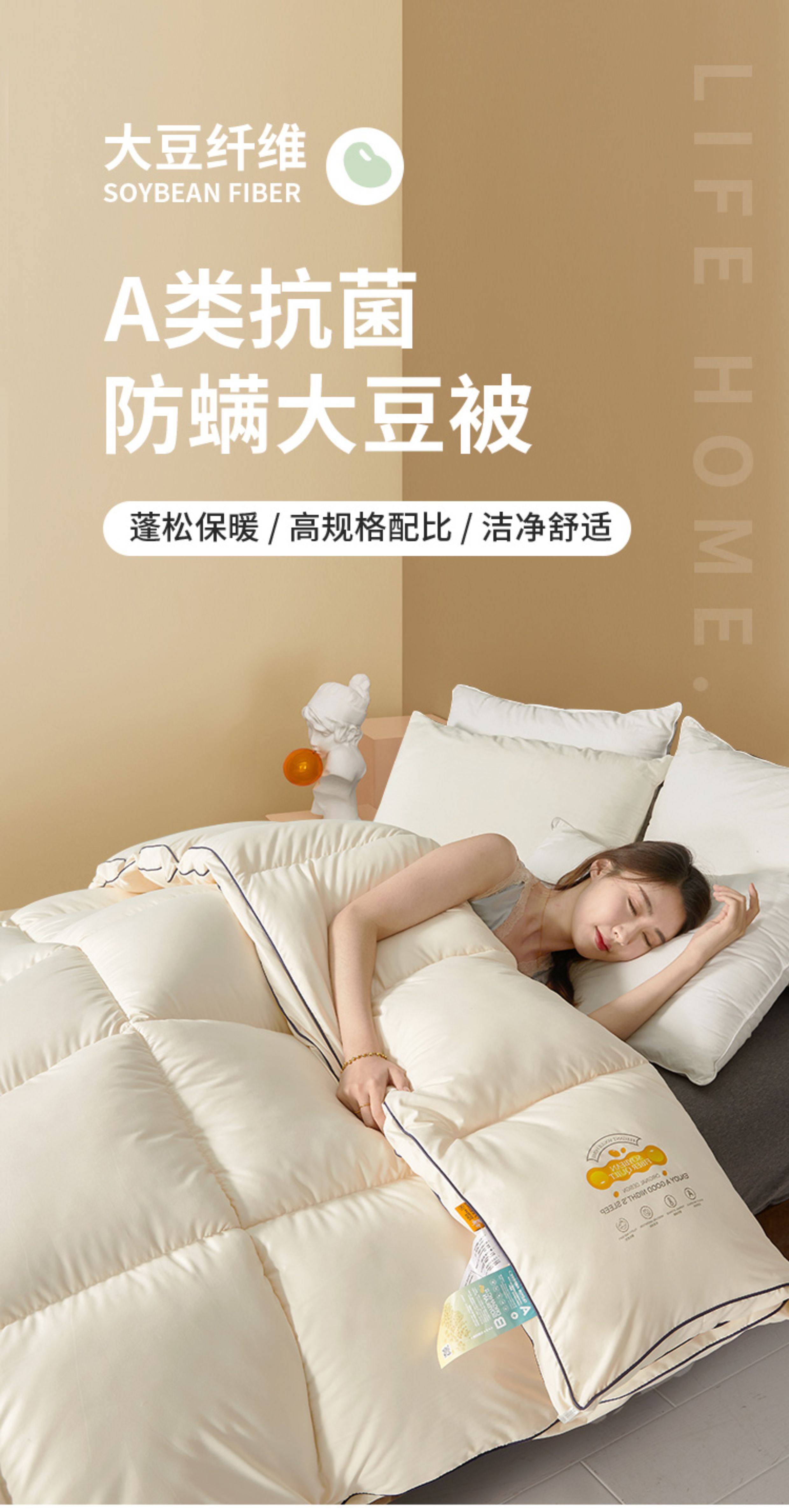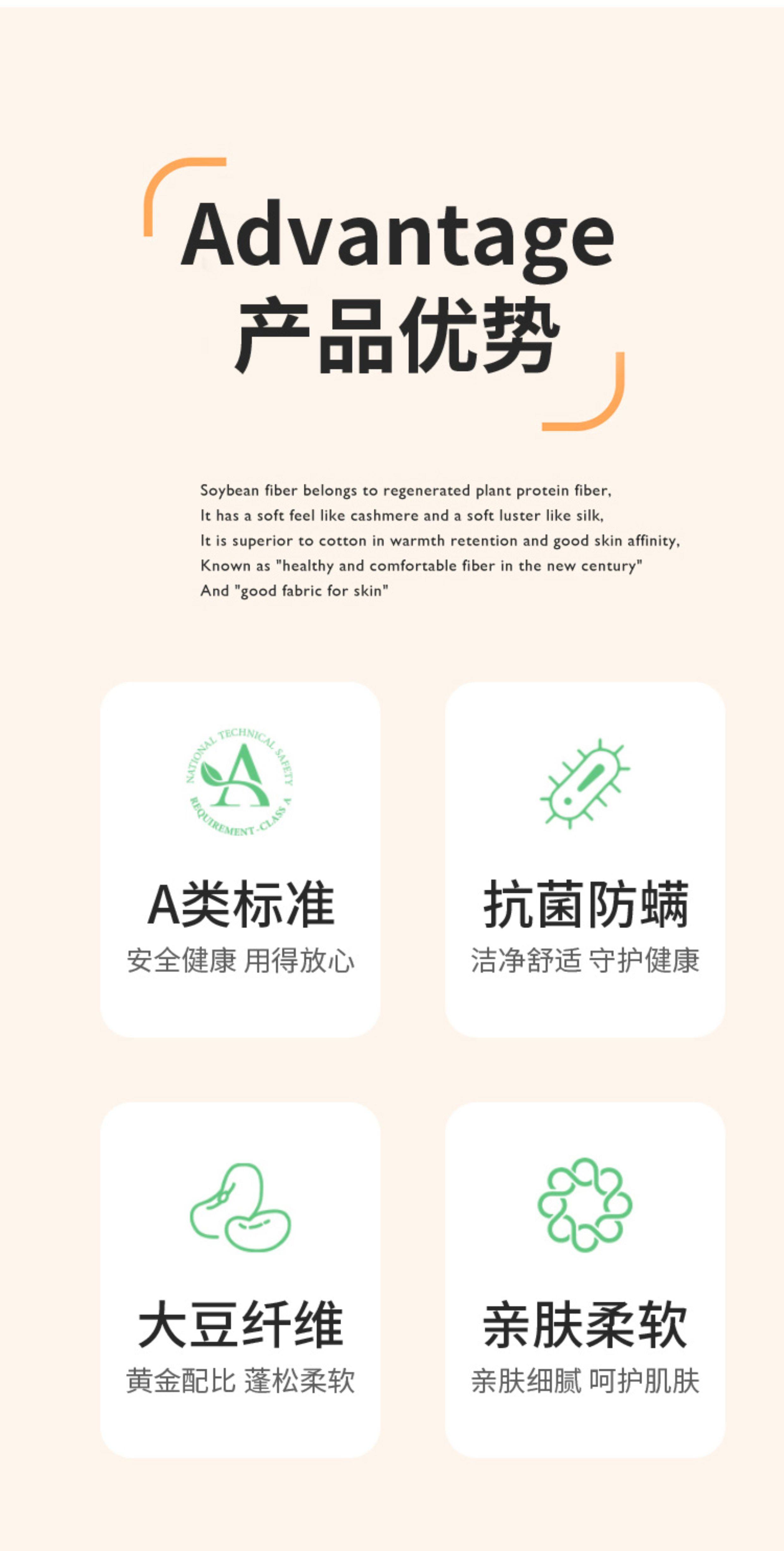 升级超柔-双边大豆被-米黄【A类母婴级抗菌防螨】