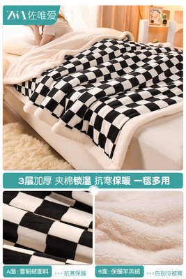 羊羔绒-棋盘格-黑【✅A类母婴级 3层加厚 保暖抗寒】