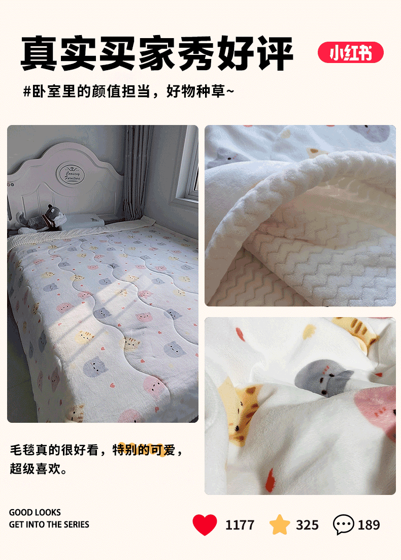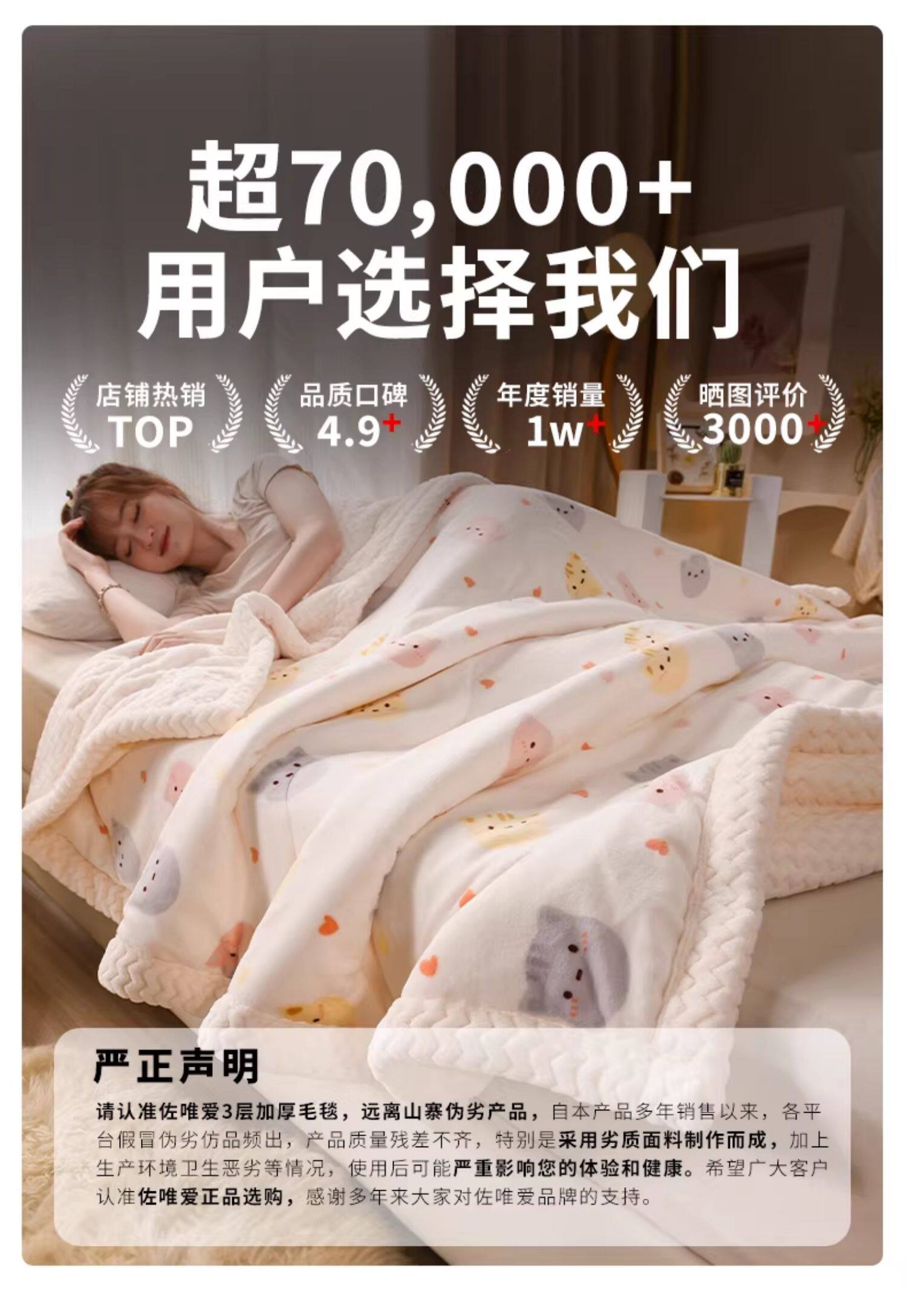 羊羔绒-小猫咪【✅A类母婴级 3层加厚 保暖抗寒】