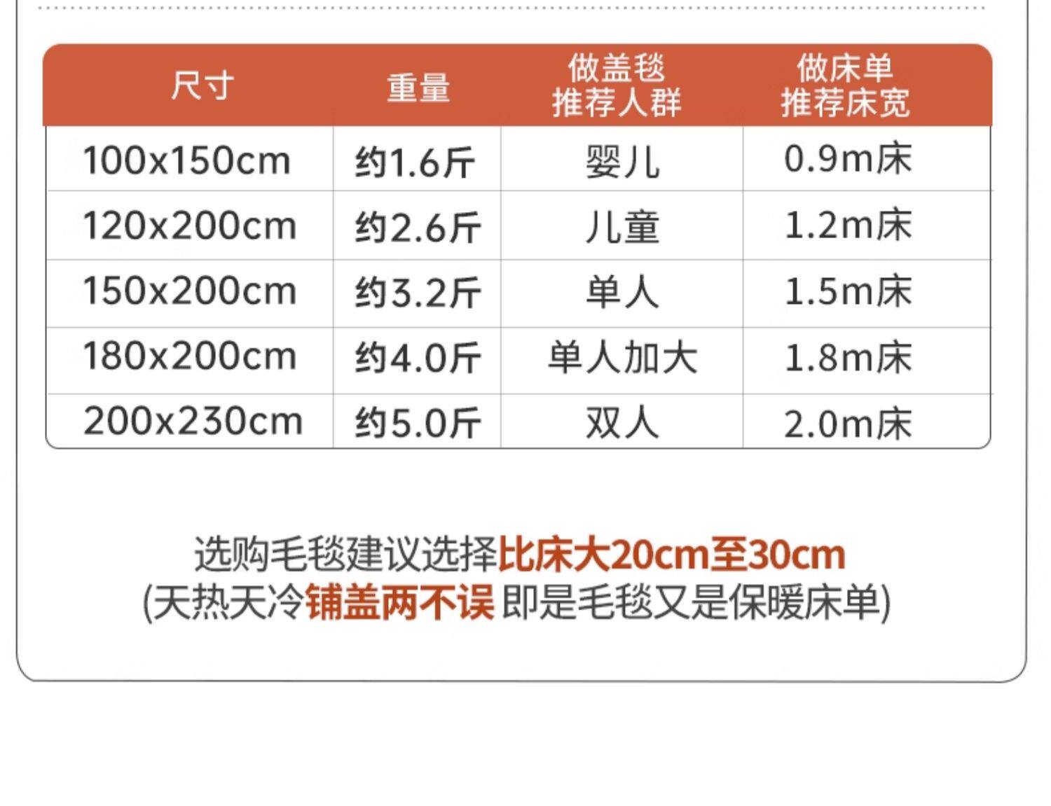 (加大单人毯)180x200cm【亲肤柔软 贴身舒适 防静电 不掉毛】