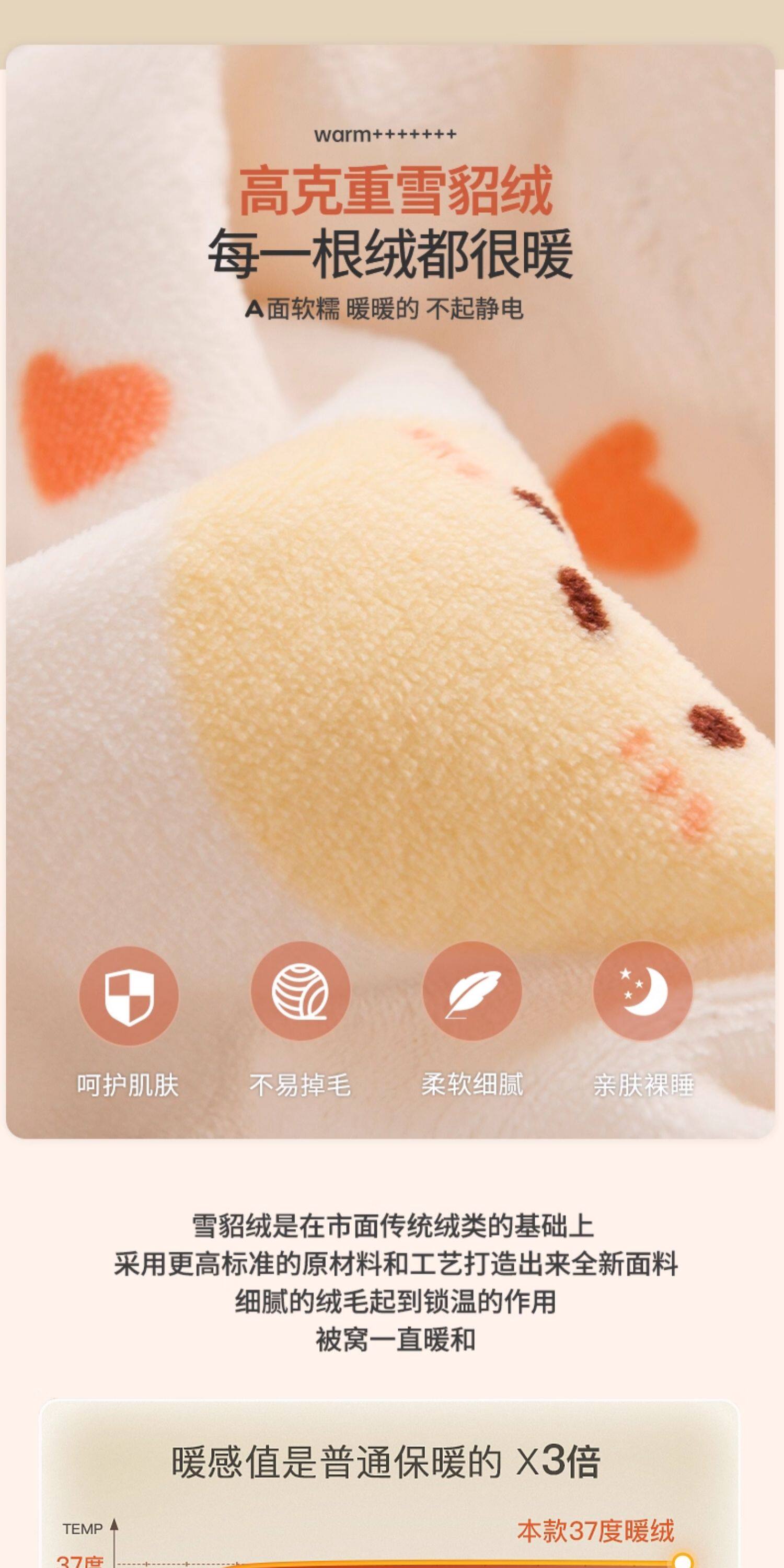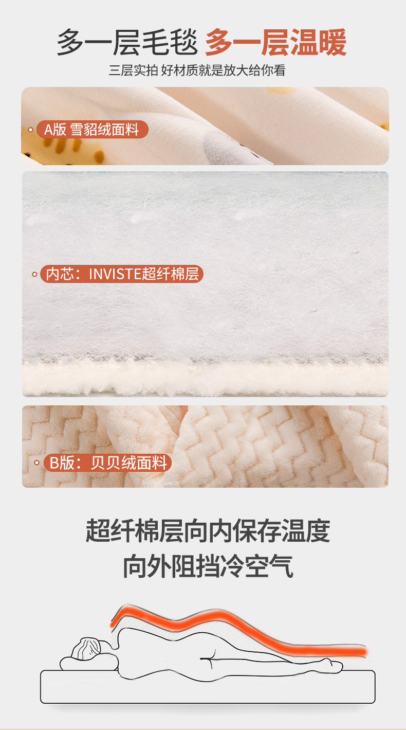 贝贝绒-熊熊黄-白【A类✅母婴级 3层加厚 保暖抗寒】
