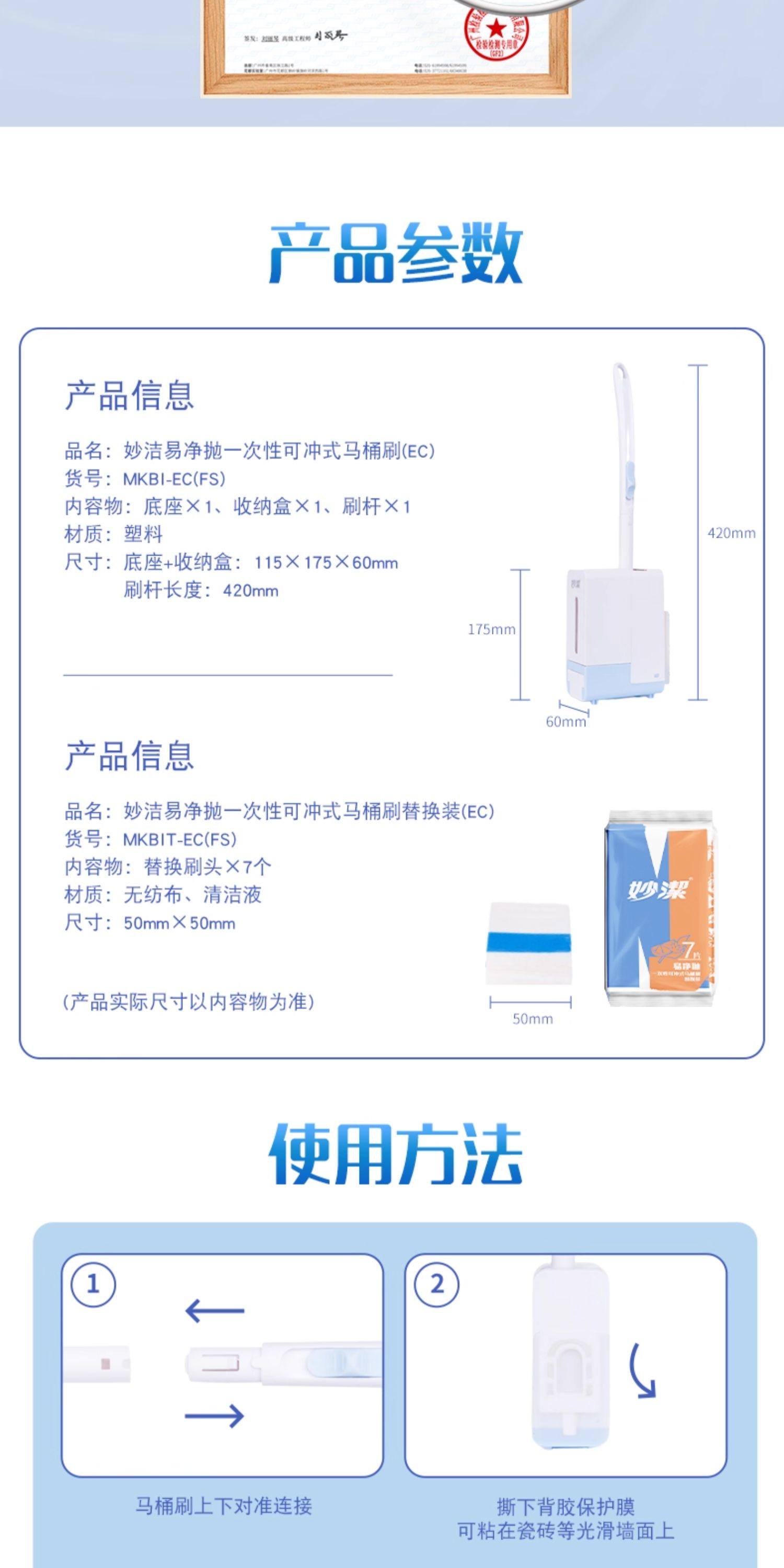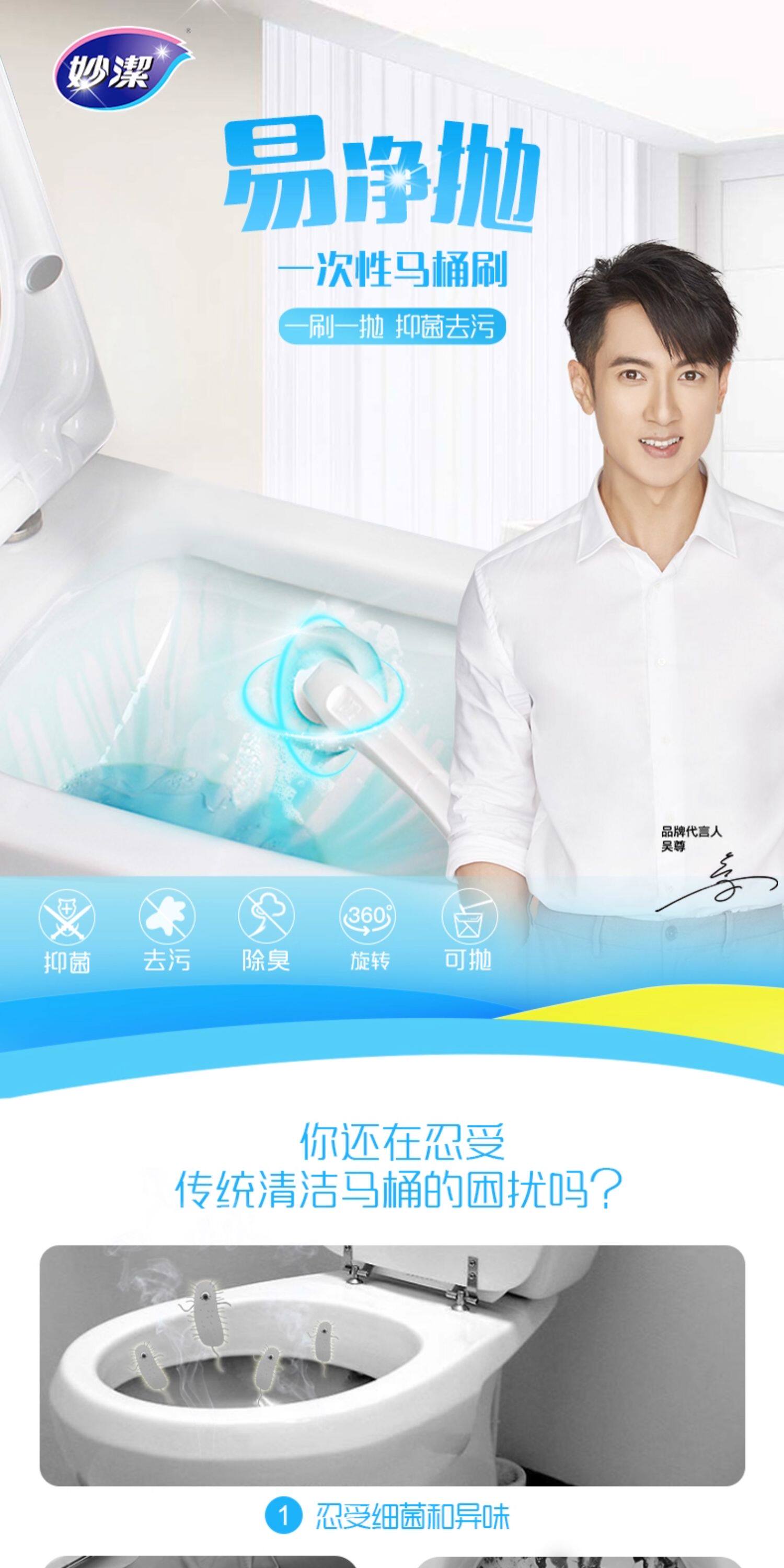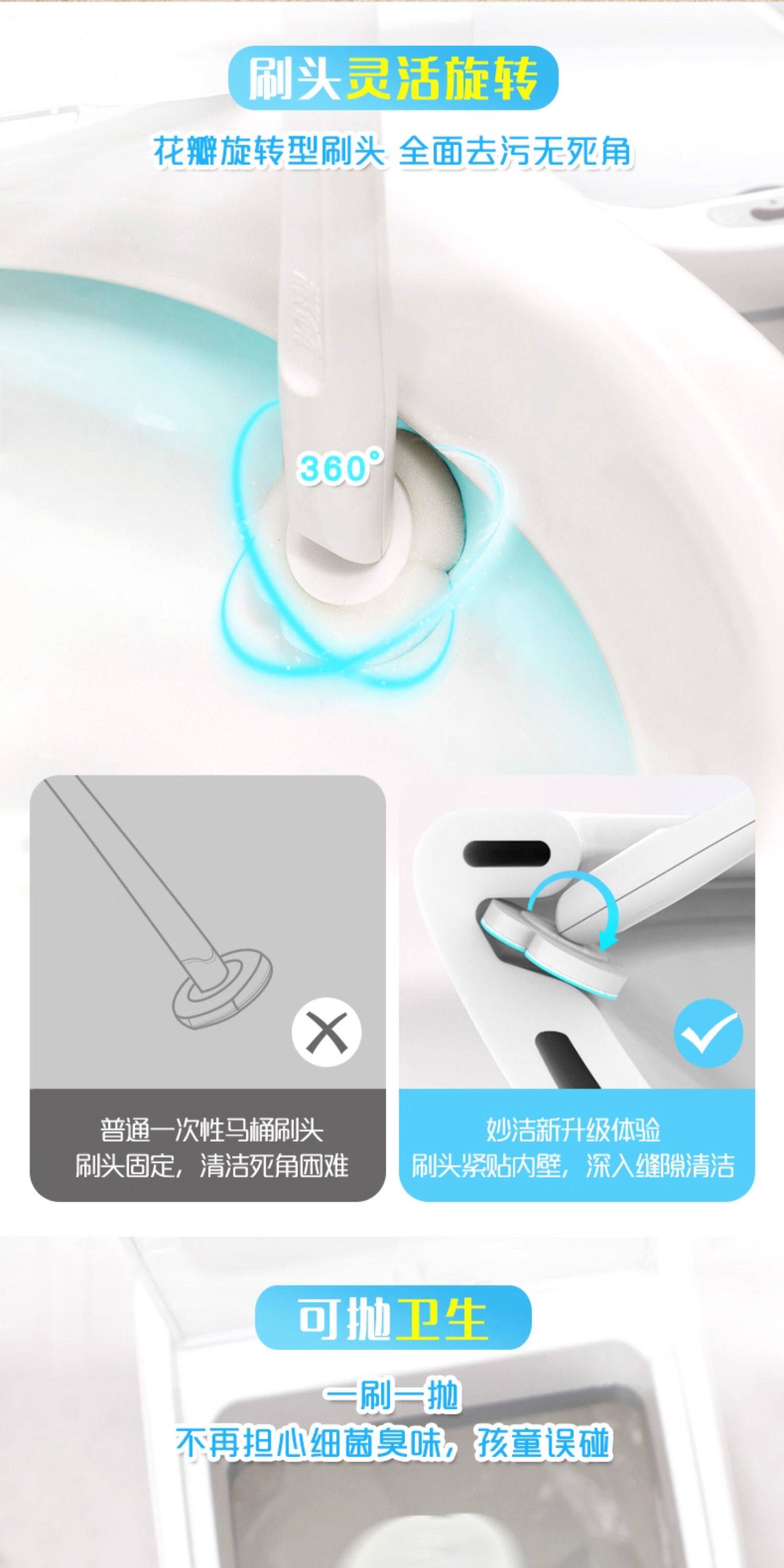 妙洁一次性马桶刷家用无死角替换头卫生间洗厕所刷子清洁神器