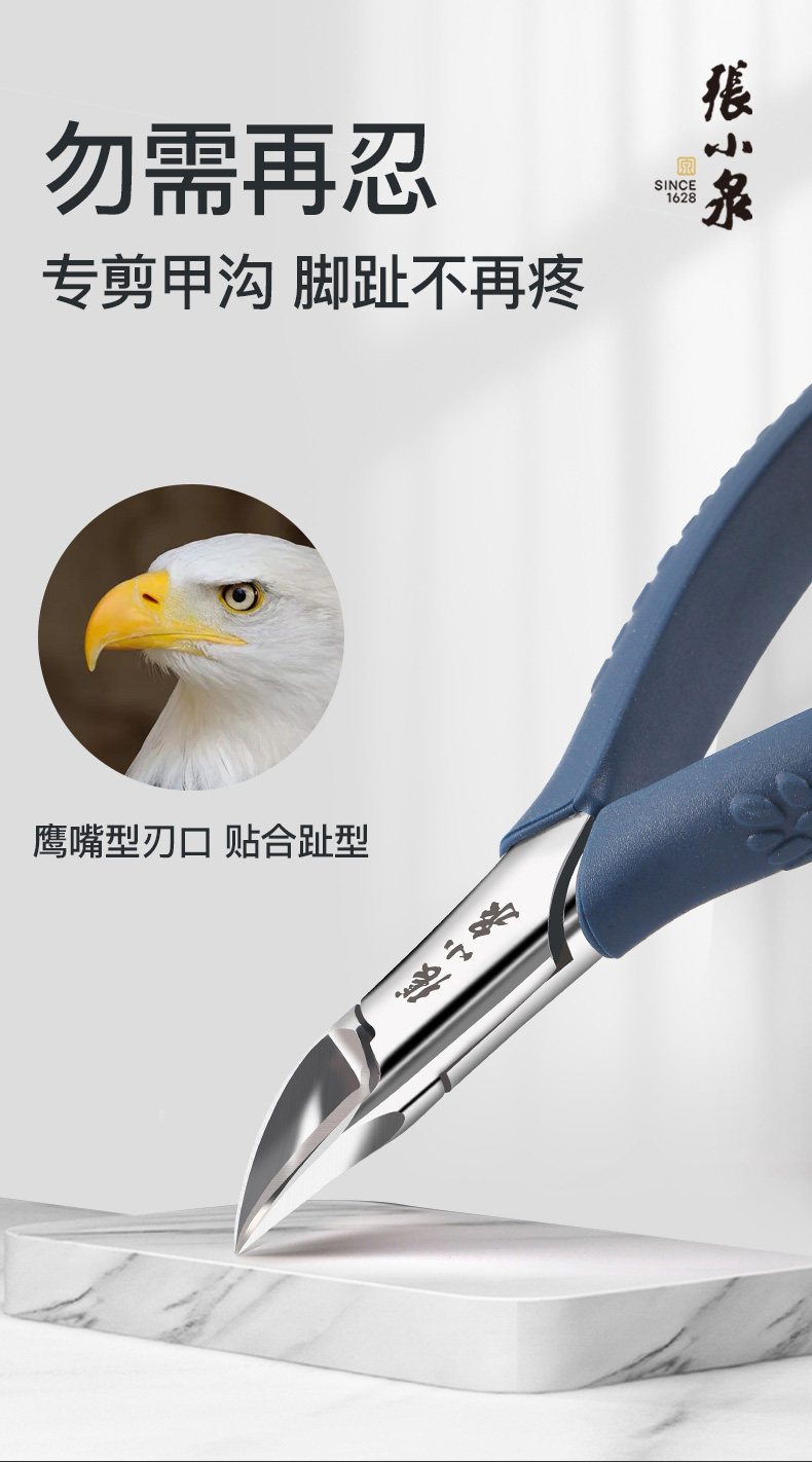 张小泉指甲剪甲沟专用指甲刀套装嵌甲钳斜口修脚工具炎鹰嘴钳指甲