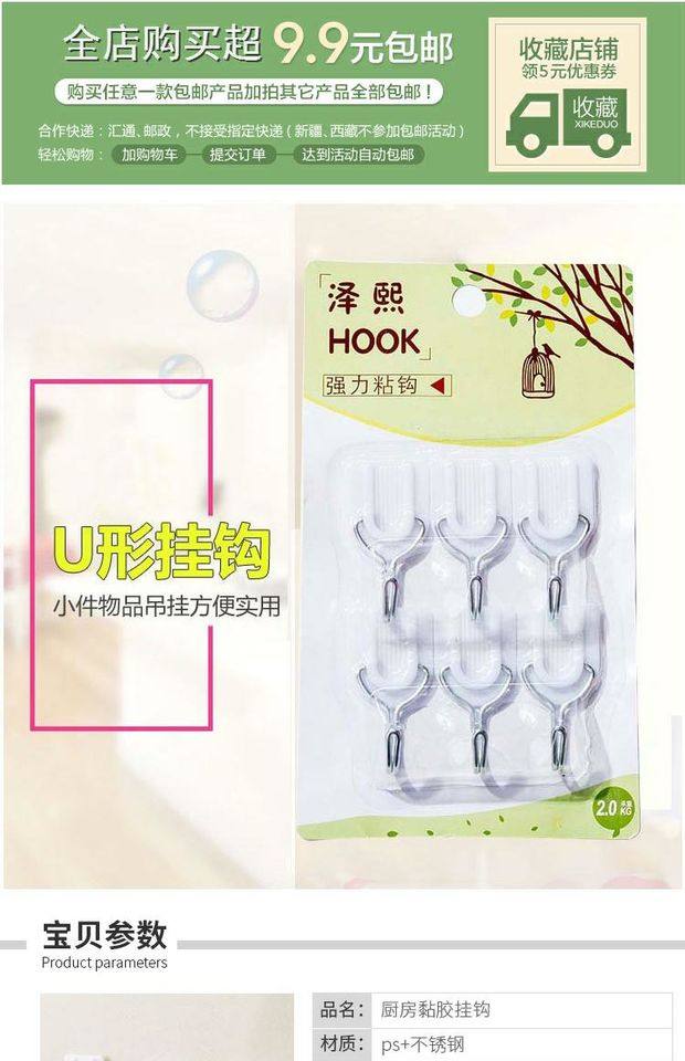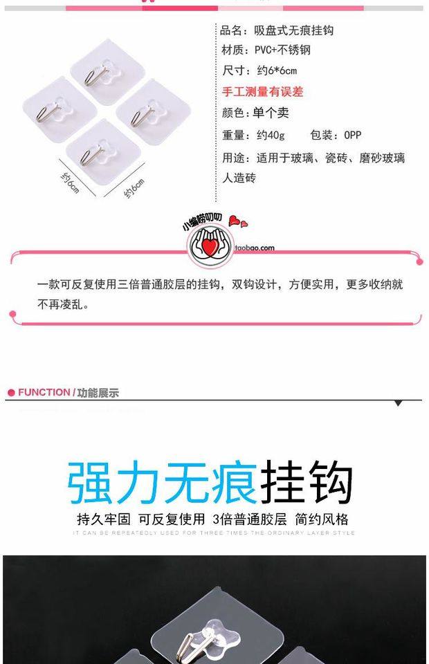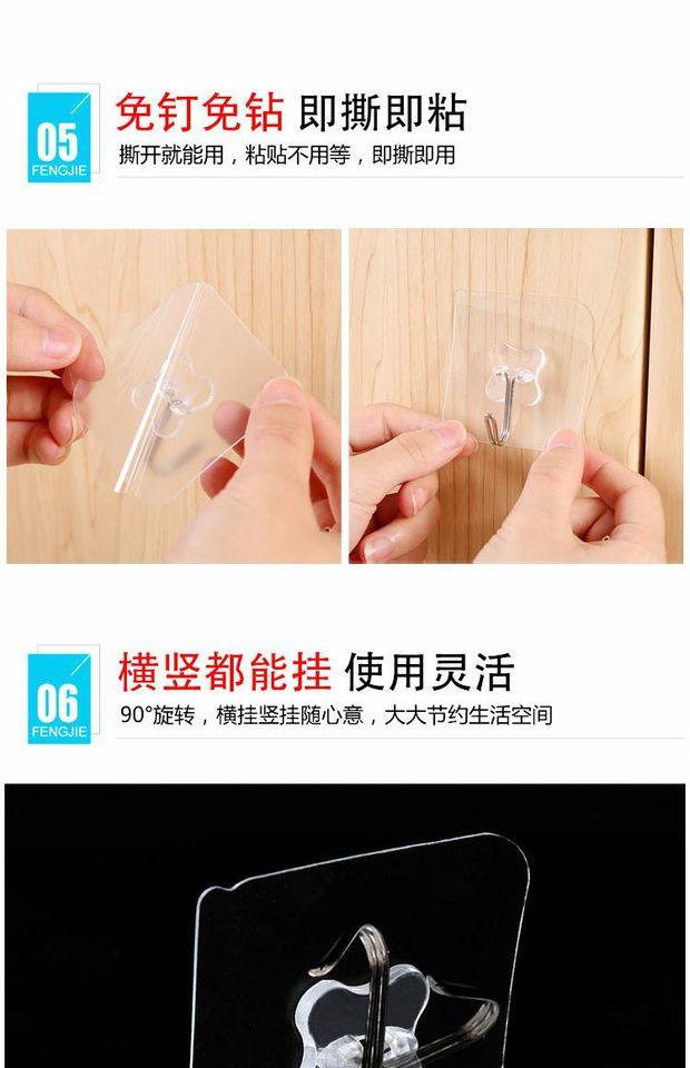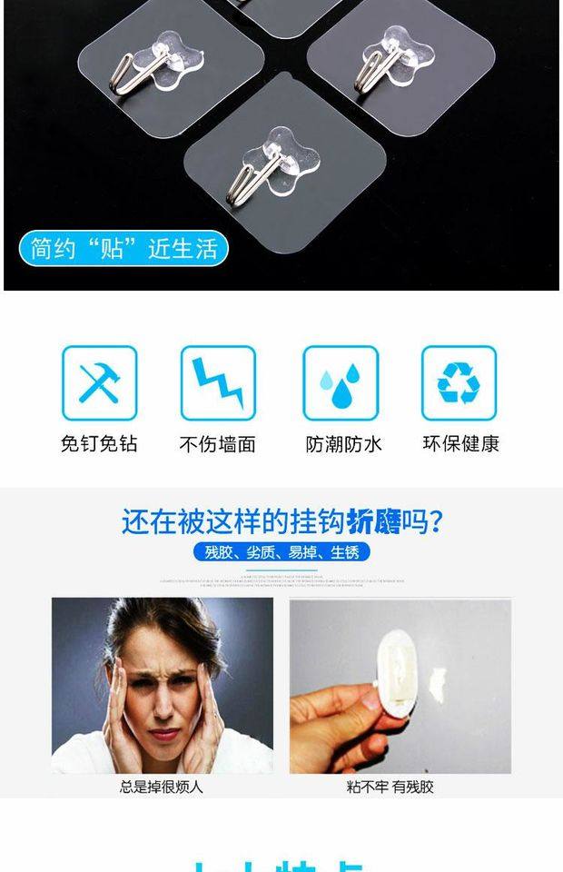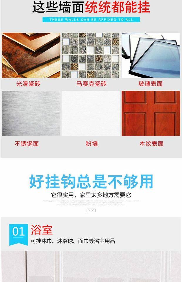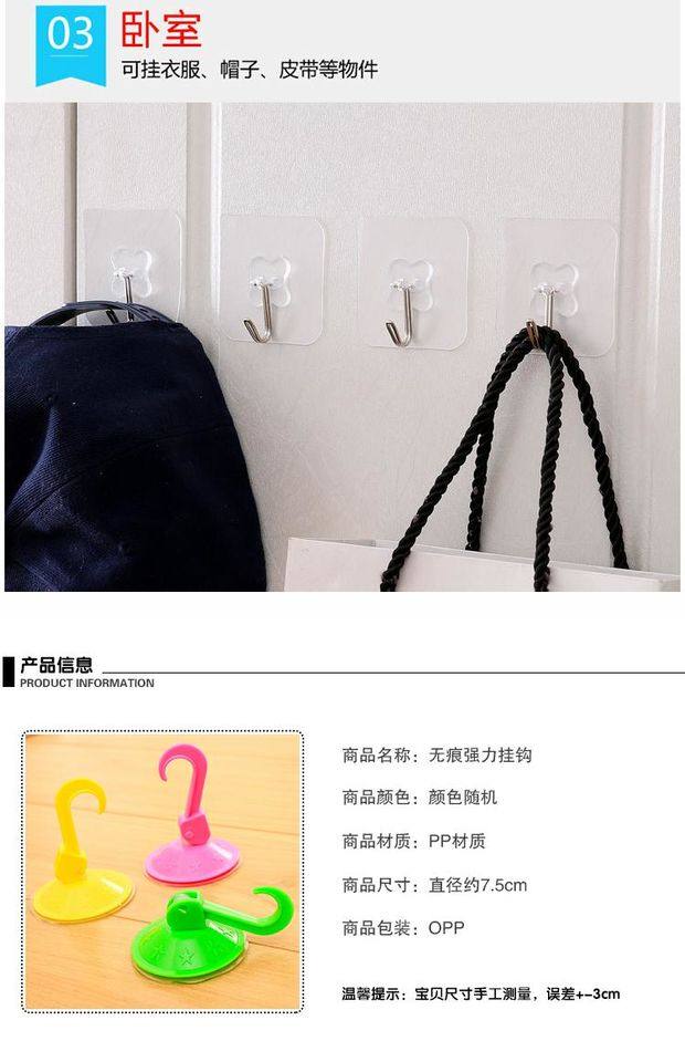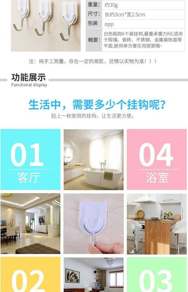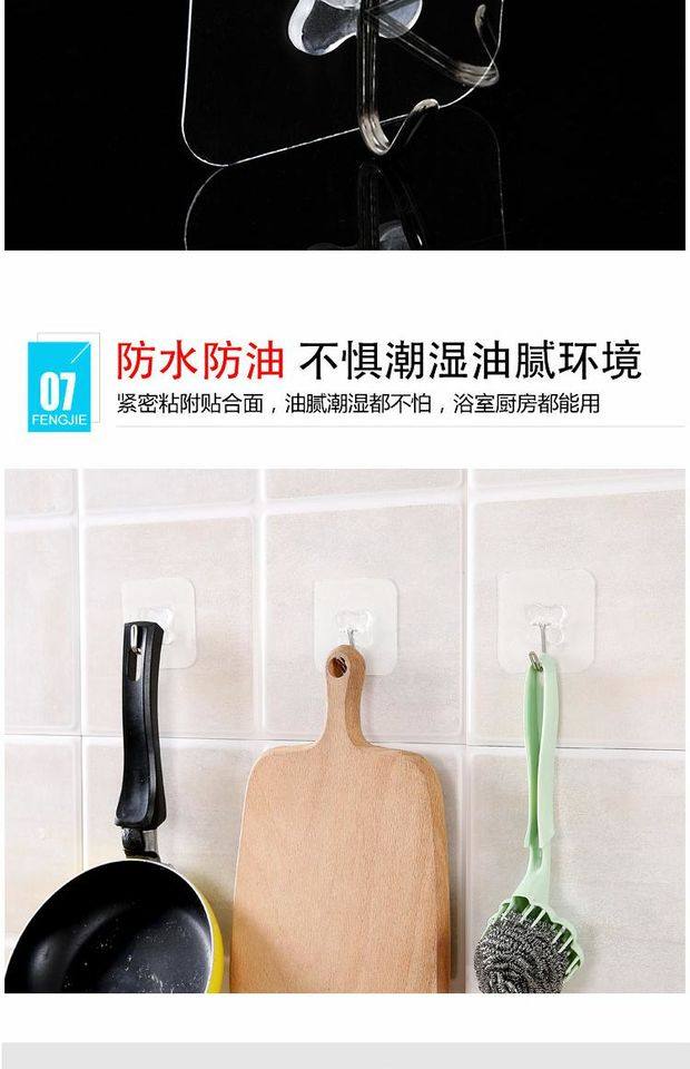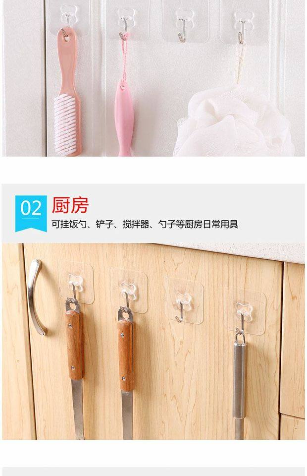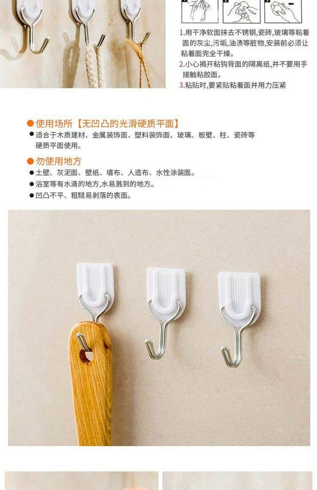 粘钩强力挂钩贴厨房家用胶超承重物自粘小号墙免打孔门后无痕神器