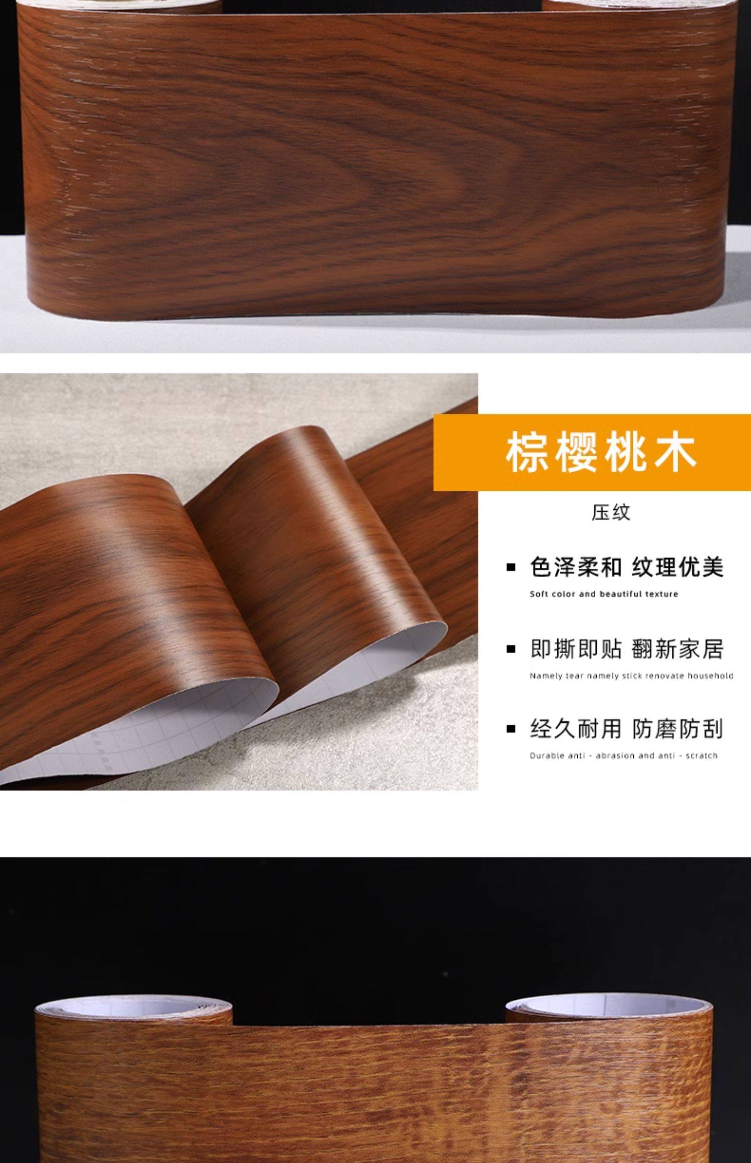加厚木纹贴纸遮丑补洞地板修复木门贴装饰条翻新家具窟窿贴皮自粘