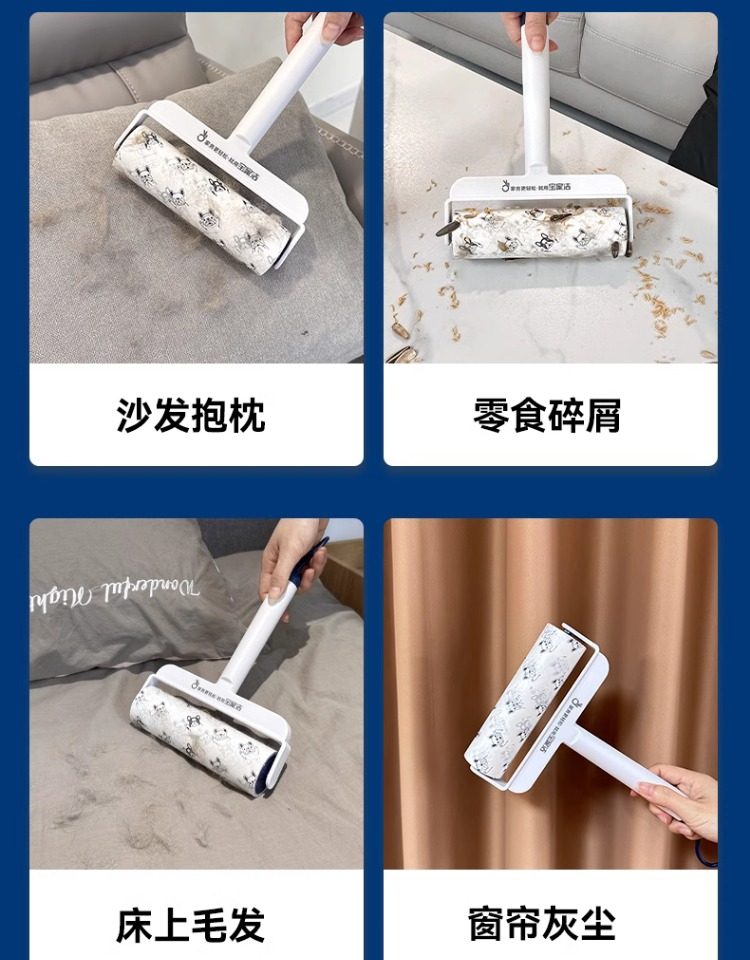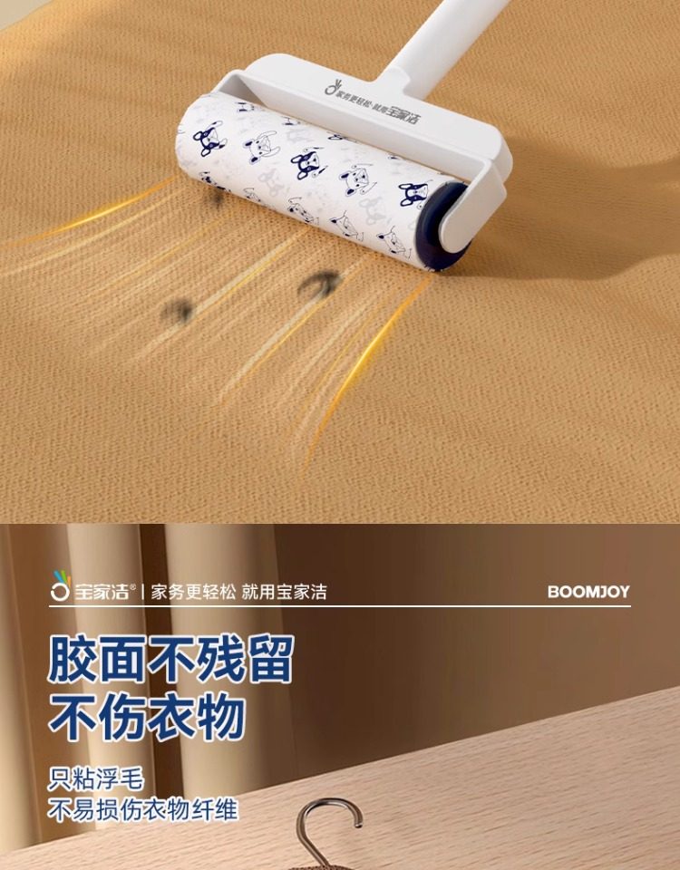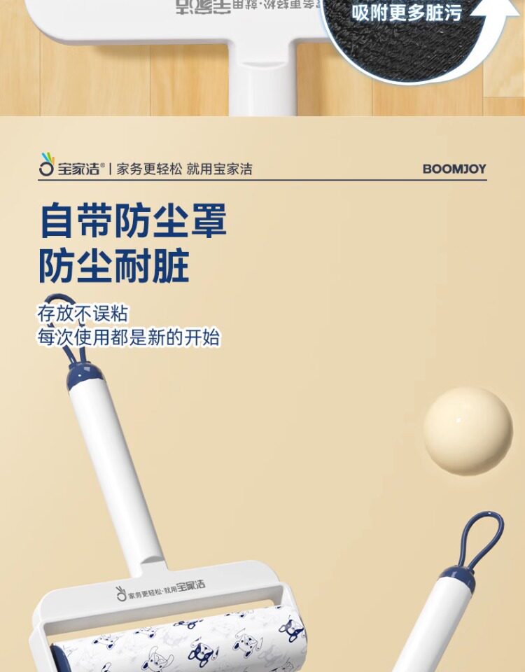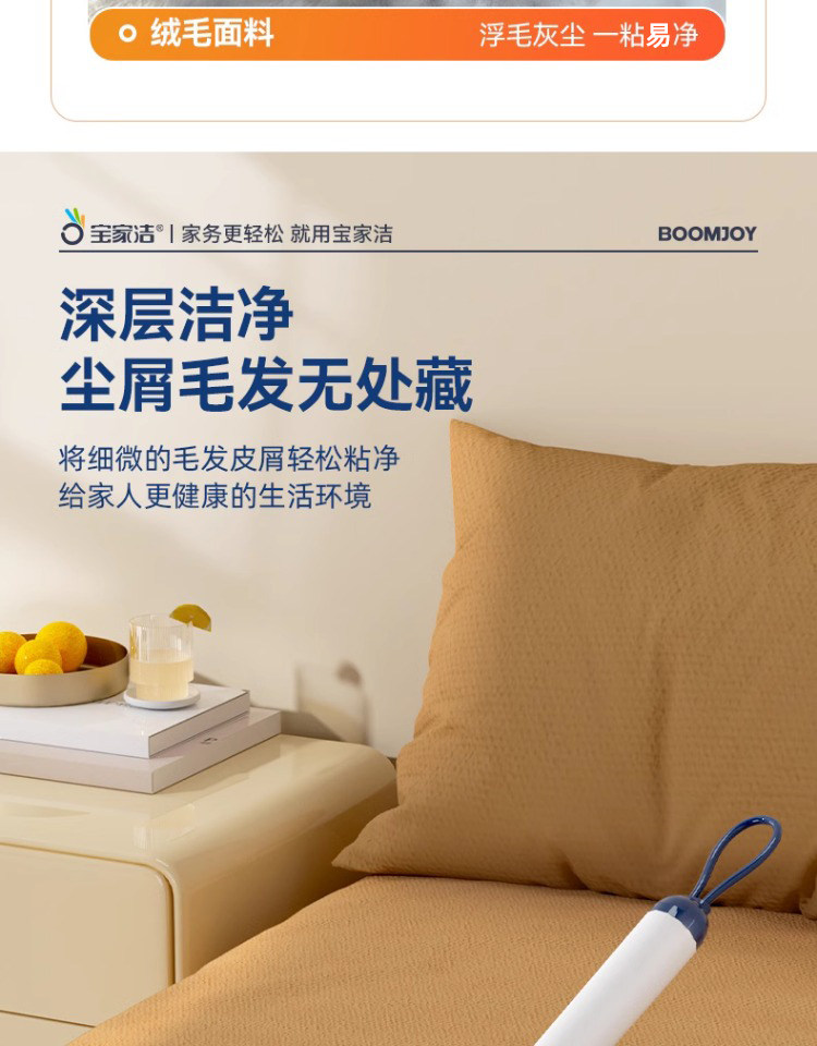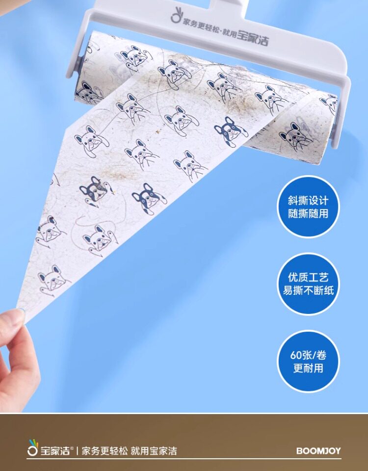 宝家洁粘毛器滚筒可撕粘尘卷纸长柄家用去宠物毛滚刷替换沾毛神器