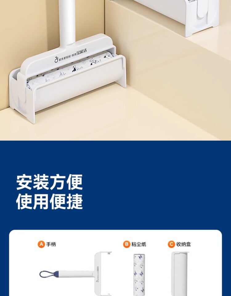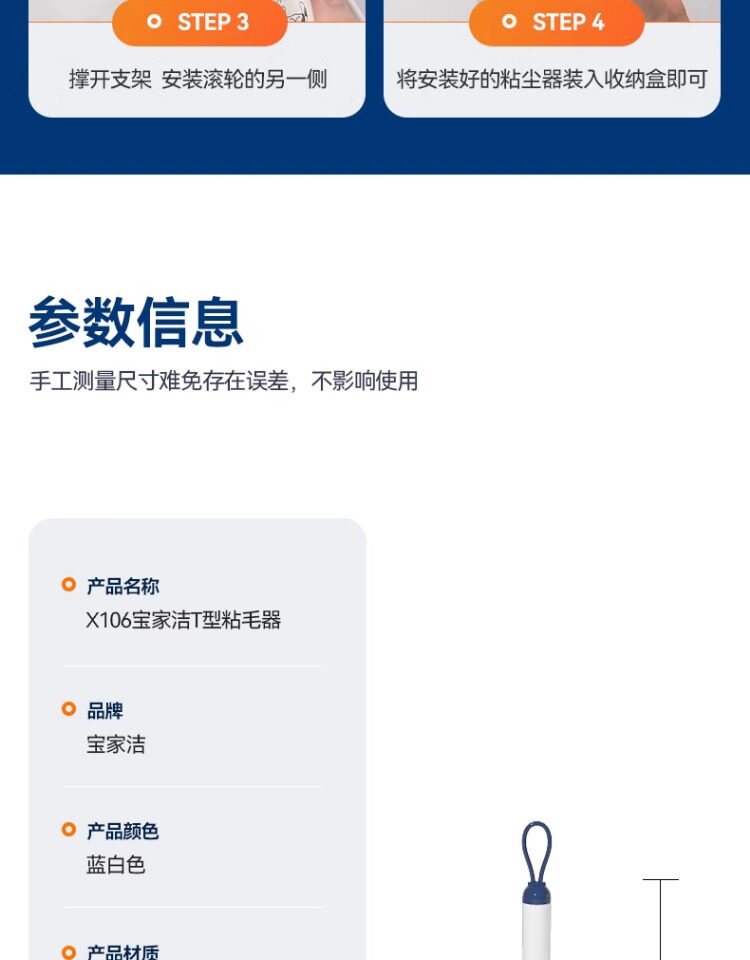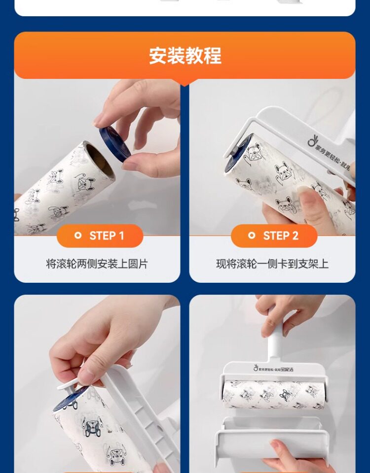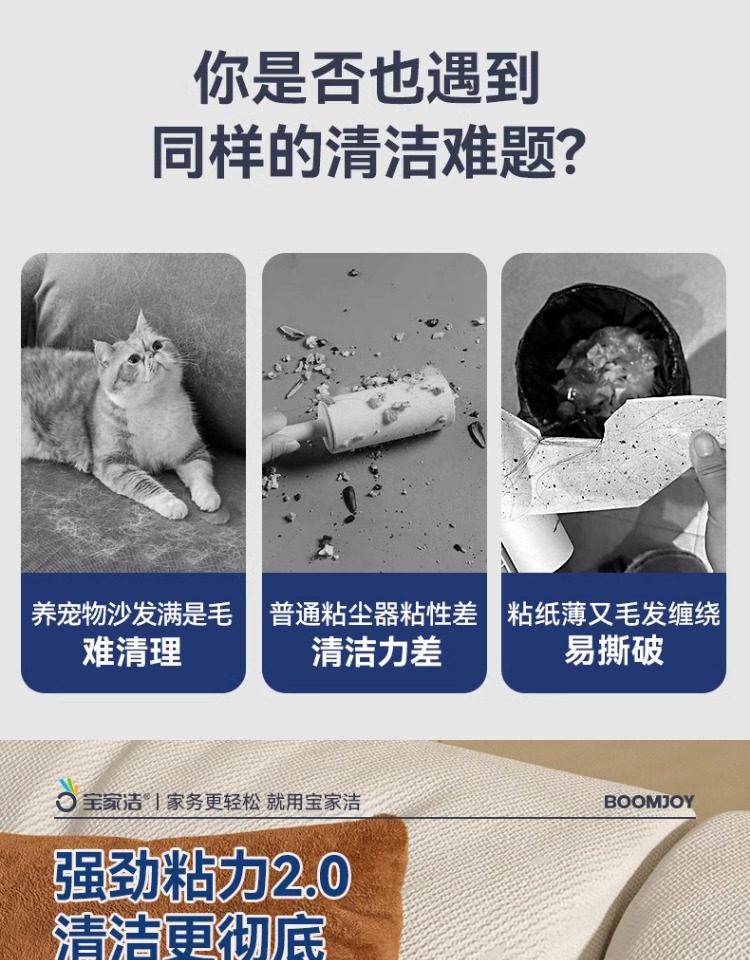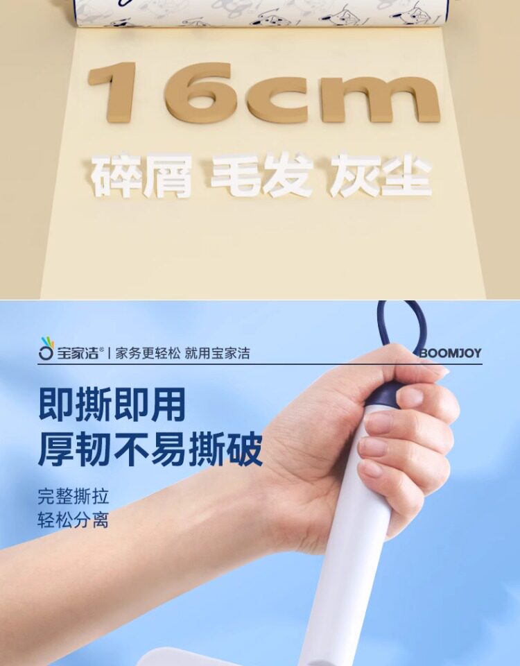 宝家洁粘毛器滚筒可撕粘尘卷纸长柄家用去宠物毛滚刷替换沾毛神器
