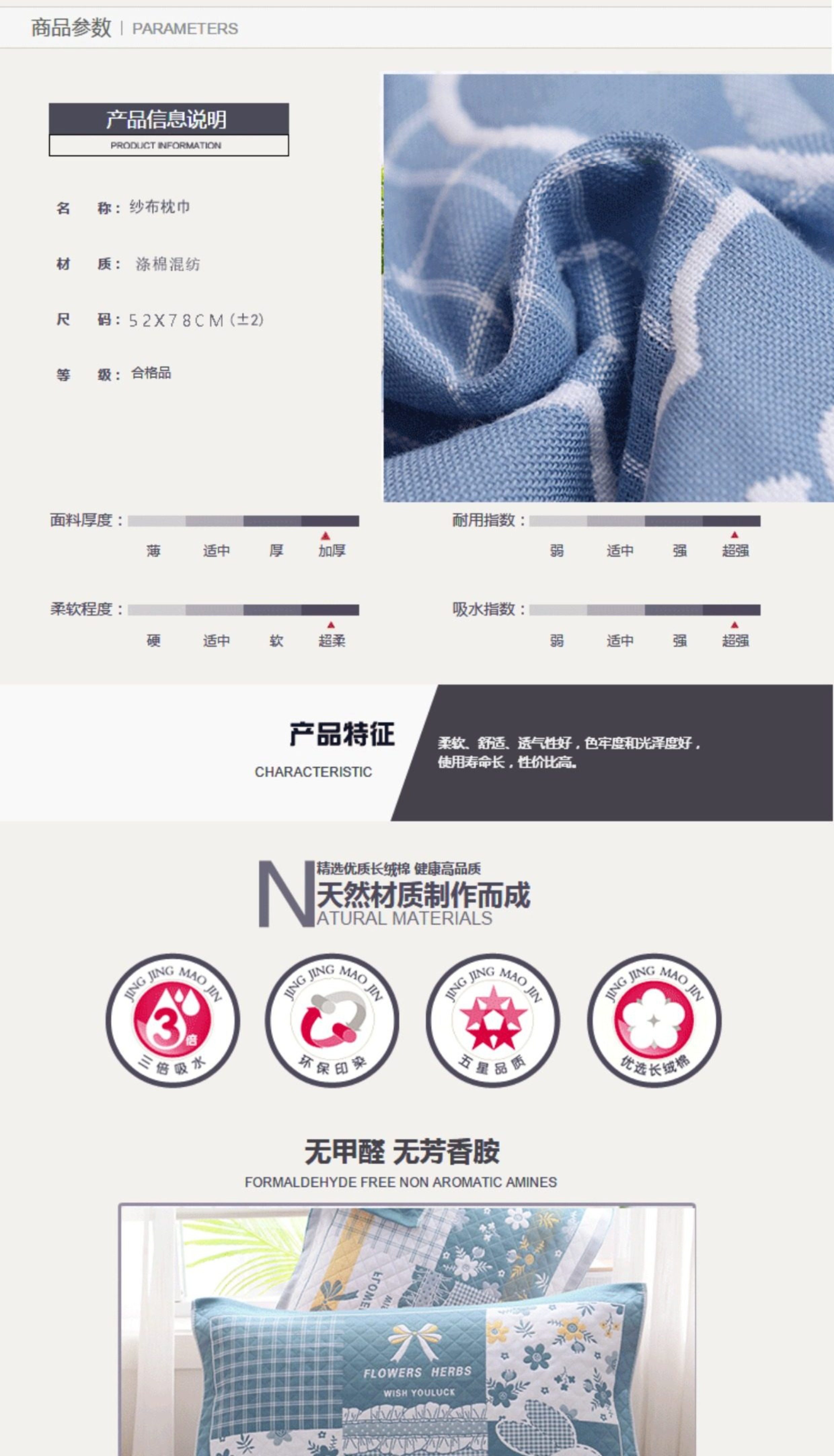长绒棉格子蓝一对