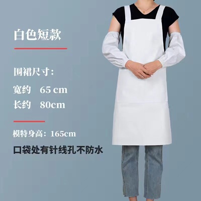 食品厂防水防油污白色PU背心式围裙男女长款厨房家用无袖挂脖围腰