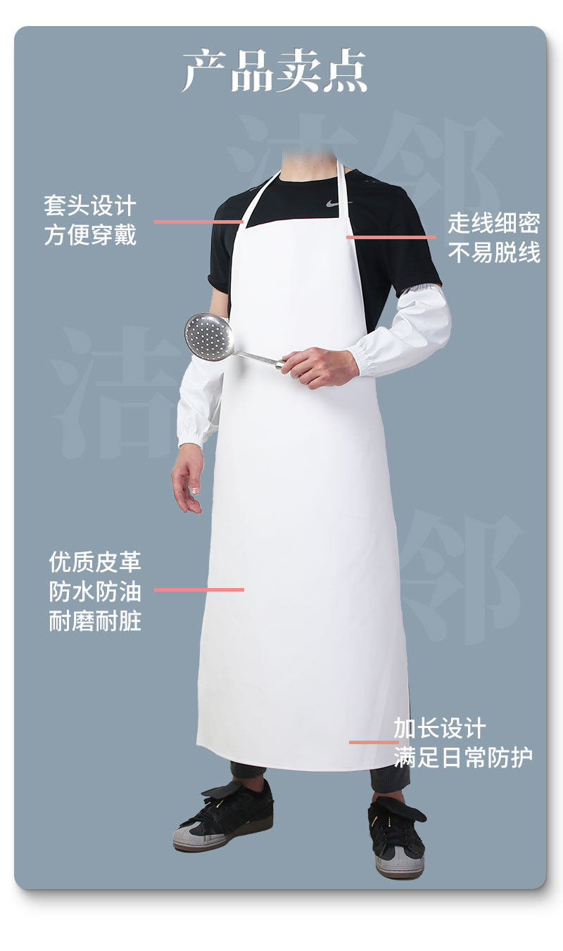 白色挂脖围裙95长+袖套