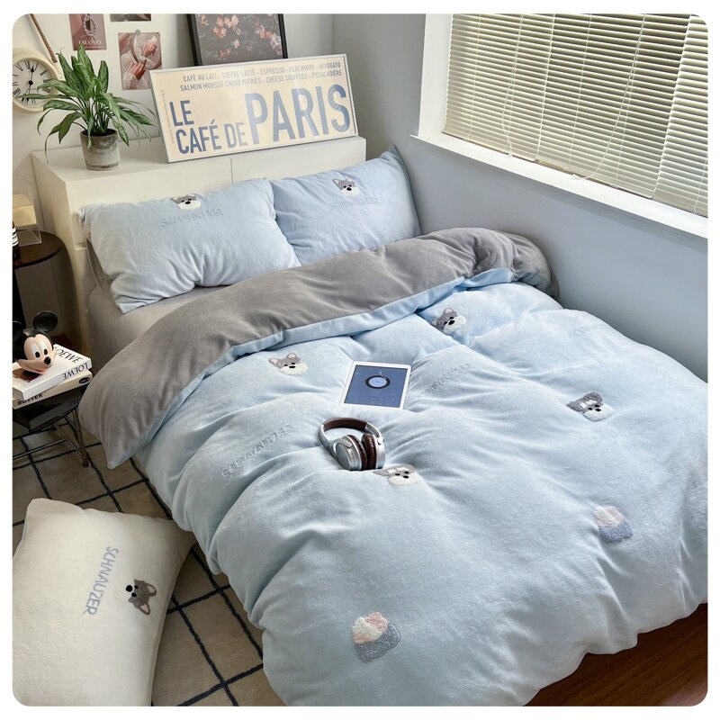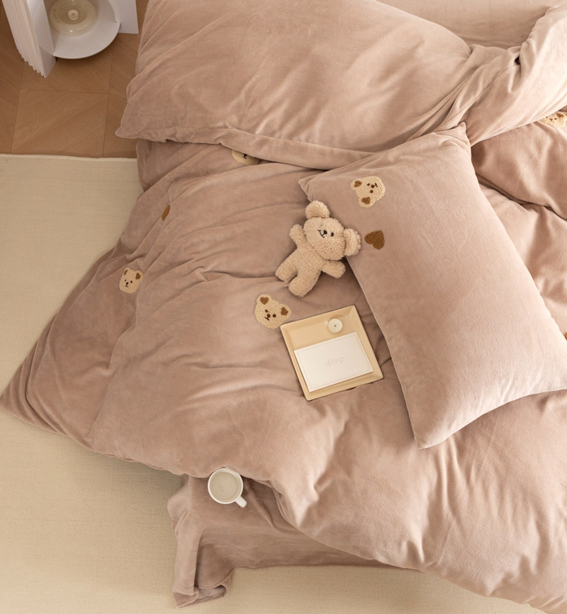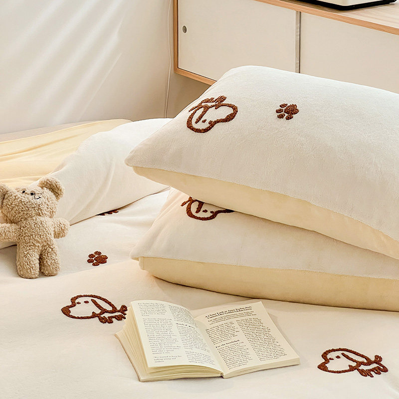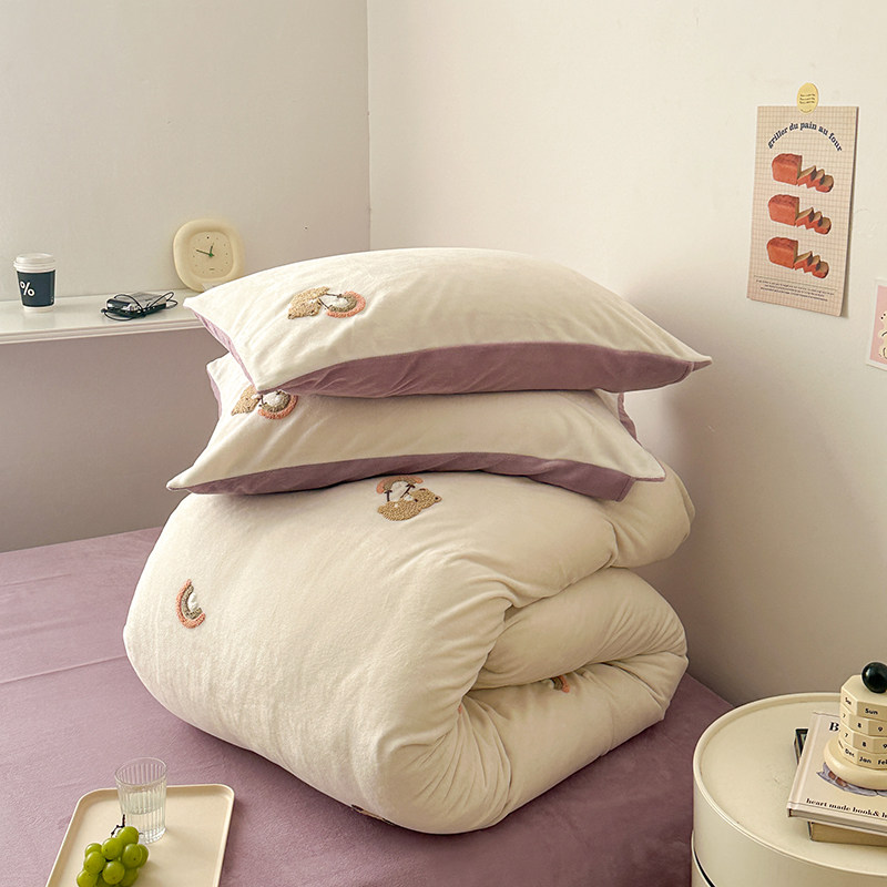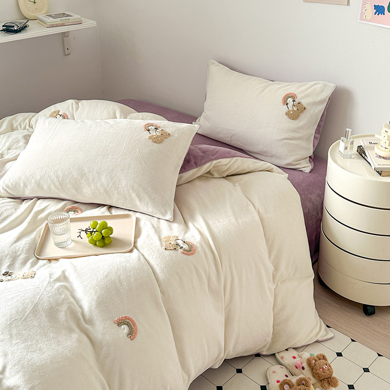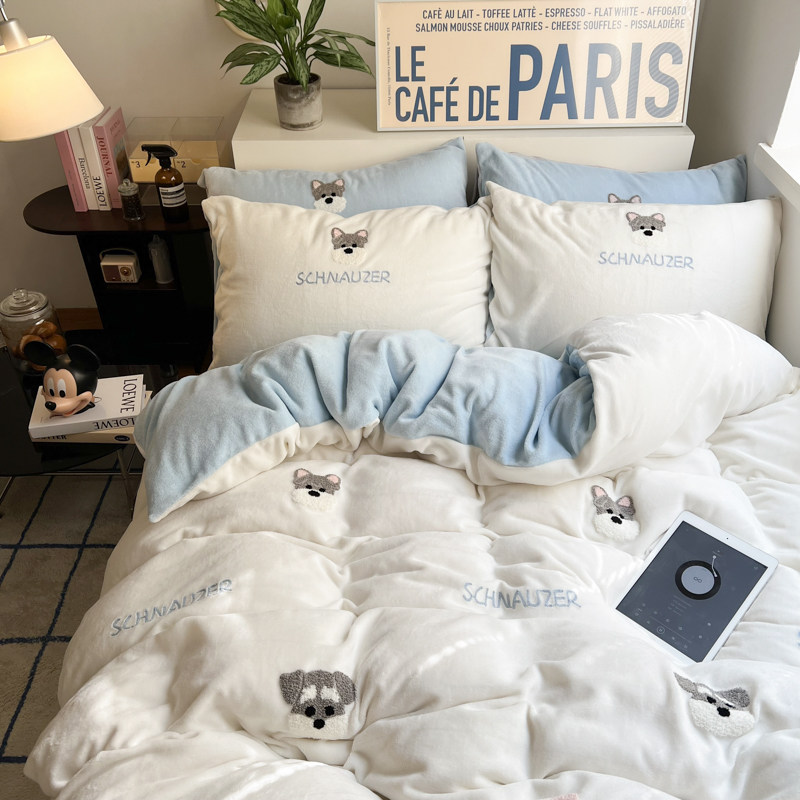 A类加厚保暖毛巾绣牛奶绒四件套珊瑚被套三件冬季1.8m床单笠用品